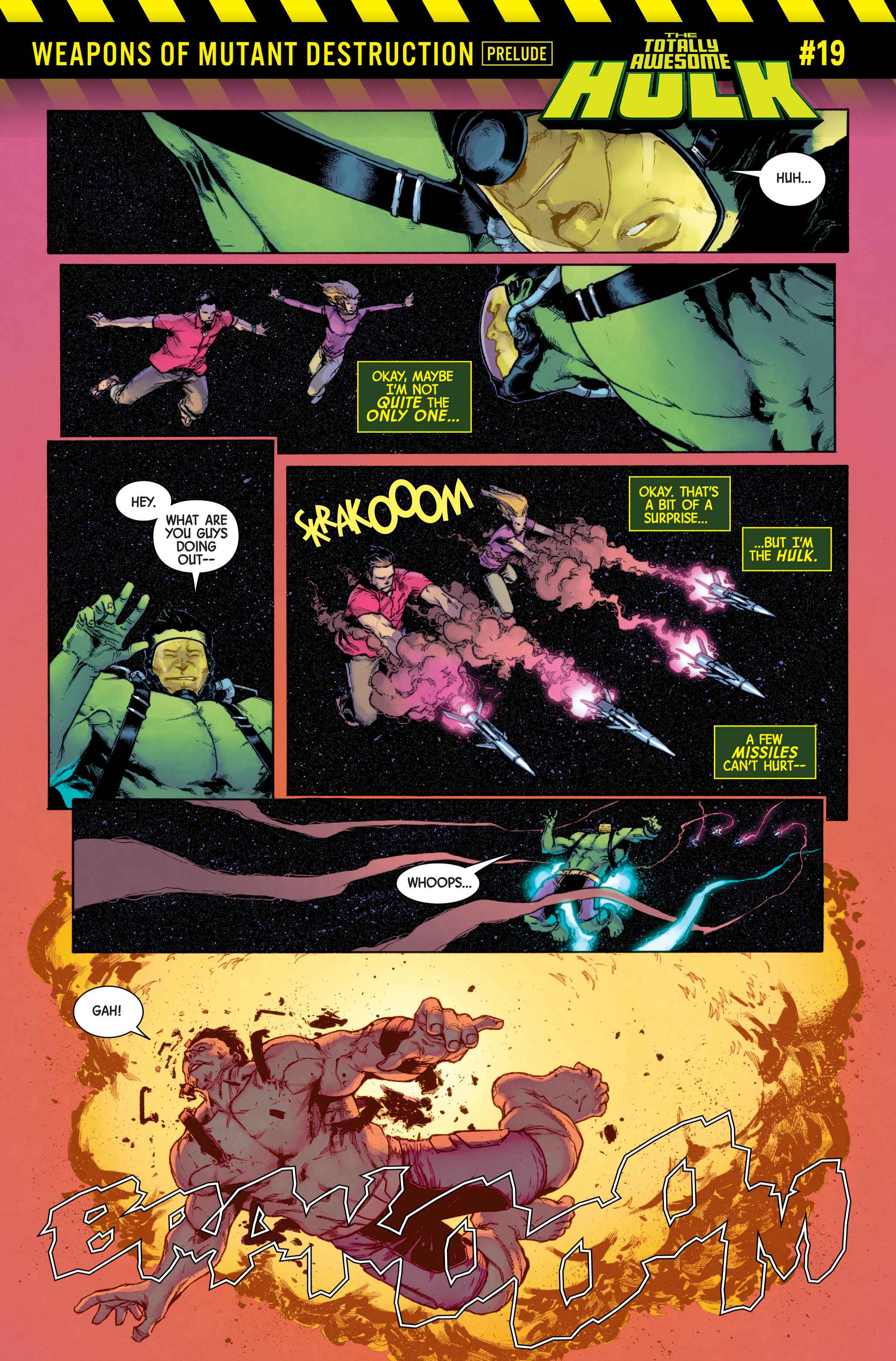 Be there on June 21st when WEAPONS OF MUTANT DESTRUCTION: ALPHA #1 kicks off and continues all summer long and be sure to pick up TOTALLY AWESOME HULK #19 and WEAPON X #4 for the prelude chapters in comic shops everywhere and don’t miss any part of this thrilling crossover!