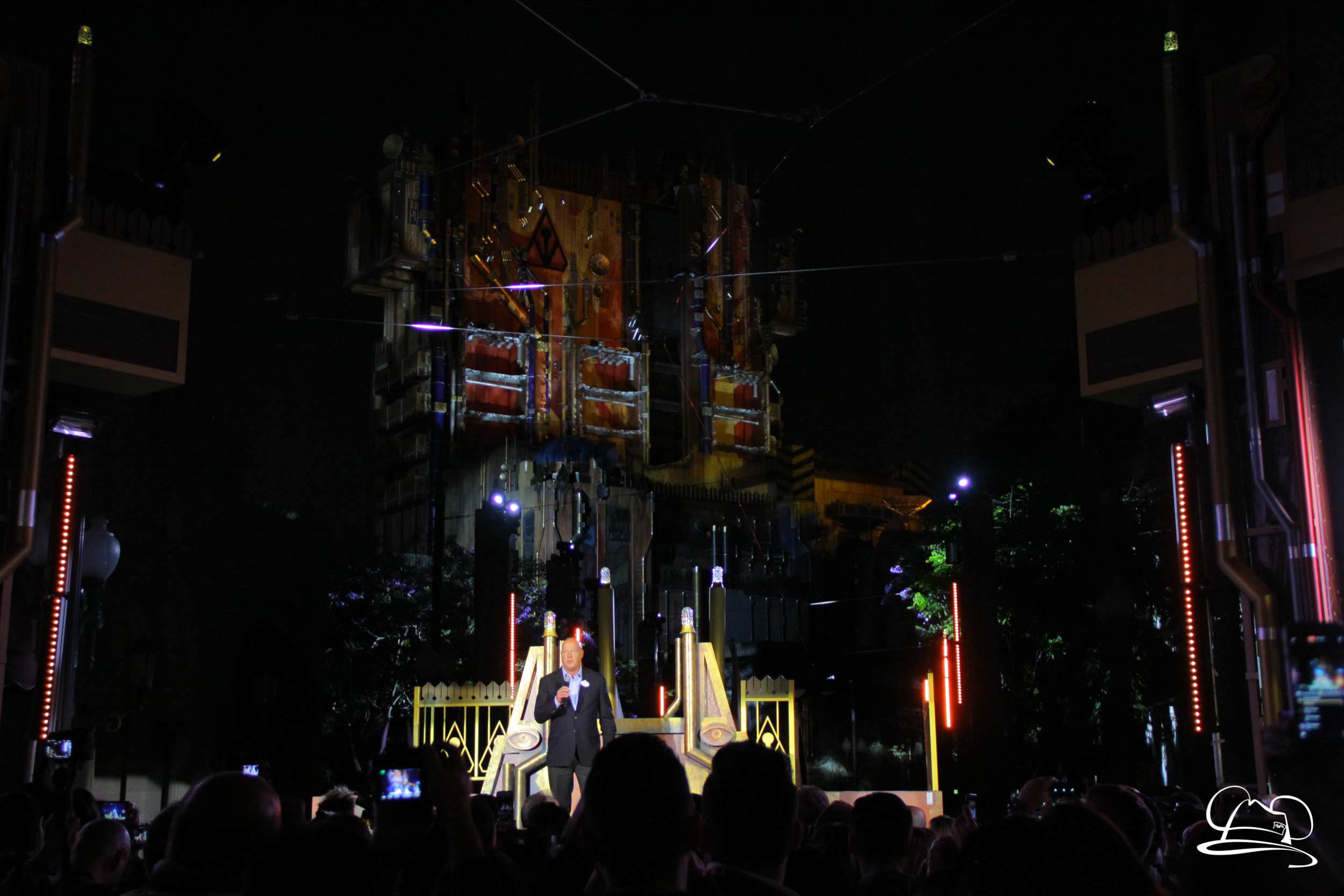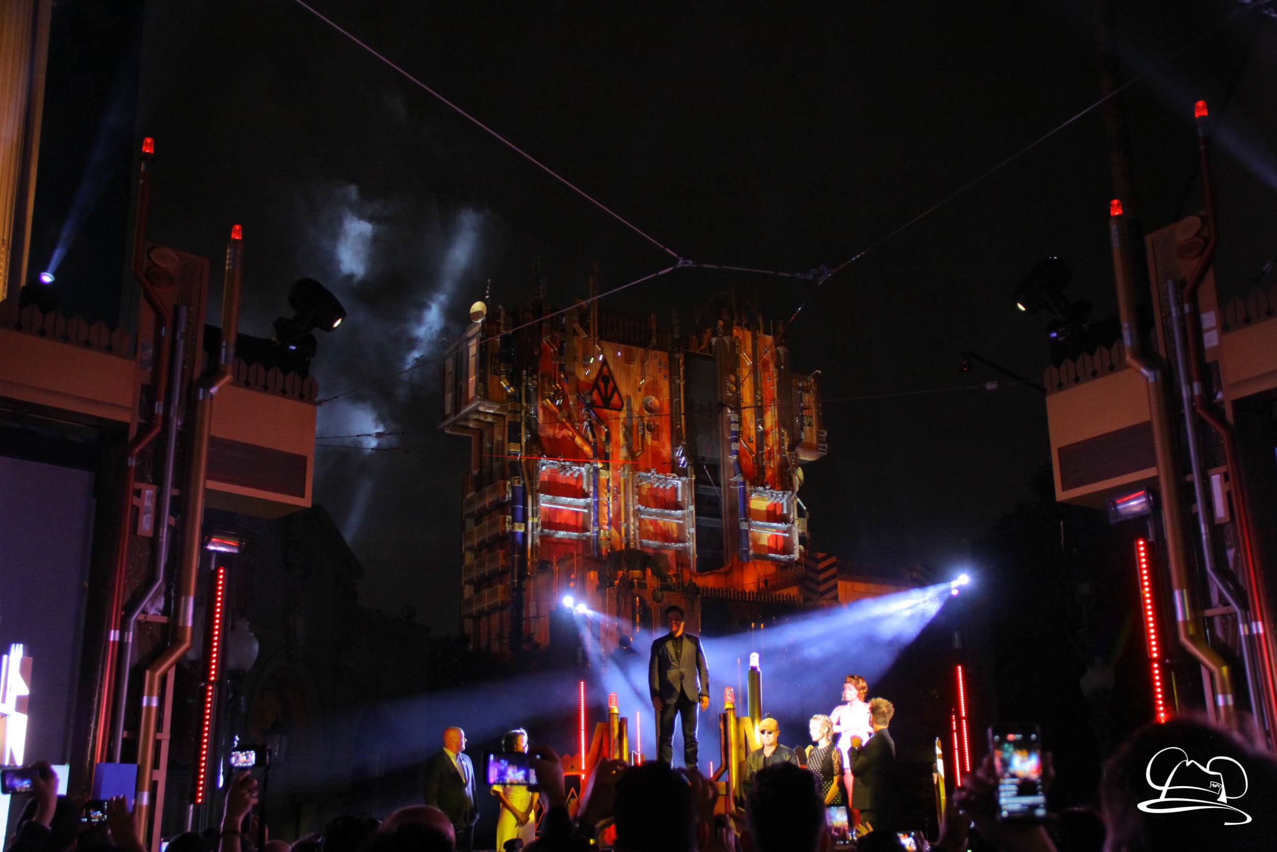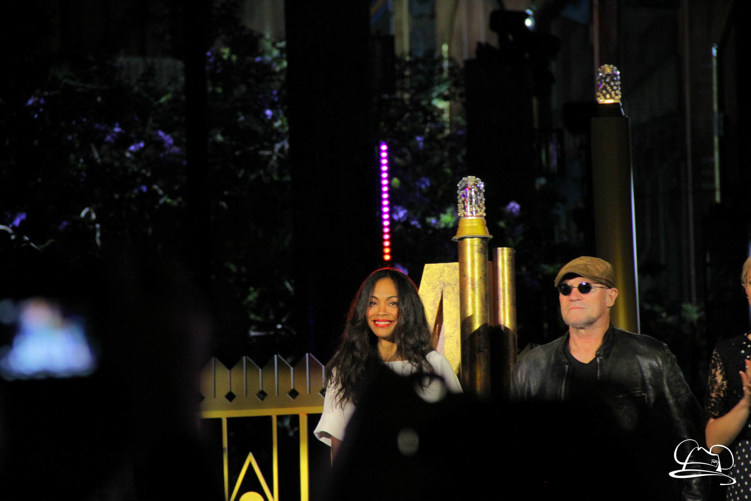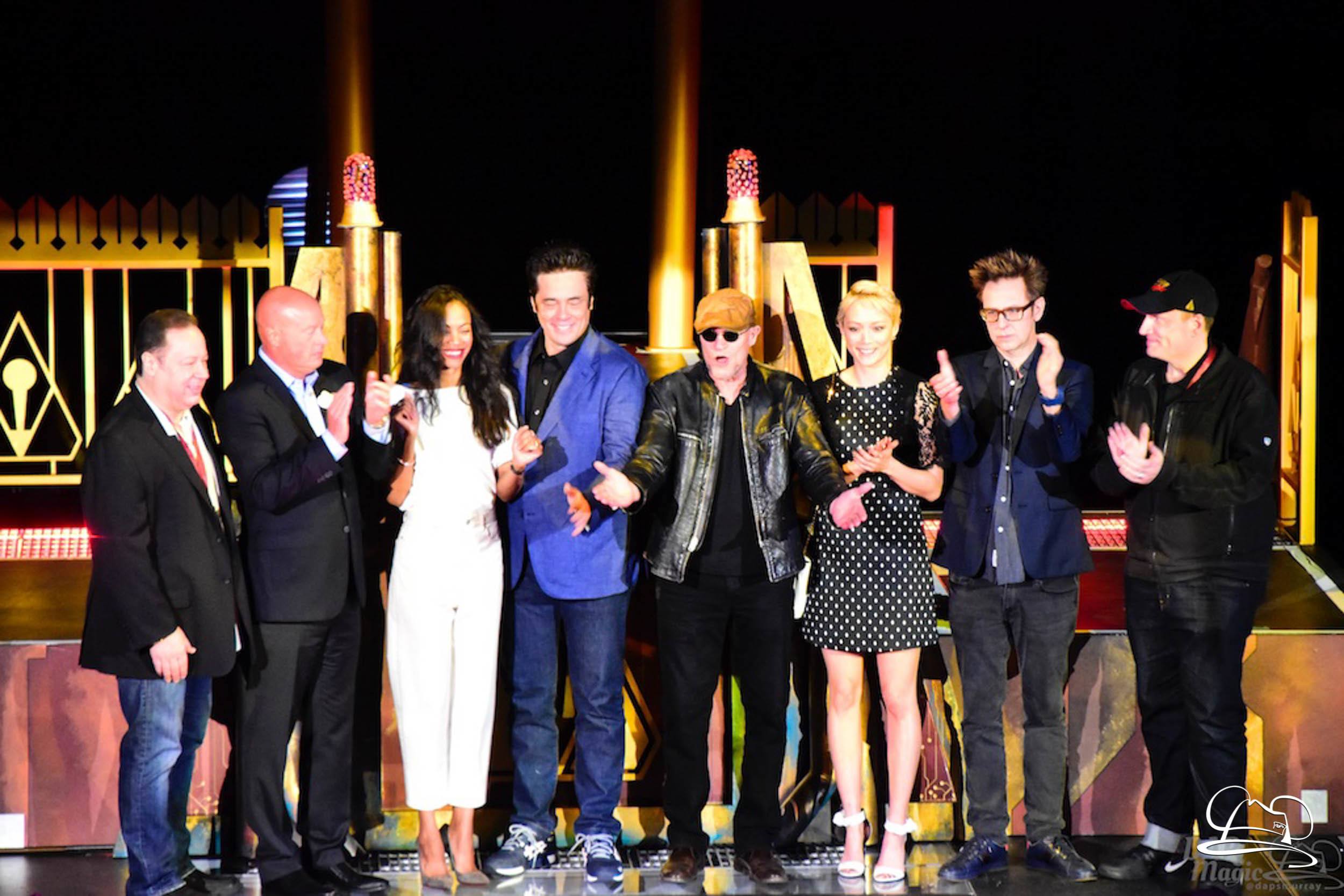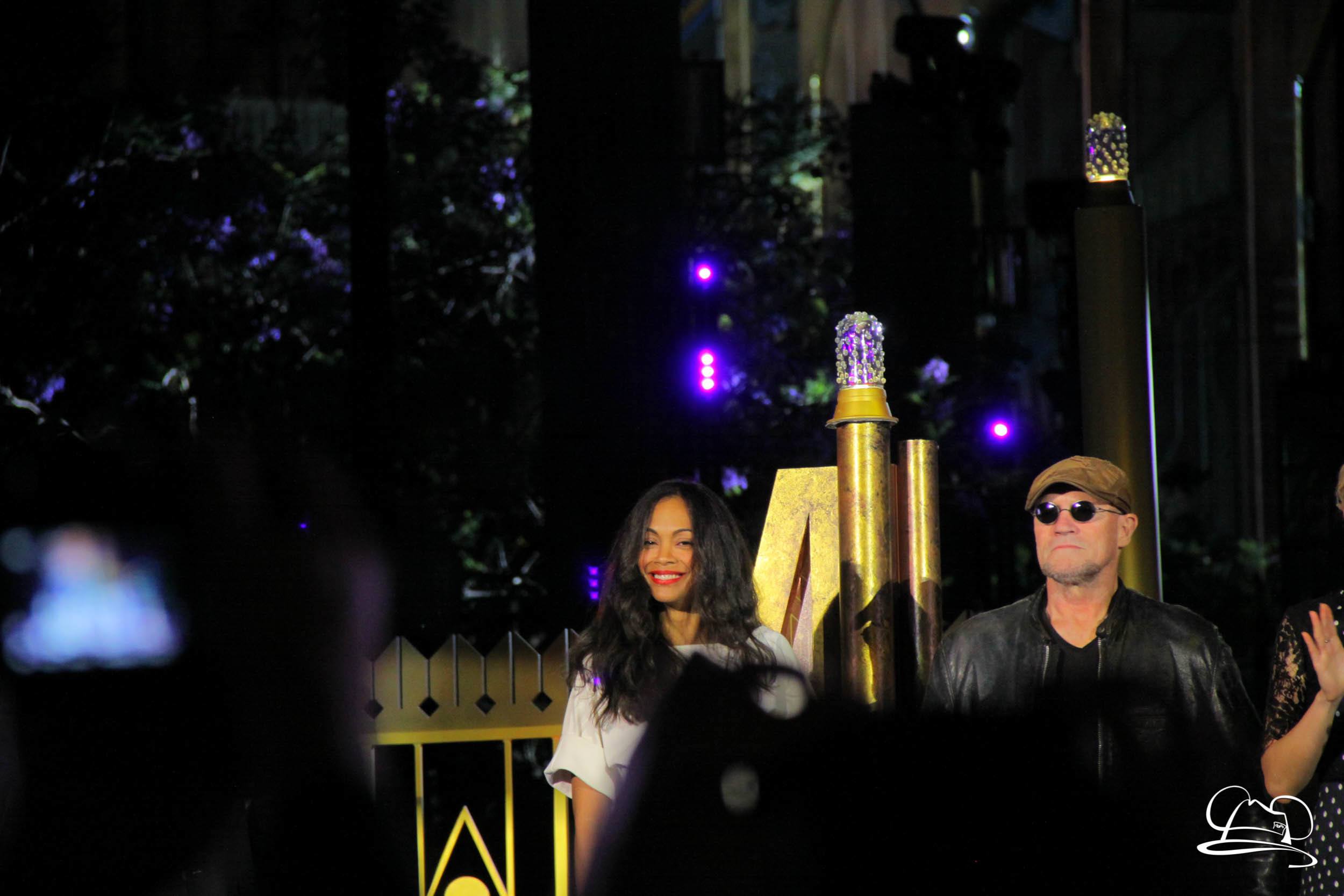 The Disneyland Resort kicked off the Summer of Heroes with a star studded event in Disney California Adventure. After a special party in Hollywood Backlots, a ceremony took place for the opening of the Tivan Collection by The Collector. Hosted by The Collector’s assistant(s), this event included Chairman of Disney Parks and Resorts Bob Chapek and Guardians of the Galaxy Vol. 1 and Vol. 2 director James Gunn. They were joined by Pom Klementieff who portrayed Mantis, Michael Rooker who portrayed Yondu, and Zoe Saldana who plays Gamora. Finally Benicio del Toro joined to take the place of The Collector. When The Collector’s assistant was worried about him taking The Collector’s place he quipped that he was sure The Collector would mind. Moments later the area erupted with lights, lasers, and pyrotechnics as Guardians of the Galaxy – Mission: BREAKOUT! was officially opened to the media and honored guests.