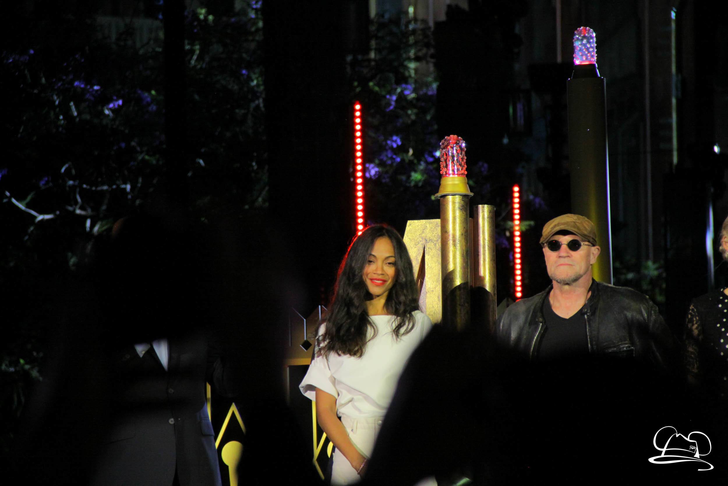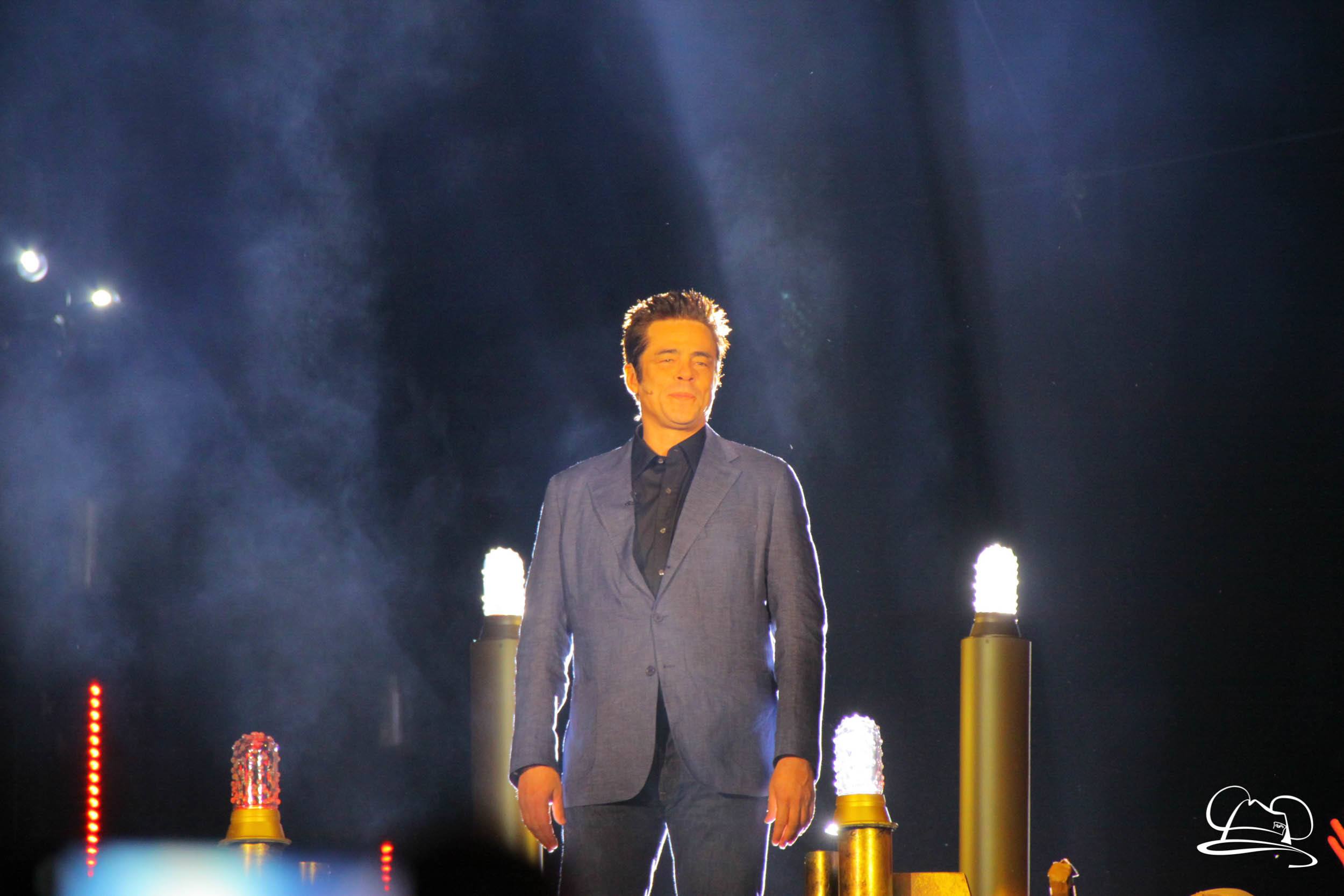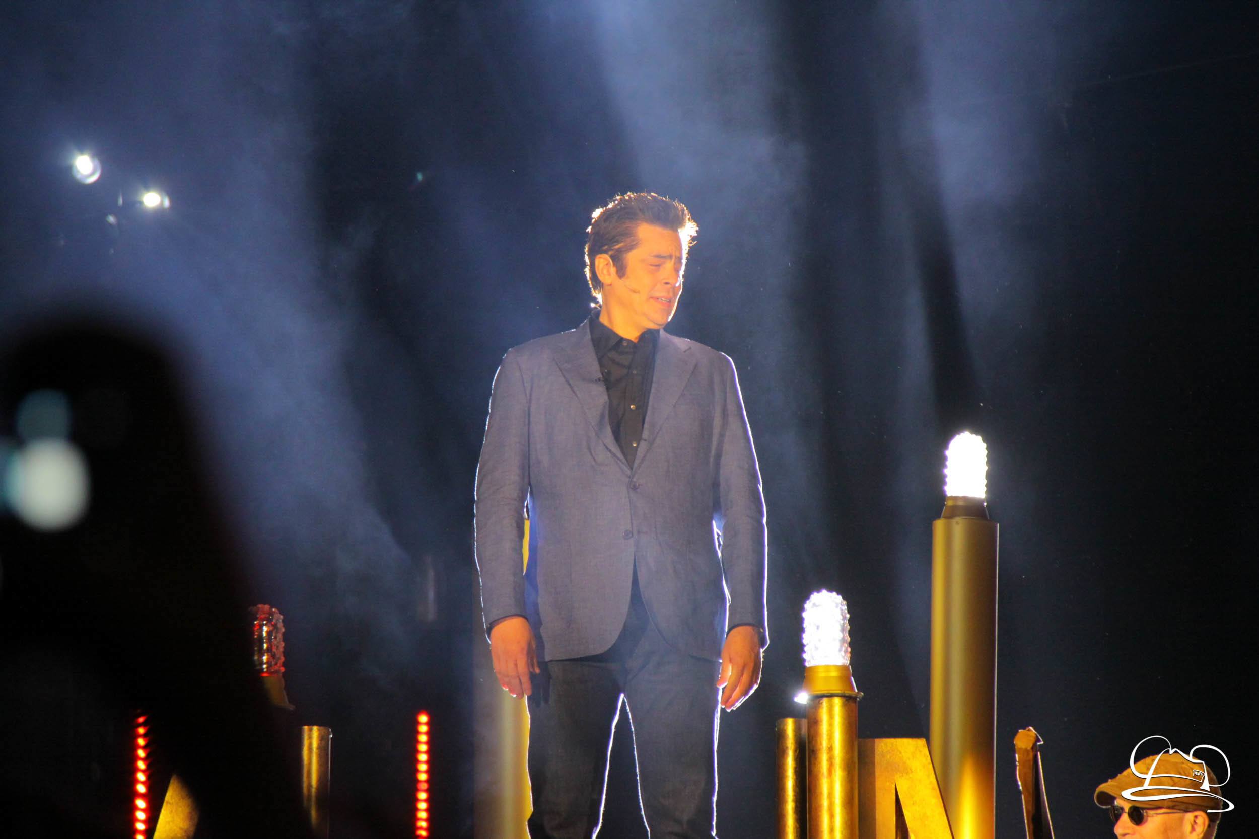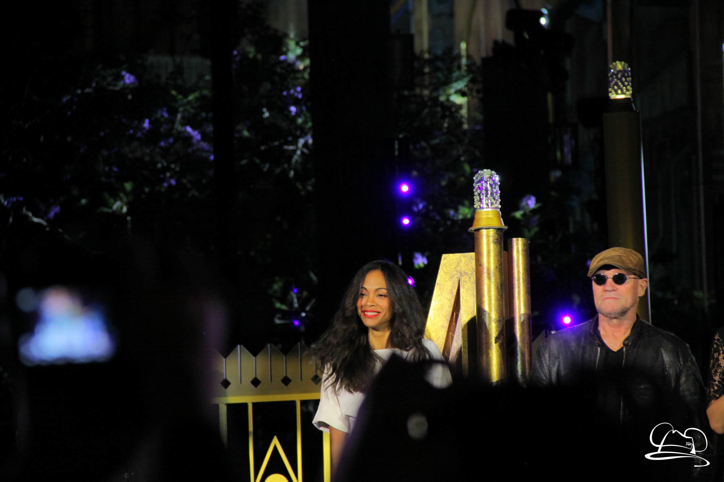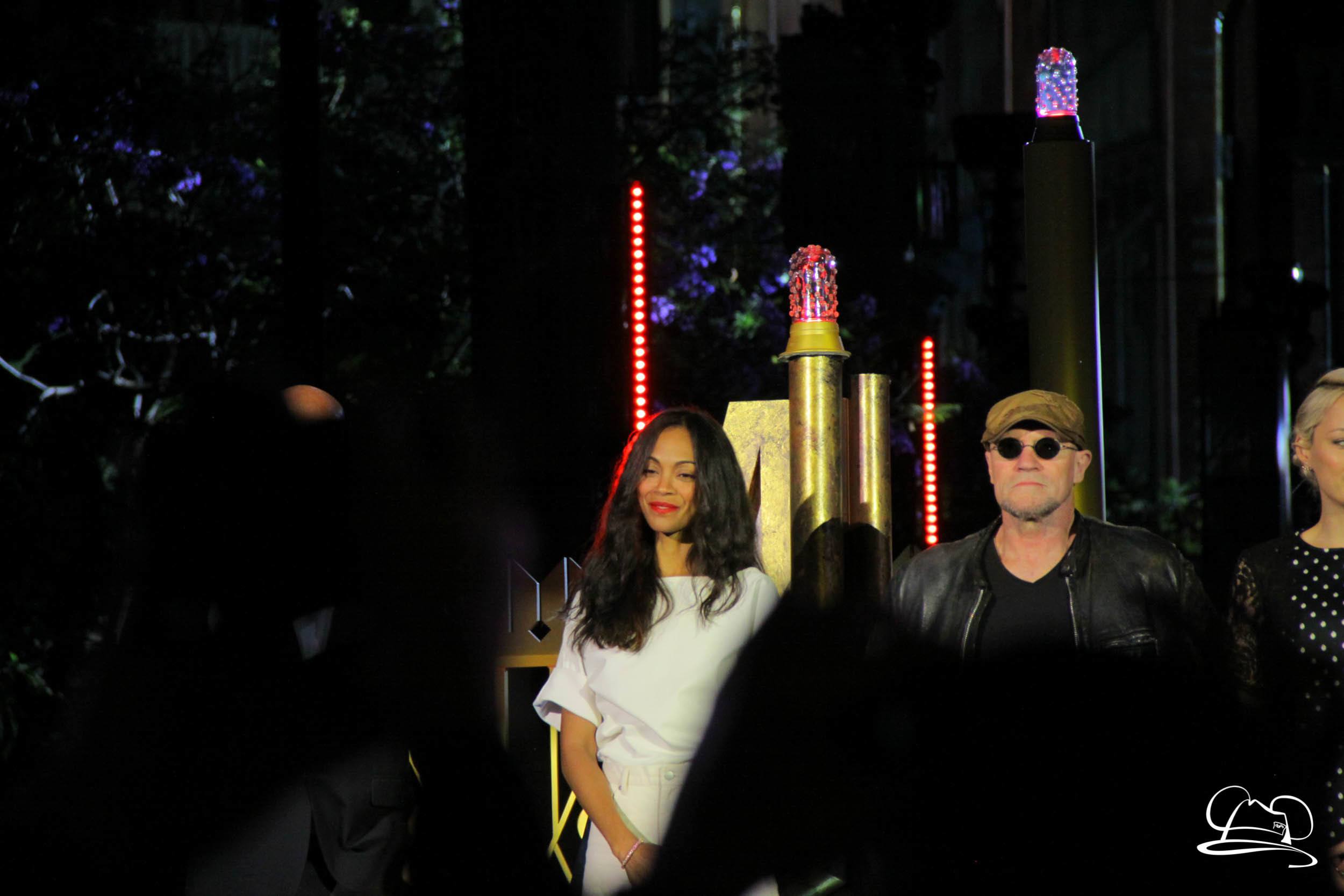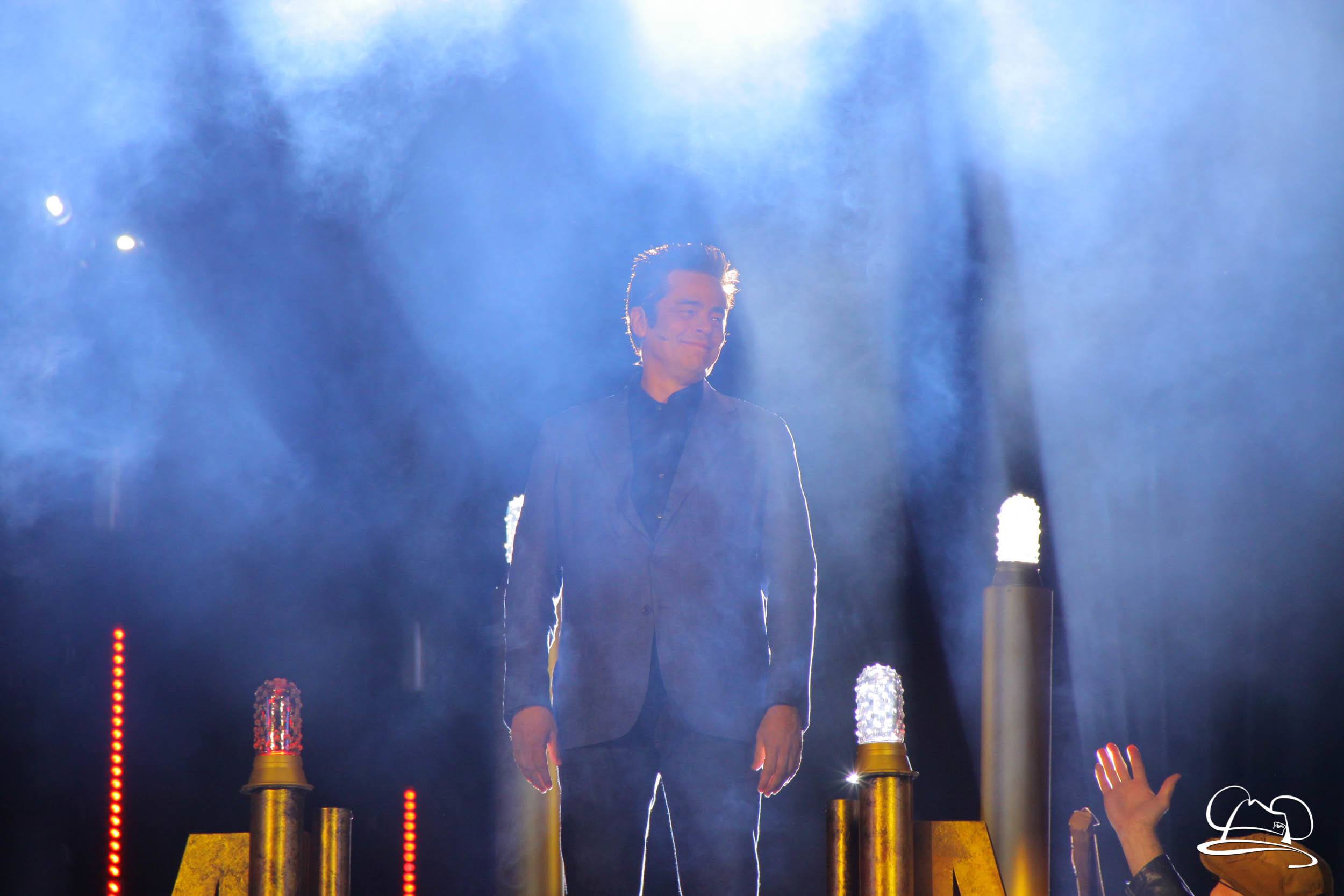 The Disneyland Resort kicked off the Summer of Heroes with a star studded event in Disney California Adventure. After a special party in Hollywood Backlots, a ceremony took place for the opening of the Tivan Collection by The Collector. Hosted by The Collector’s assistant(s), this event included Chairman of Disney Parks and Resorts Bob Chapek and Guardians of the Galaxy Vol. 1 and Vol. 2 director James Gunn. They were joined by Pom Klementieff who portrayed Mantis, Michael Rooker who portrayed Yondu, and Zoe Saldana who plays Gamora. Finally Benicio del Toro joined to take the place of The Collector. When The Collector’s assistant was worried about him taking The Collector’s place he quipped that he was sure The Collector would mind. Moments later the area erupted with lights, lasers, and pyrotechnics as Guardians of the Galaxy – Mission: BREAKOUT! was officially opened to the media and honored guests.