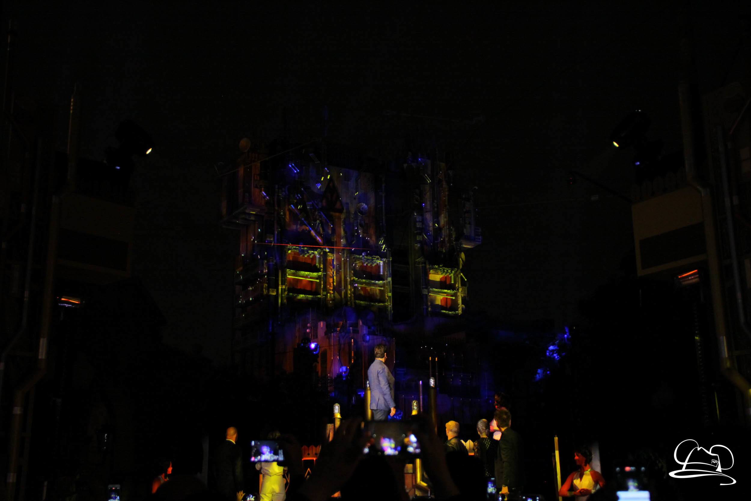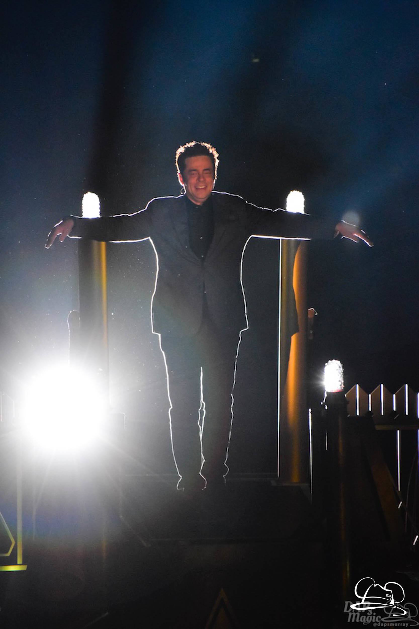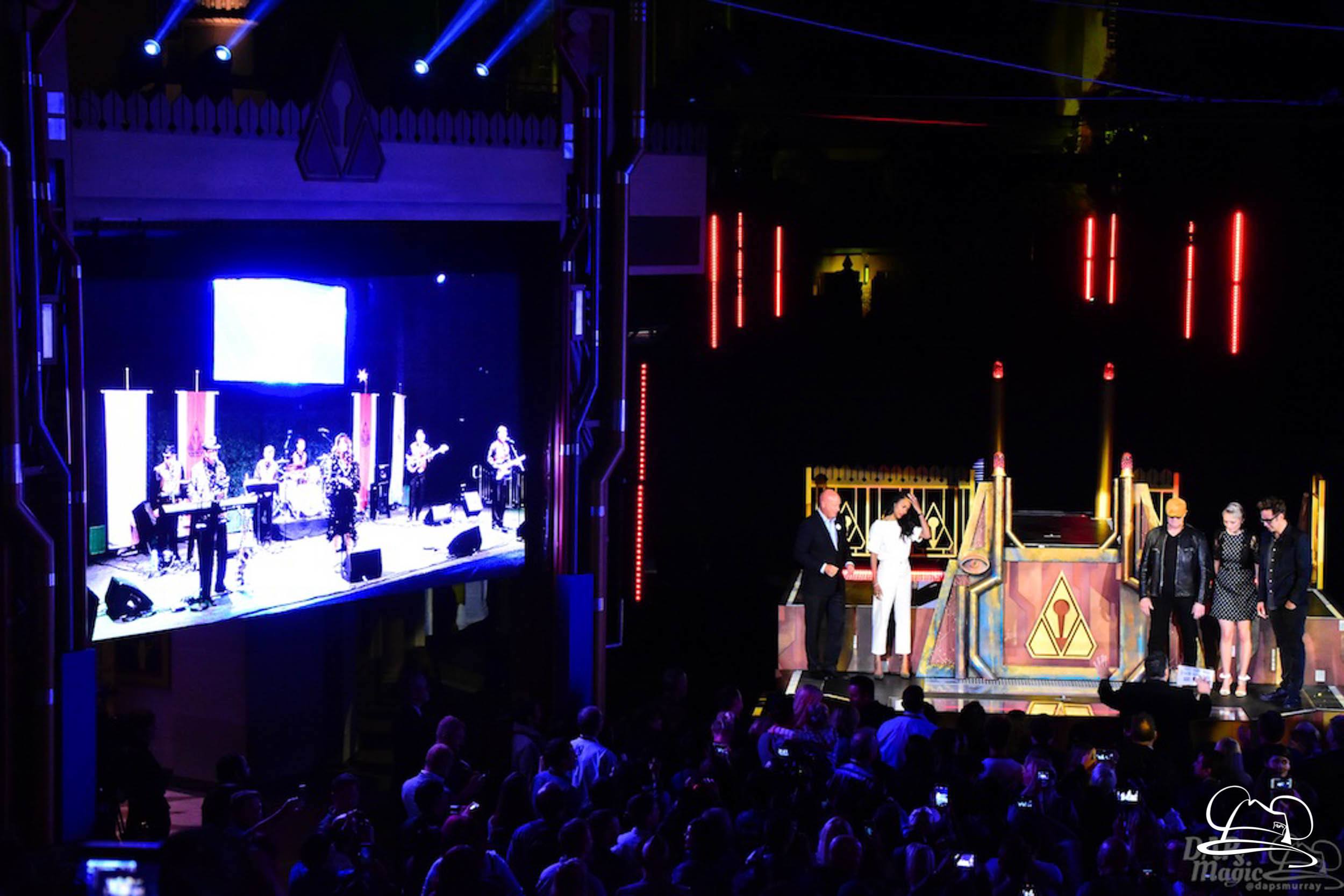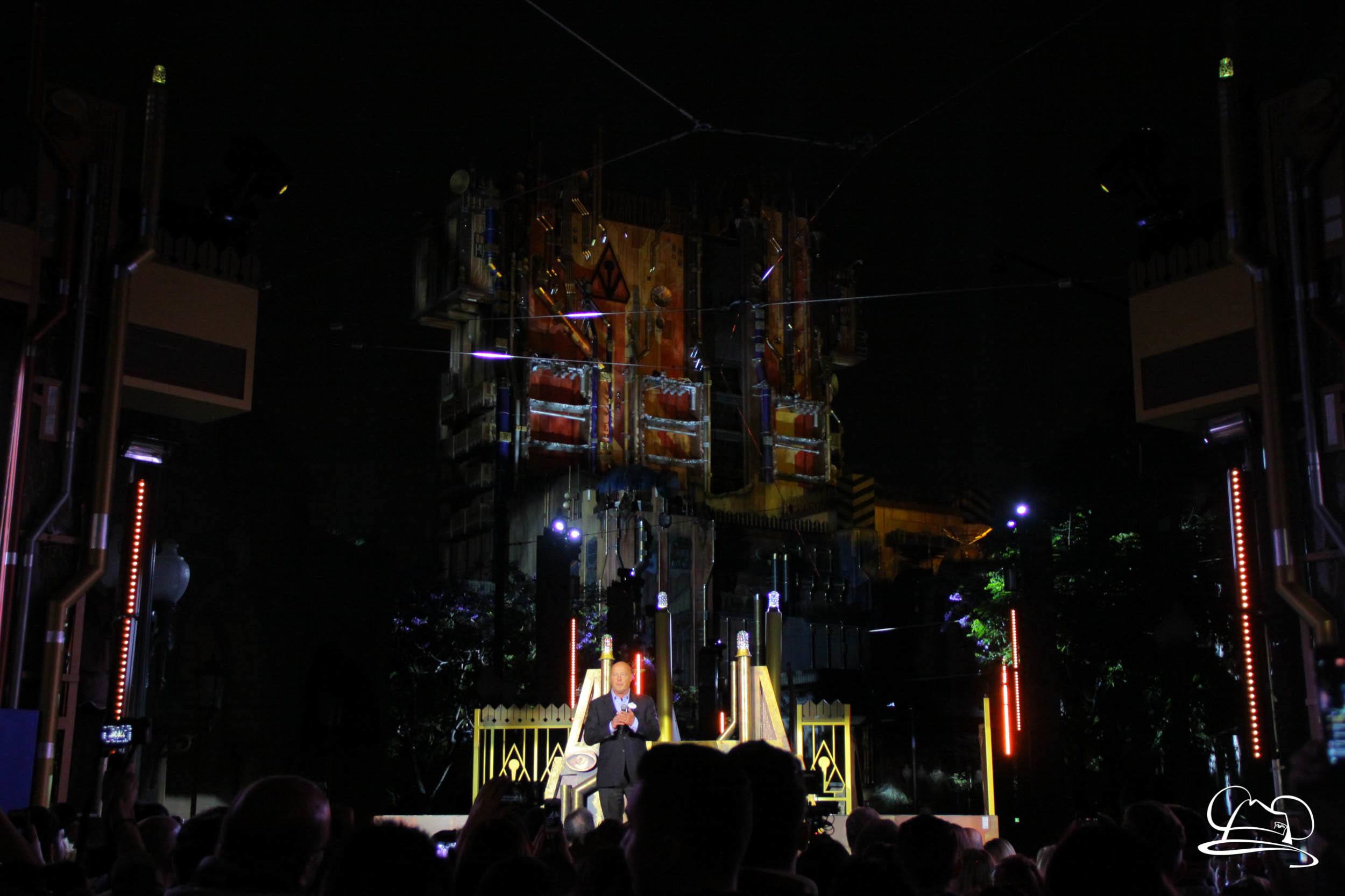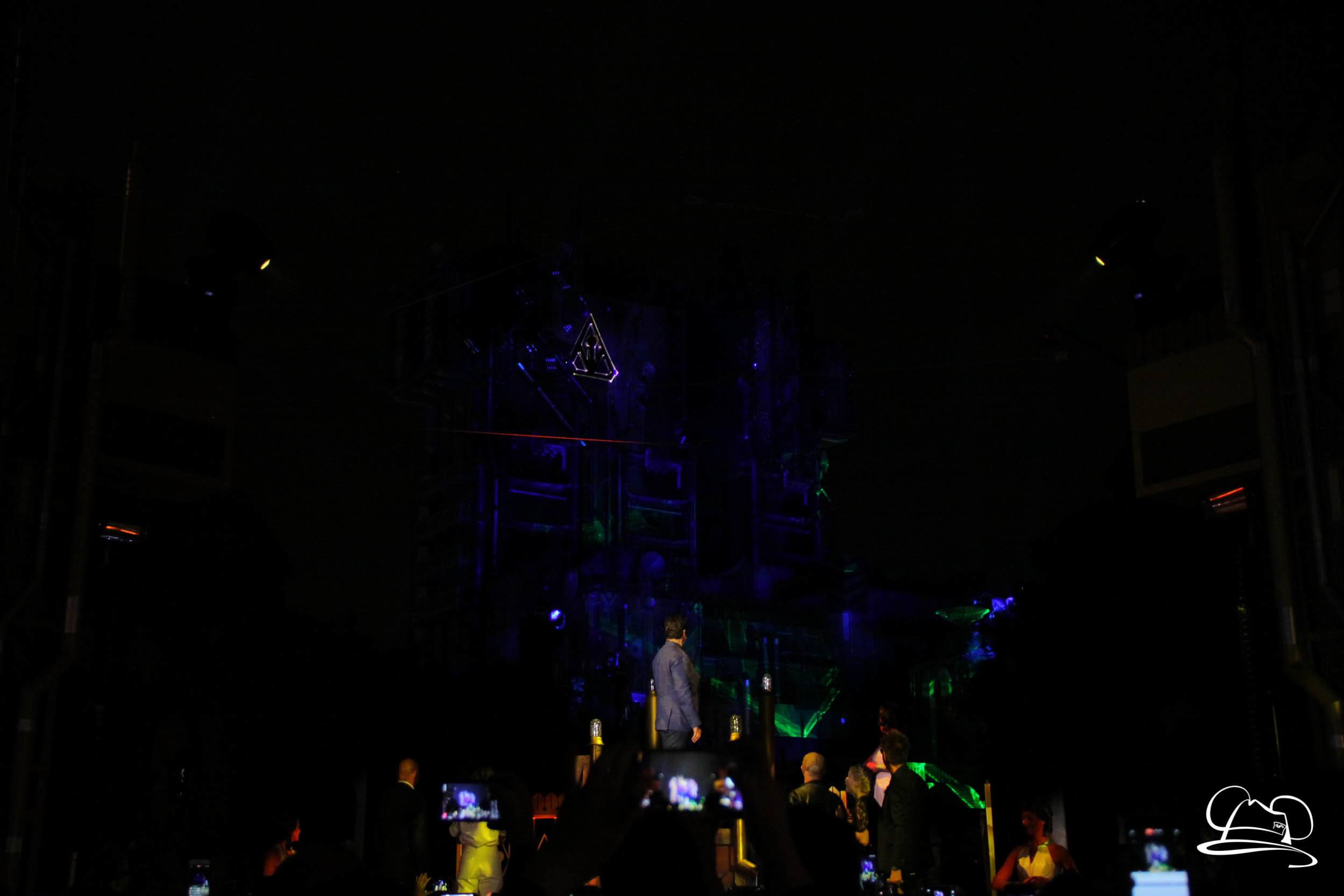 The Disneyland Resort kicked off the Summer of Heroes with a star studded event in Disney California Adventure. After a special party in Hollywood Backlots, a ceremony took place for the opening of the Tivan Collection by The Collector. Hosted by The Collector’s assistant(s), this event included Chairman of Disney Parks and Resorts Bob Chapek and Guardians of the Galaxy Vol. 1 and Vol. 2 director James Gunn. They were joined by Pom Klementieff who portrayed Mantis, Michael Rooker who portrayed Yondu, and Zoe Saldana who plays Gamora. Finally Benicio del Toro joined to take the place of The Collector. When The Collector’s assistant was worried about him taking The Collector’s place he quipped that he was sure The Collector would mind. Moments later the area erupted with lights, lasers, and pyrotechnics as Guardians of the Galaxy – Mission: BREAKOUT! was officially opened to the media and honored guests.