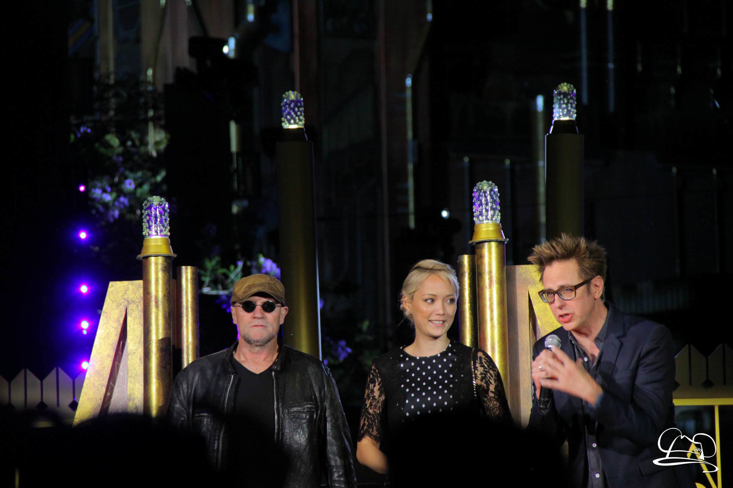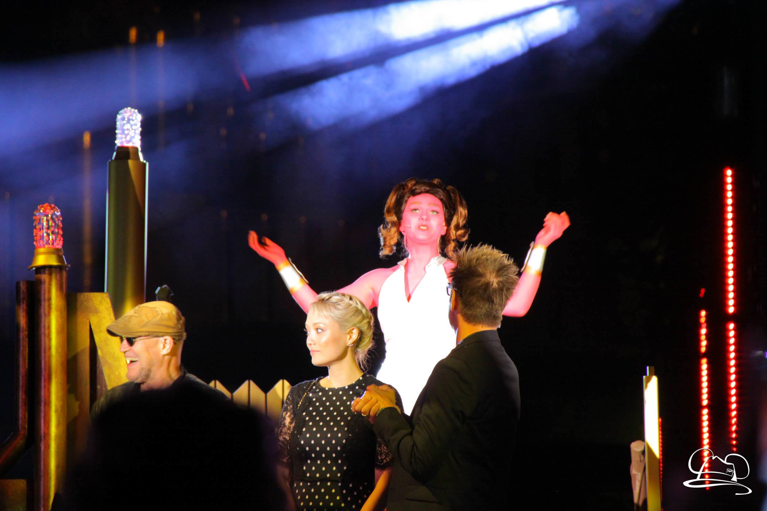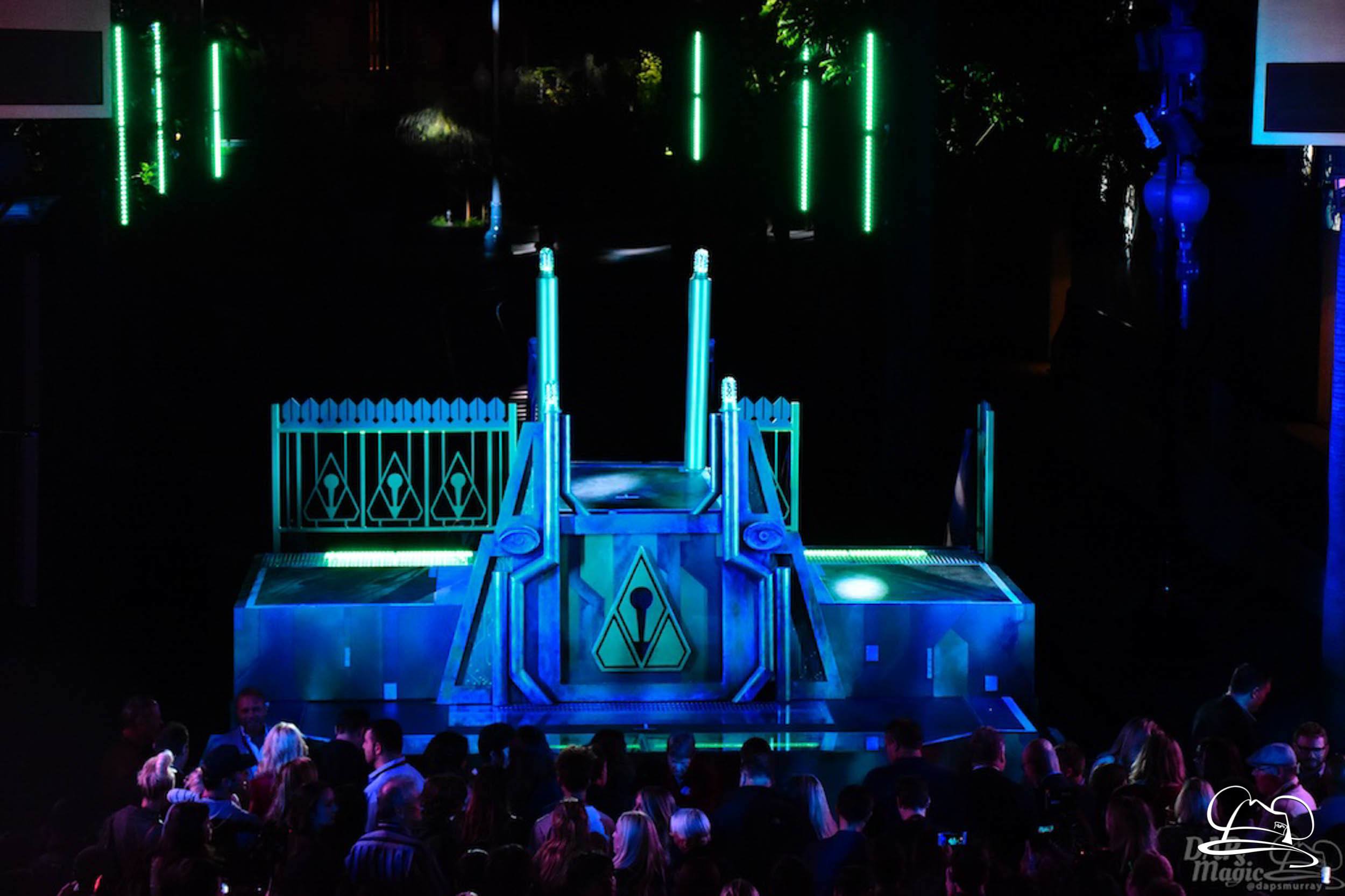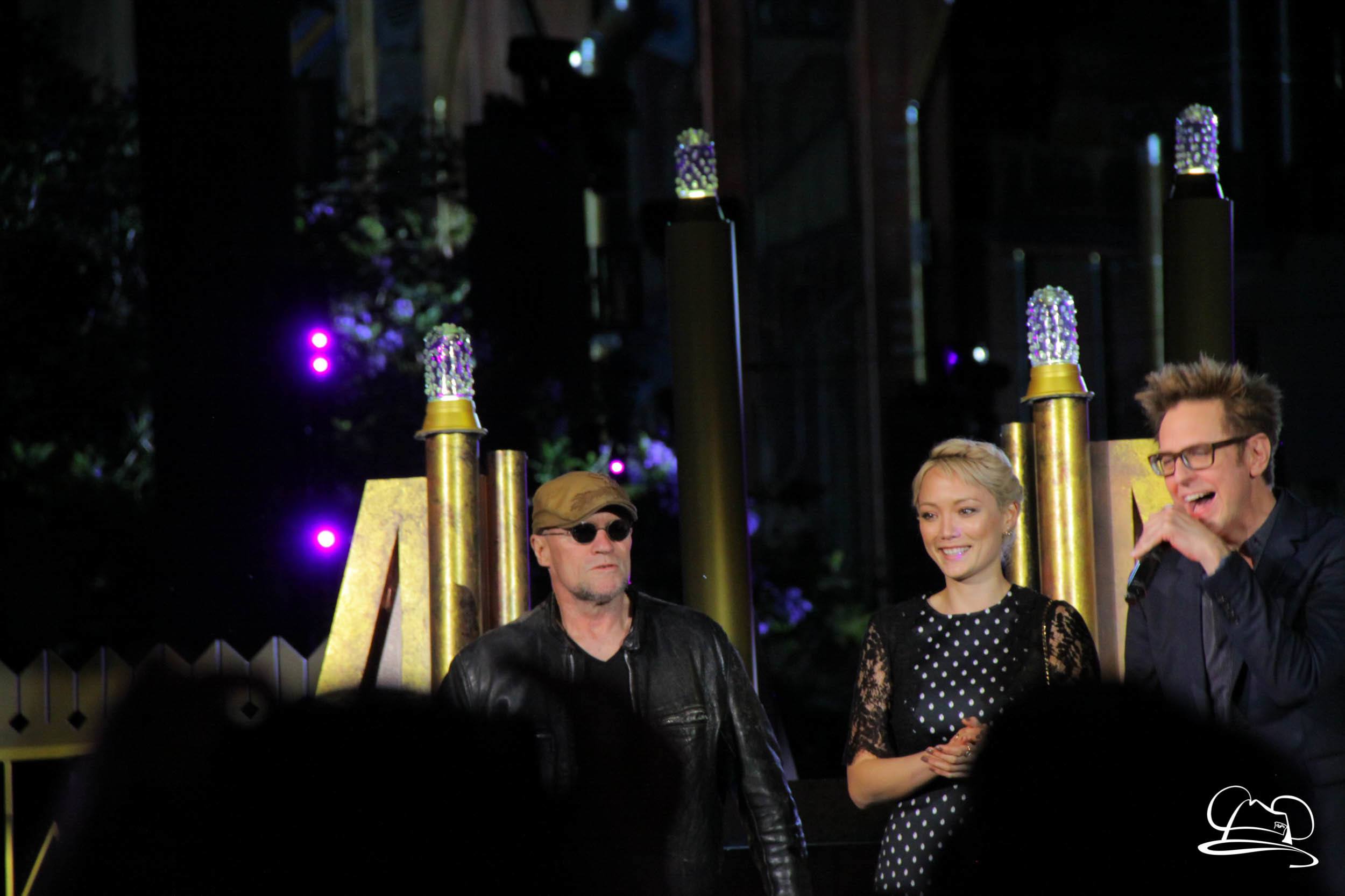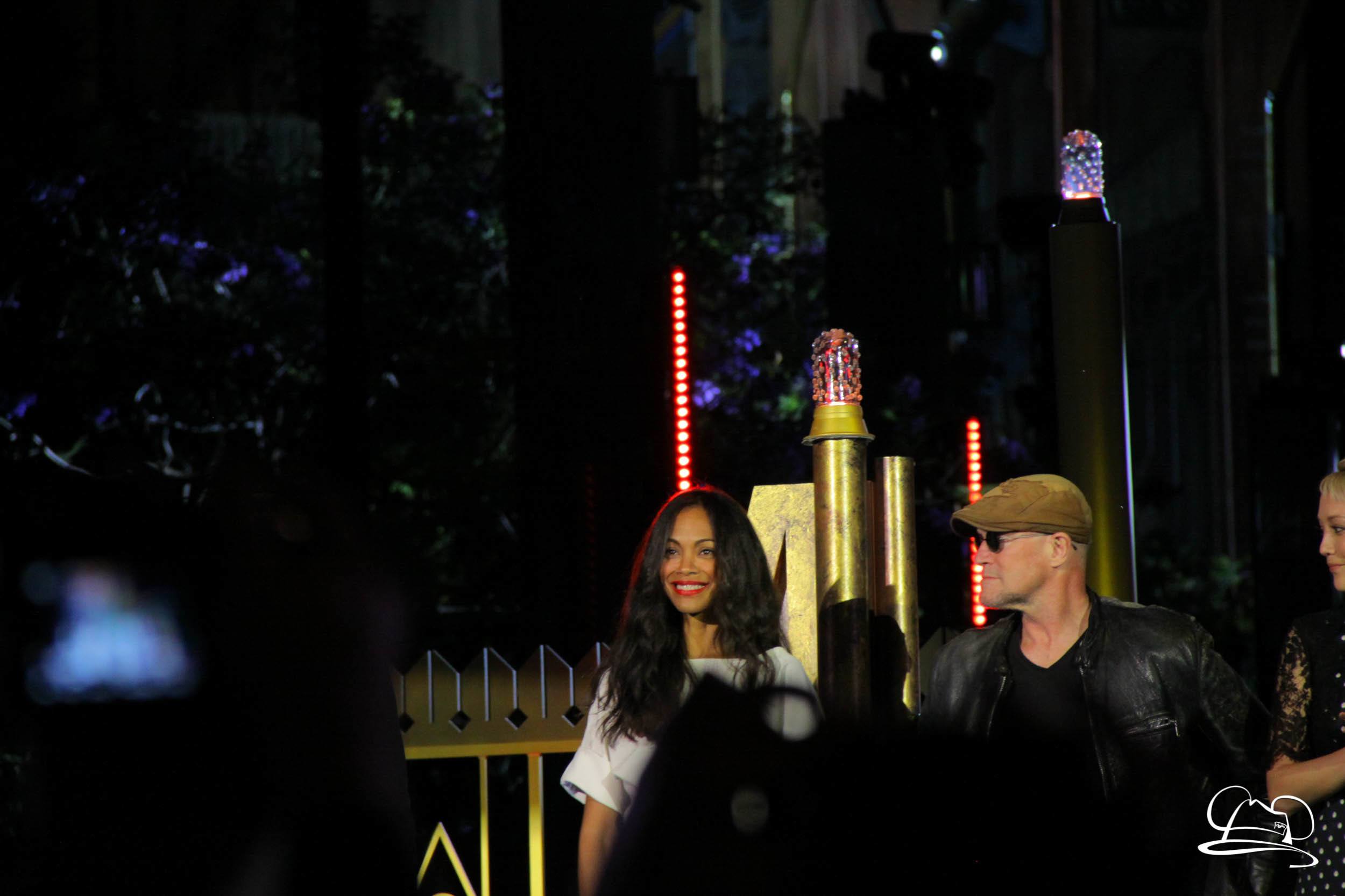 The Disneyland Resort kicked off the Summer of Heroes with a star studded event in Disney California Adventure. After a special party in Hollywood Backlots, a ceremony took place for the opening of the Tivan Collection by The Collector. Hosted by The Collector’s assistant(s), this event included Chairman of Disney Parks and Resorts Bob Chapek and Guardians of the Galaxy Vol. 1 and Vol. 2 director James Gunn. They were joined by Pom Klementieff who portrayed Mantis, Michael Rooker who portrayed Yondu, and Zoe Saldana who plays Gamora. Finally Benicio del Toro joined to take the place of The Collector. When The Collector’s assistant was worried about him taking The Collector’s place he quipped that he was sure The Collector would mind. Moments later the area erupted with lights, lasers, and pyrotechnics as Guardians of the Galaxy – Mission: BREAKOUT! was officially opened to the media and honored guests.