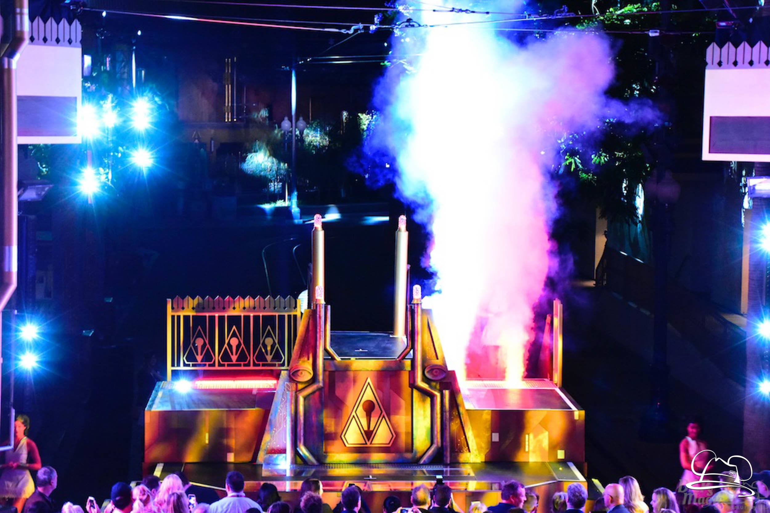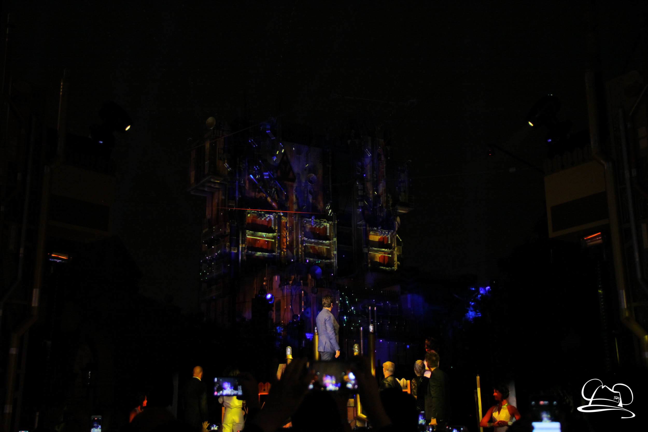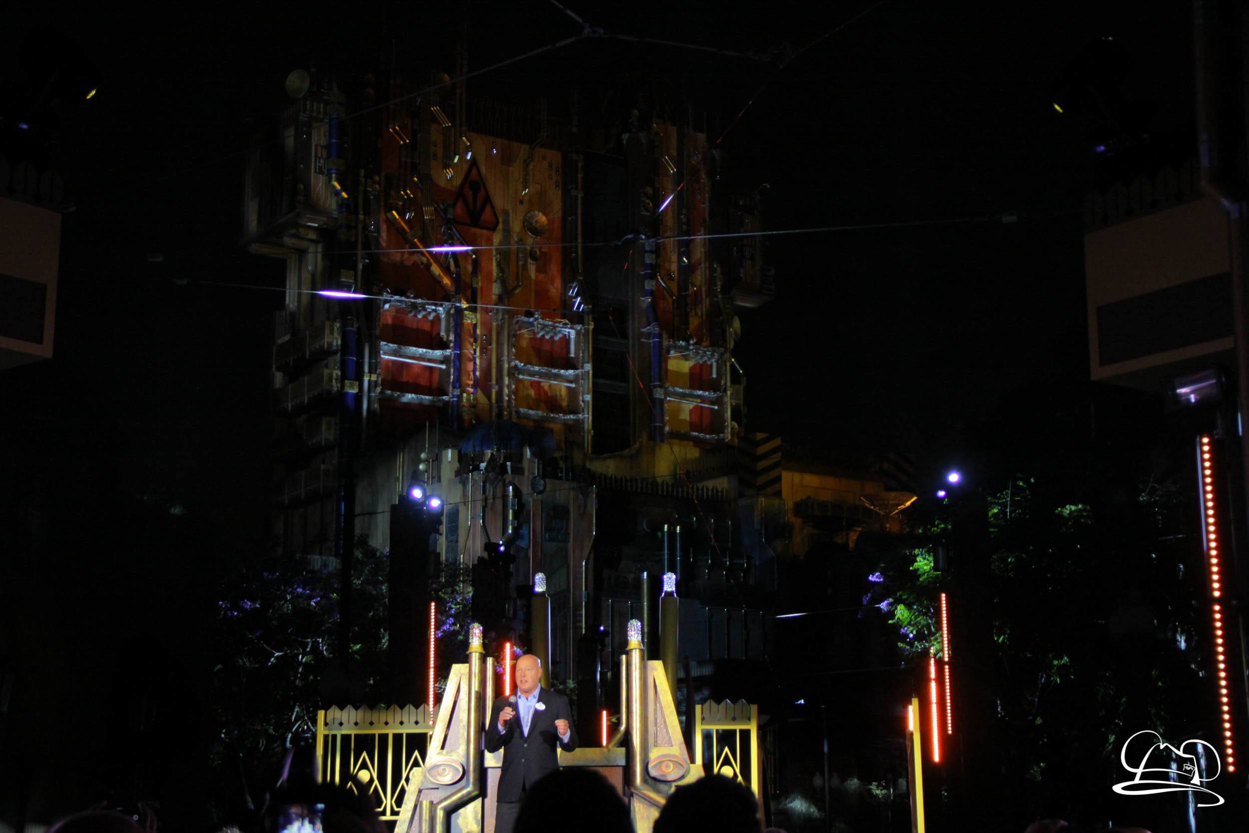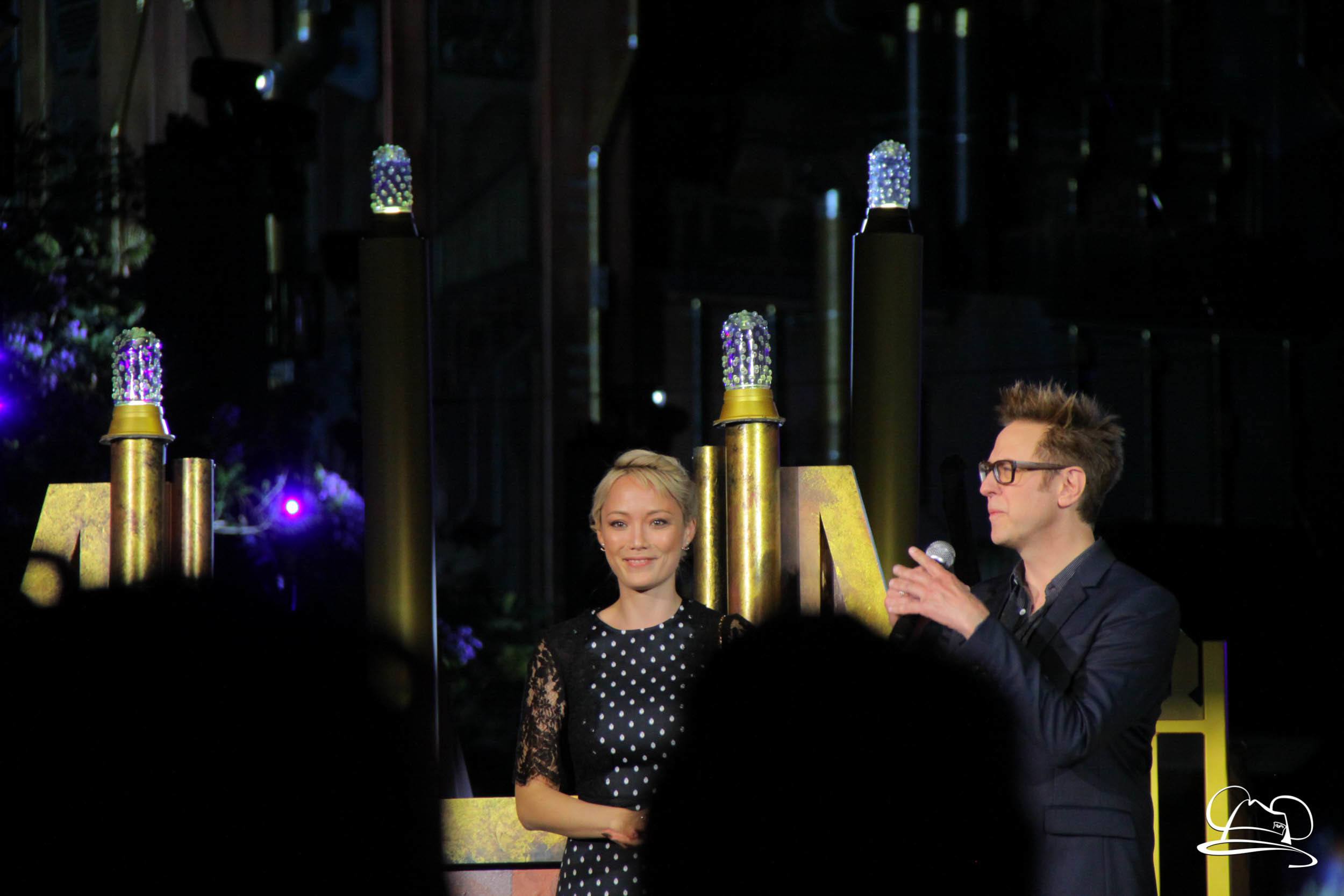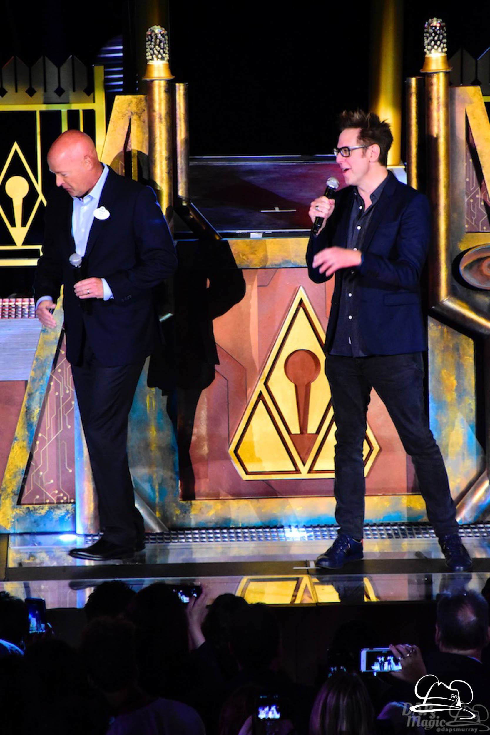 The Disneyland Resort kicked off the Summer of Heroes with a star studded event in Disney California Adventure. After a special party in Hollywood Backlots, a ceremony took place for the opening of the Tivan Collection by The Collector. Hosted by The Collector’s assistant(s), this event included Chairman of Disney Parks and Resorts Bob Chapek and Guardians of the Galaxy Vol. 1 and Vol. 2 director James Gunn. They were joined by Pom Klementieff who portrayed Mantis, Michael Rooker who portrayed Yondu, and Zoe Saldana who plays Gamora. Finally Benicio del Toro joined to take the place of The Collector. When The Collector’s assistant was worried about him taking The Collector’s place he quipped that he was sure The Collector would mind. Moments later the area erupted with lights, lasers, and pyrotechnics as Guardians of the Galaxy – Mission: BREAKOUT! was officially opened to the media and honored guests.