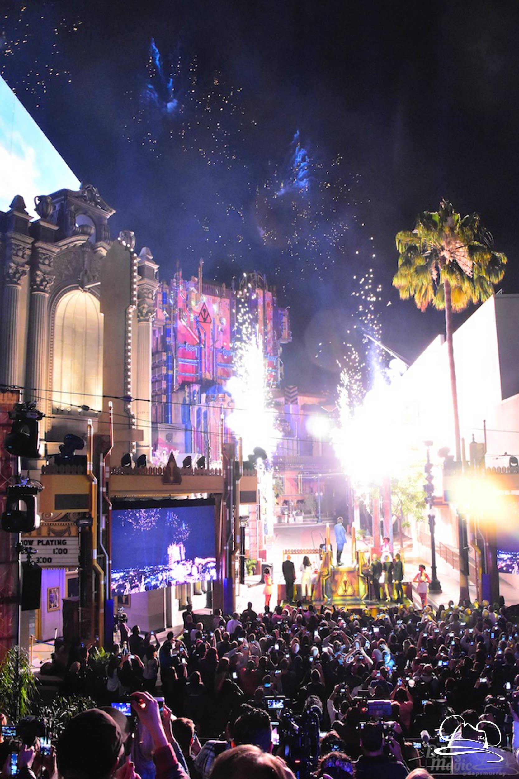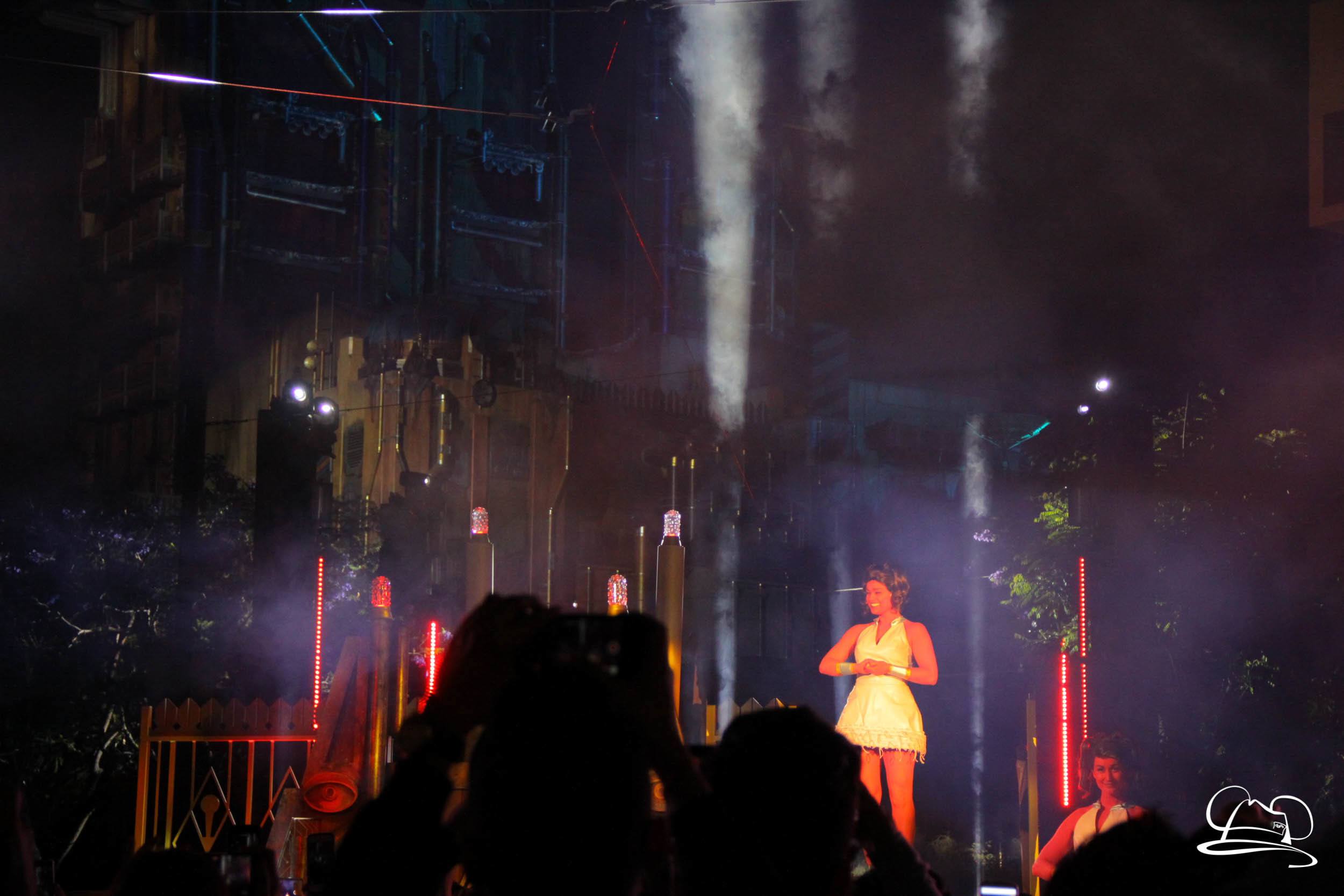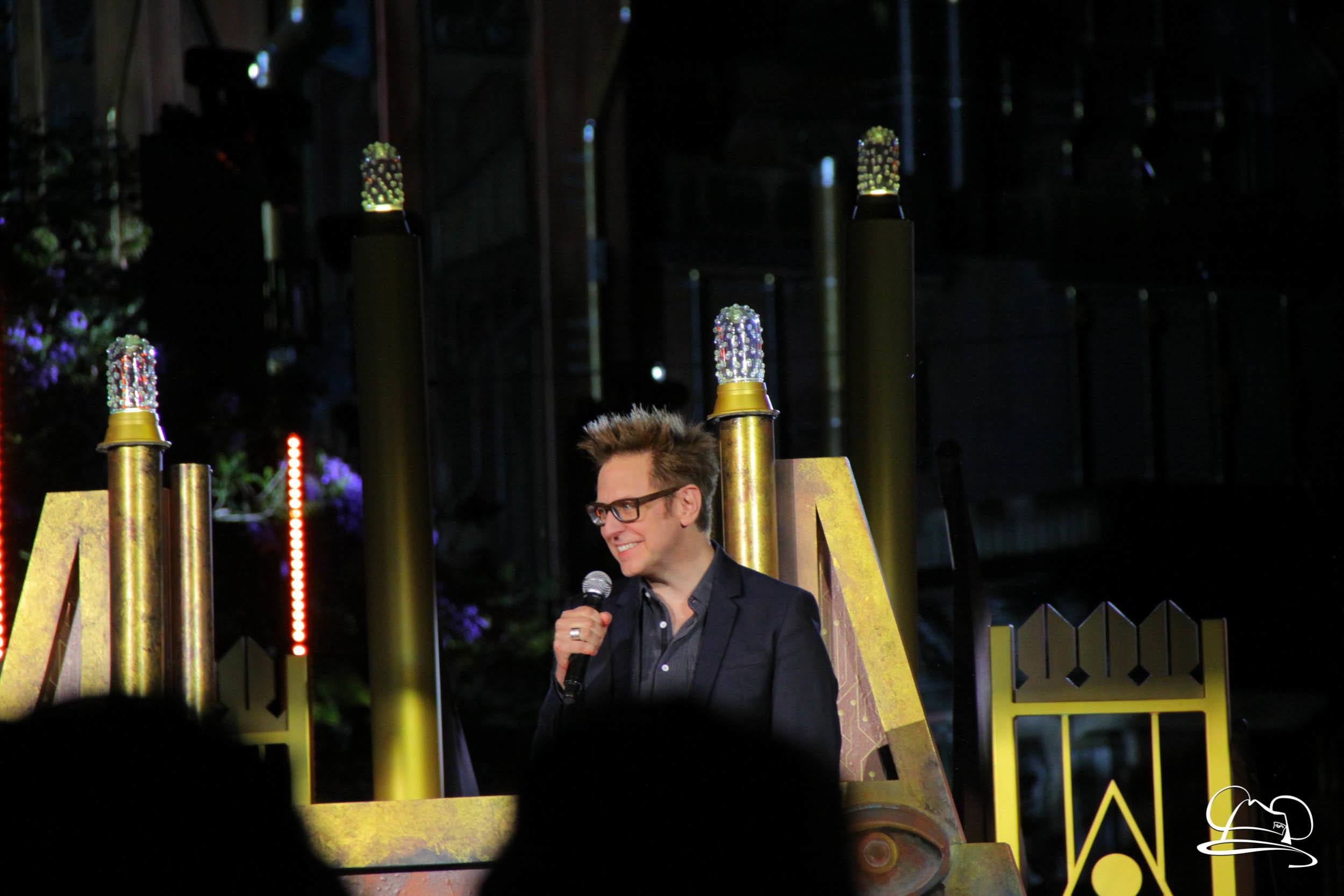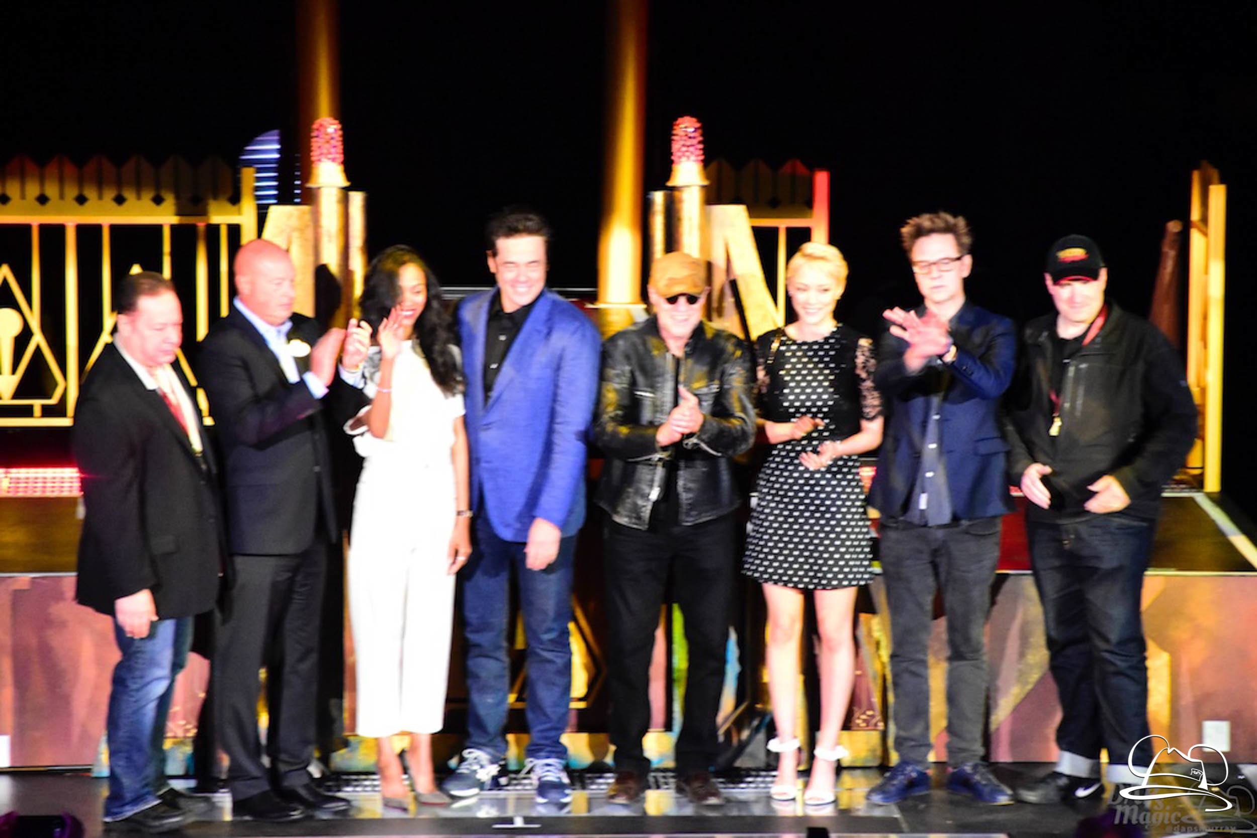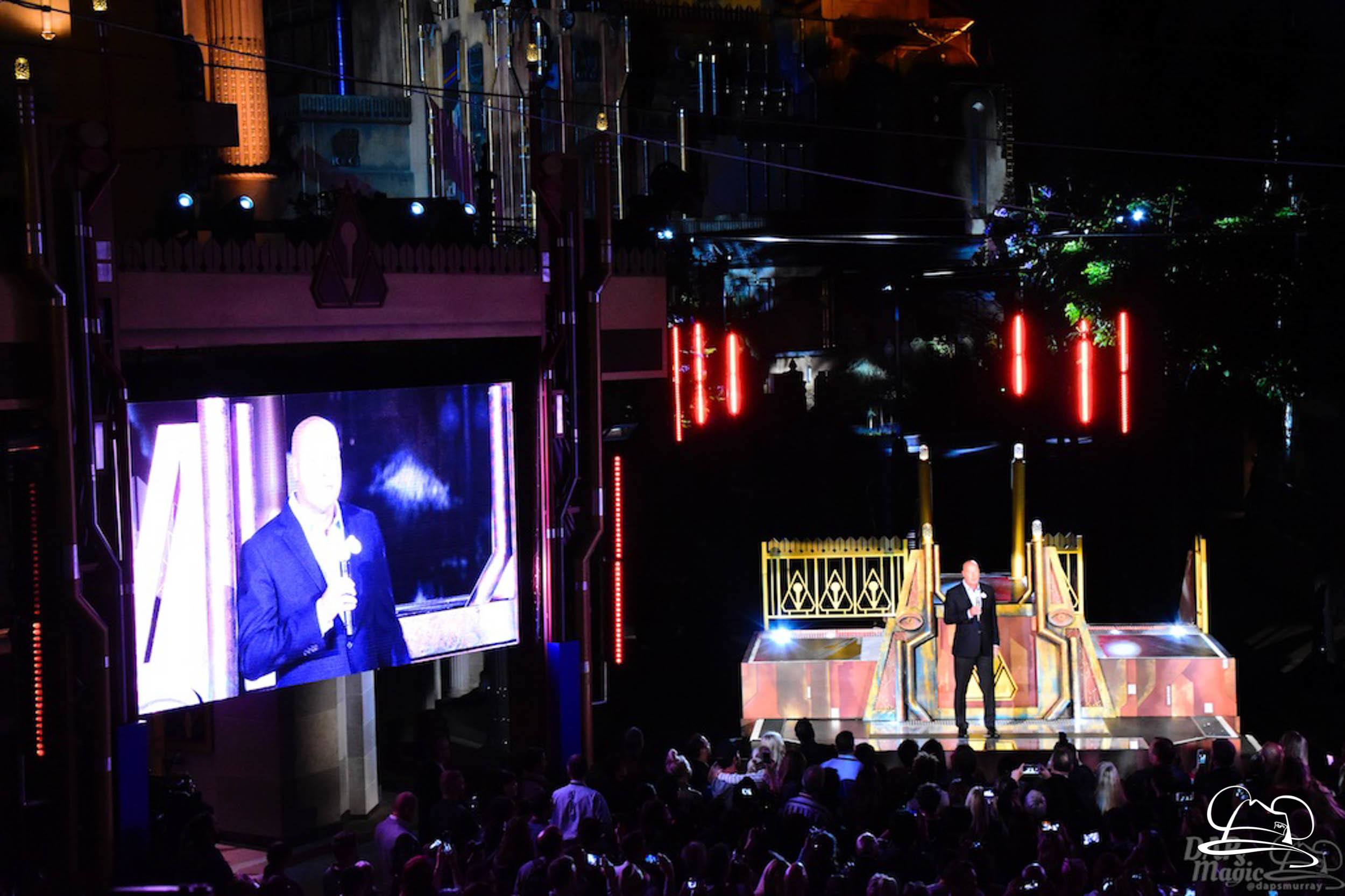 The Disneyland Resort kicked off the Summer of Heroes with a star studded event in Disney California Adventure. After a special party in Hollywood Backlots, a ceremony took place for the opening of the Tivan Collection by The Collector. Hosted by The Collector’s assistant(s), this event included Chairman of Disney Parks and Resorts Bob Chapek and Guardians of the Galaxy Vol. 1 and Vol. 2 director James Gunn. They were joined by Pom Klementieff who portrayed Mantis, Michael Rooker who portrayed Yondu, and Zoe Saldana who plays Gamora. Finally Benicio del Toro joined to take the place of The Collector. When The Collector’s assistant was worried about him taking The Collector’s place he quipped that he was sure The Collector would mind. Moments later the area erupted with lights, lasers, and pyrotechnics as Guardians of the Galaxy – Mission: BREAKOUT! was officially opened to the media and honored guests.