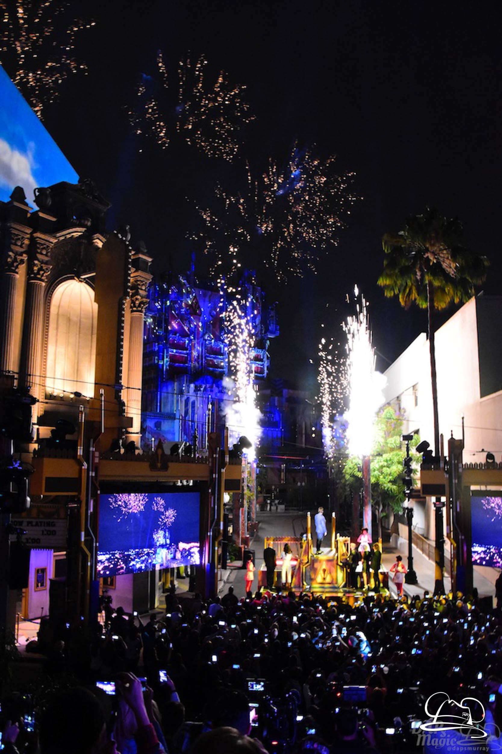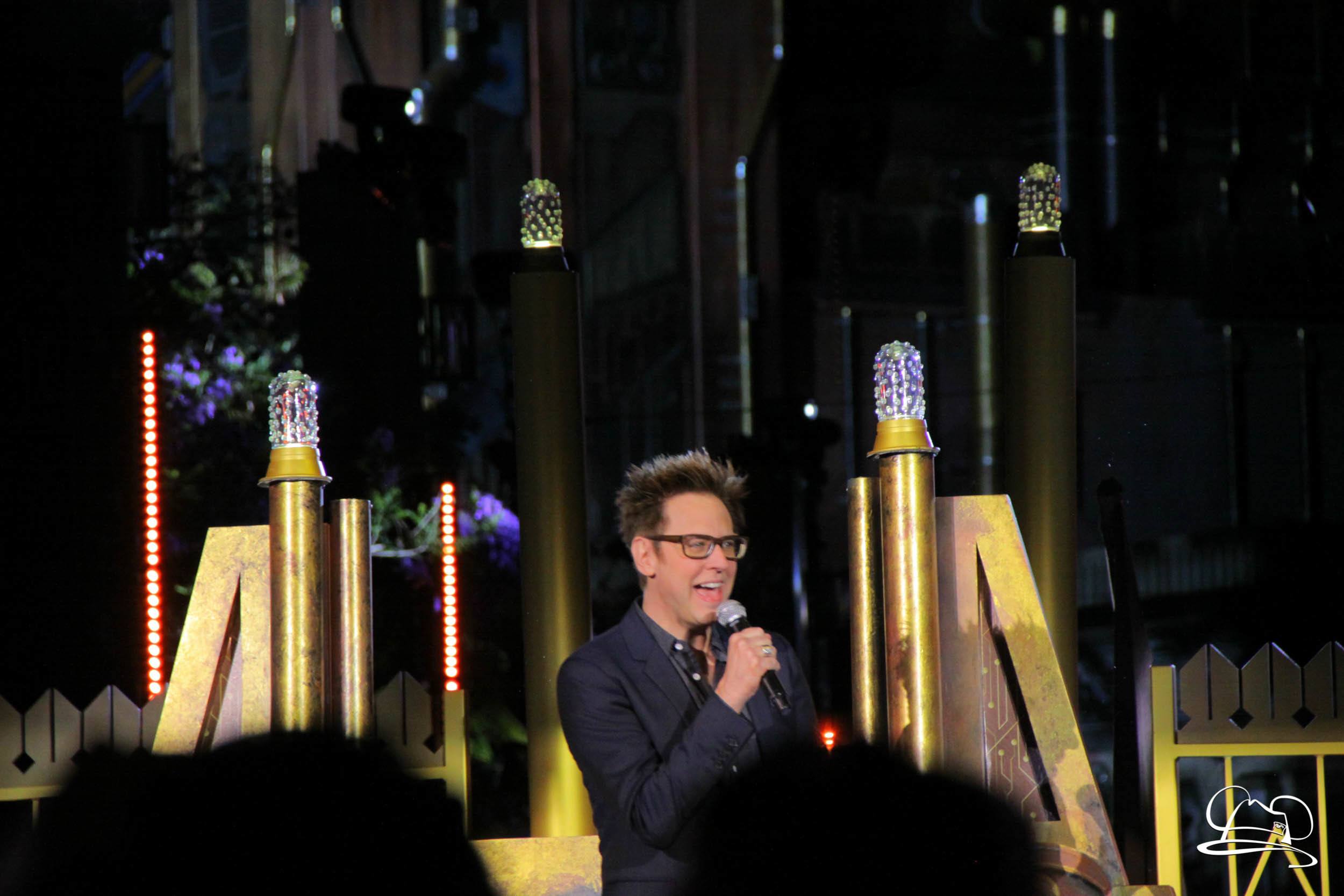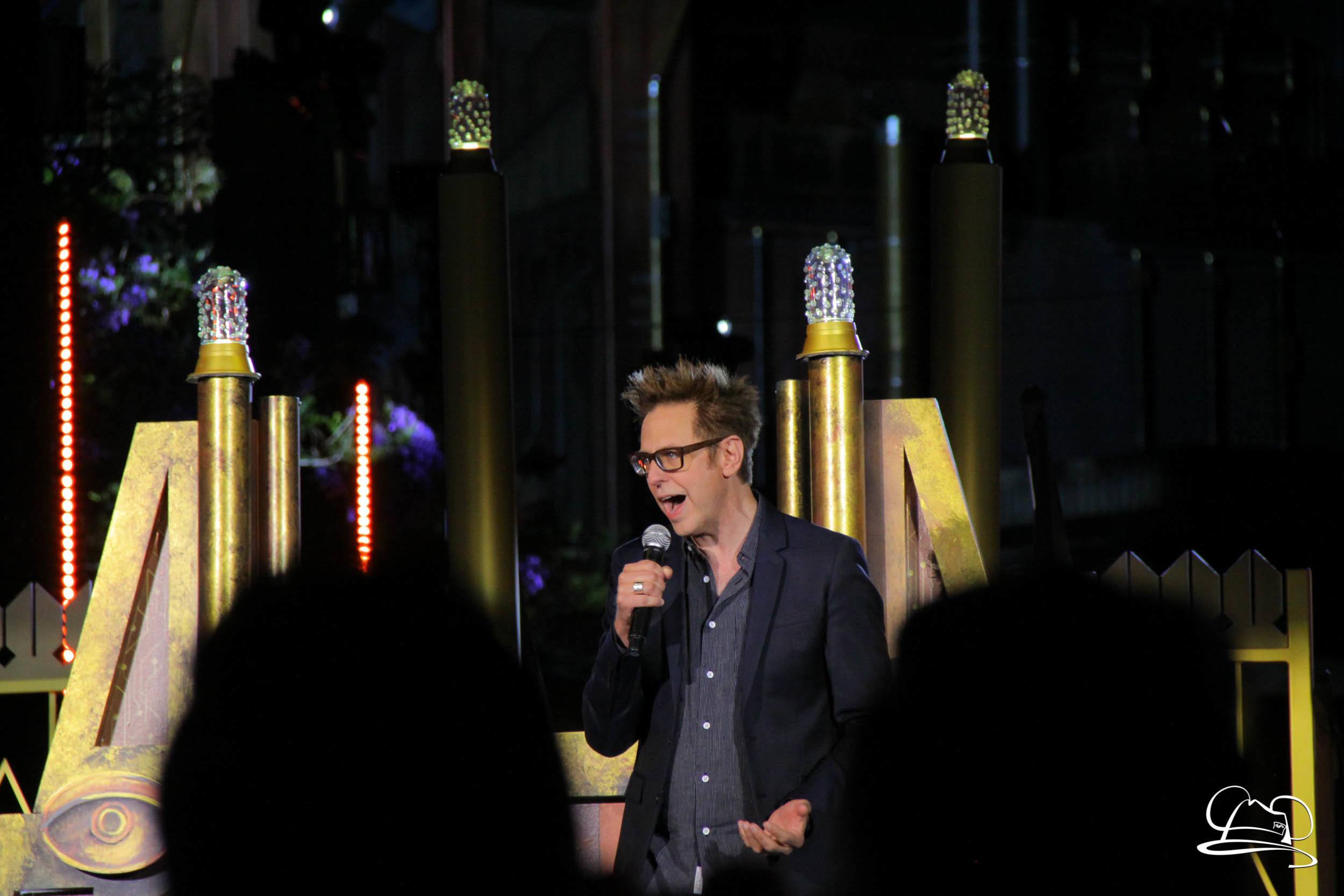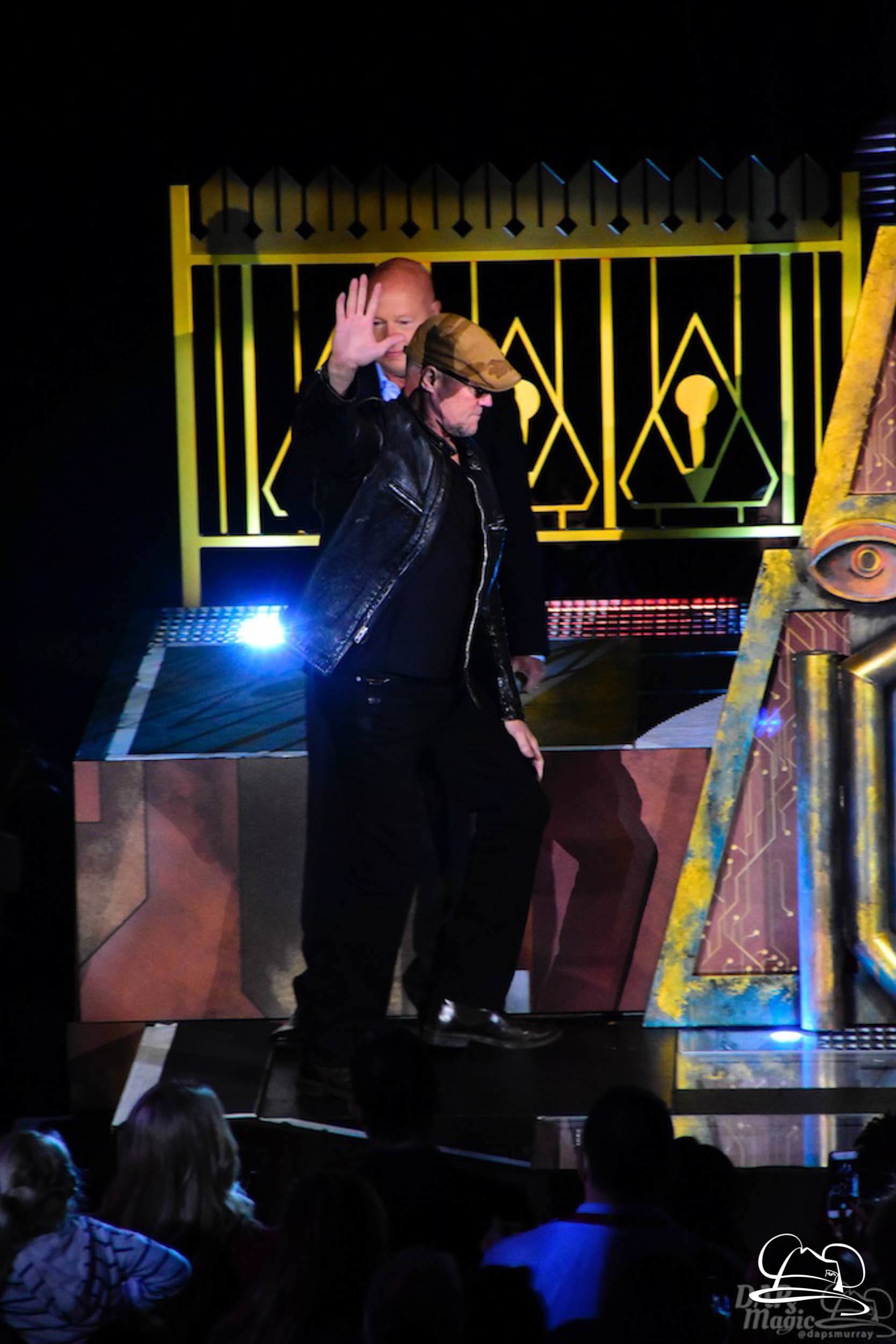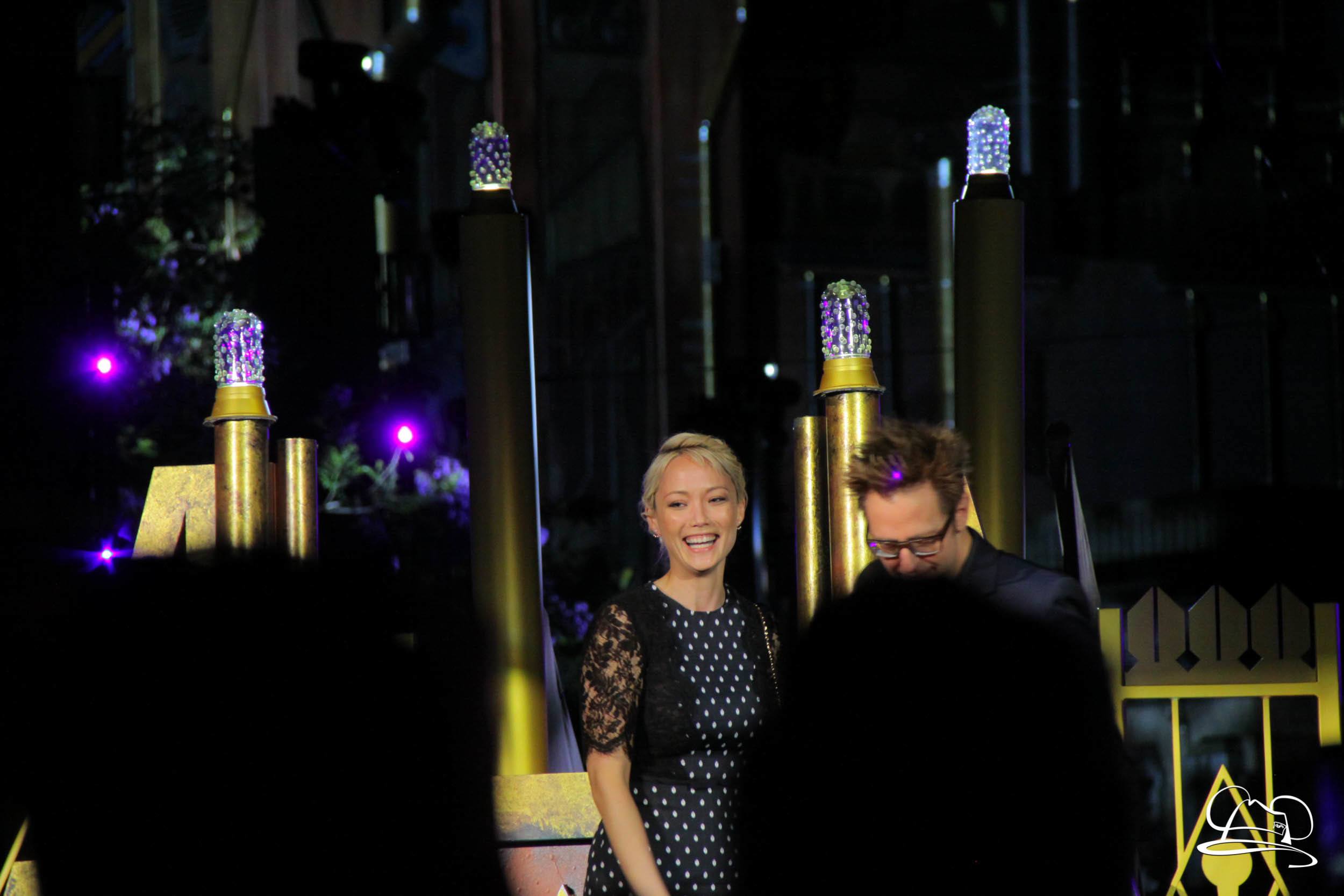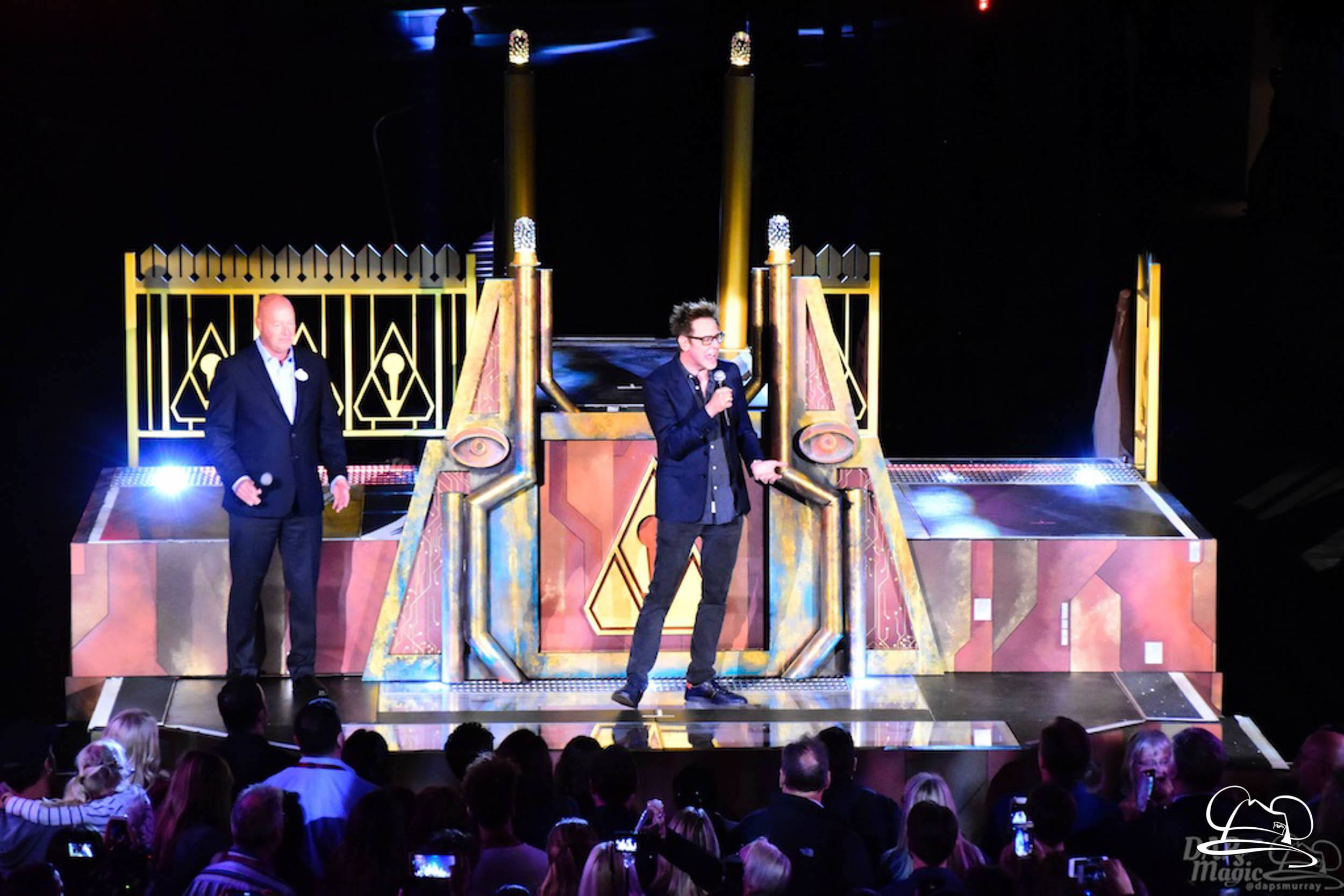 The Disneyland Resort kicked off the Summer of Heroes with a star studded event in Disney California Adventure. After a special party in Hollywood Backlots, a ceremony took place for the opening of the Tivan Collection by The Collector. Hosted by The Collector’s assistant(s), this event included Chairman of Disney Parks and Resorts Bob Chapek and Guardians of the Galaxy Vol. 1 and Vol. 2 director James Gunn. They were joined by Pom Klementieff who portrayed Mantis, Michael Rooker who portrayed Yondu, and Zoe Saldana who plays Gamora. Finally Benicio del Toro joined to take the place of The Collector. When The Collector’s assistant was worried about him taking The Collector’s place he quipped that he was sure The Collector would mind. Moments later the area erupted with lights, lasers, and pyrotechnics as Guardians of the Galaxy – Mission: BREAKOUT! was officially opened to the media and honored guests.
