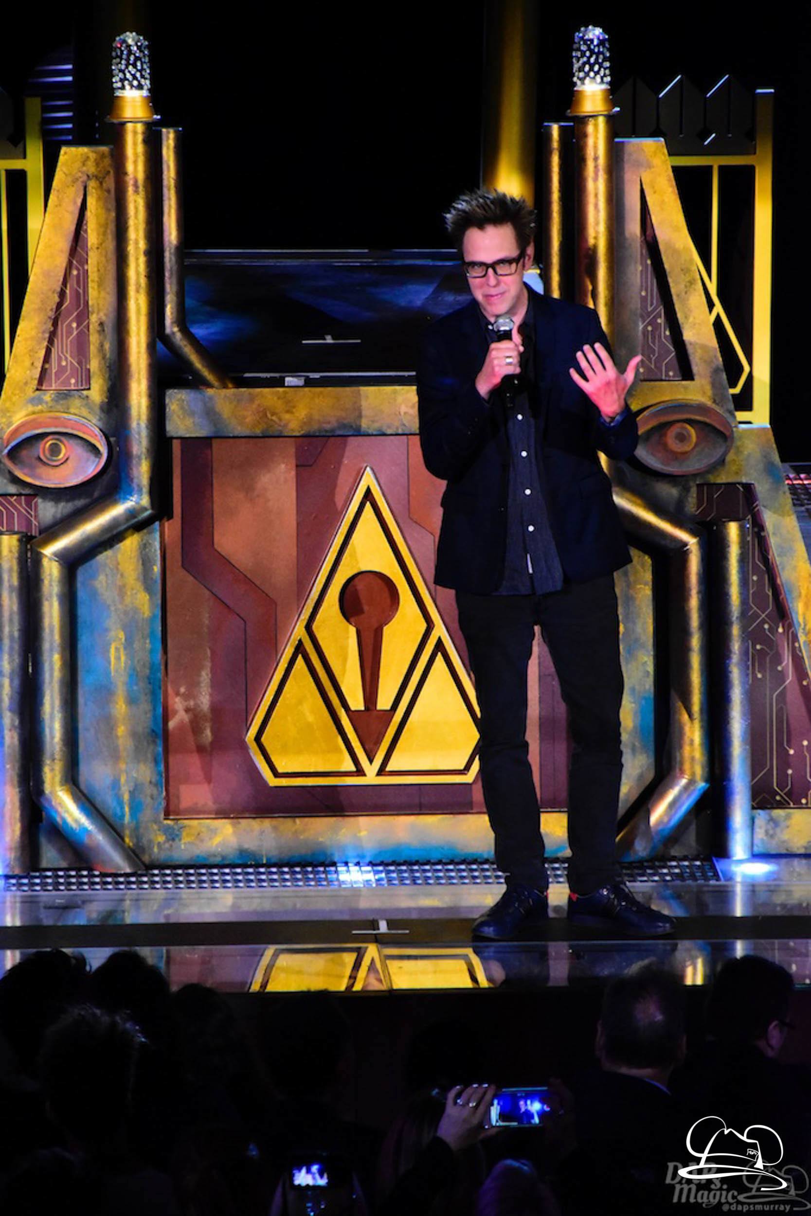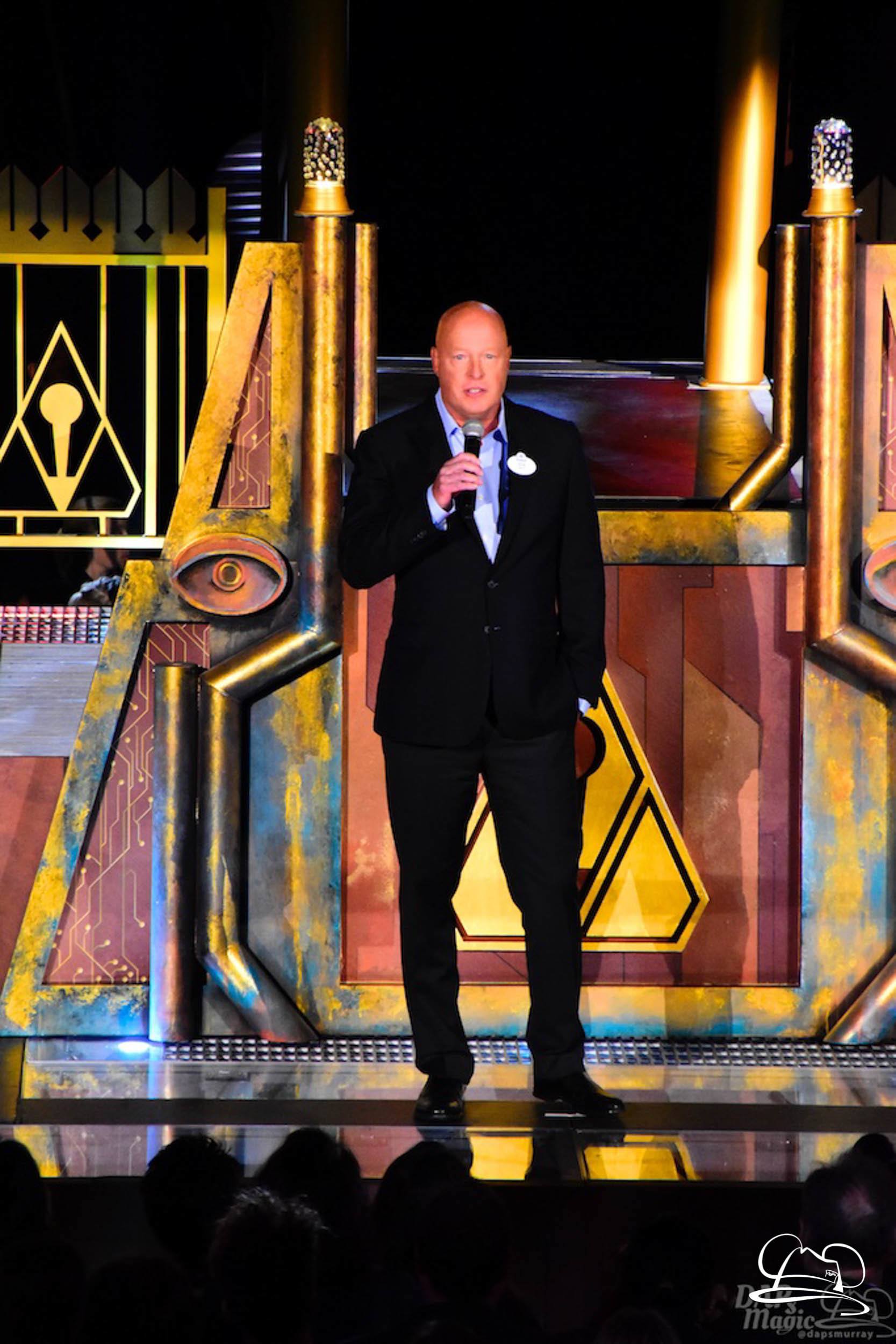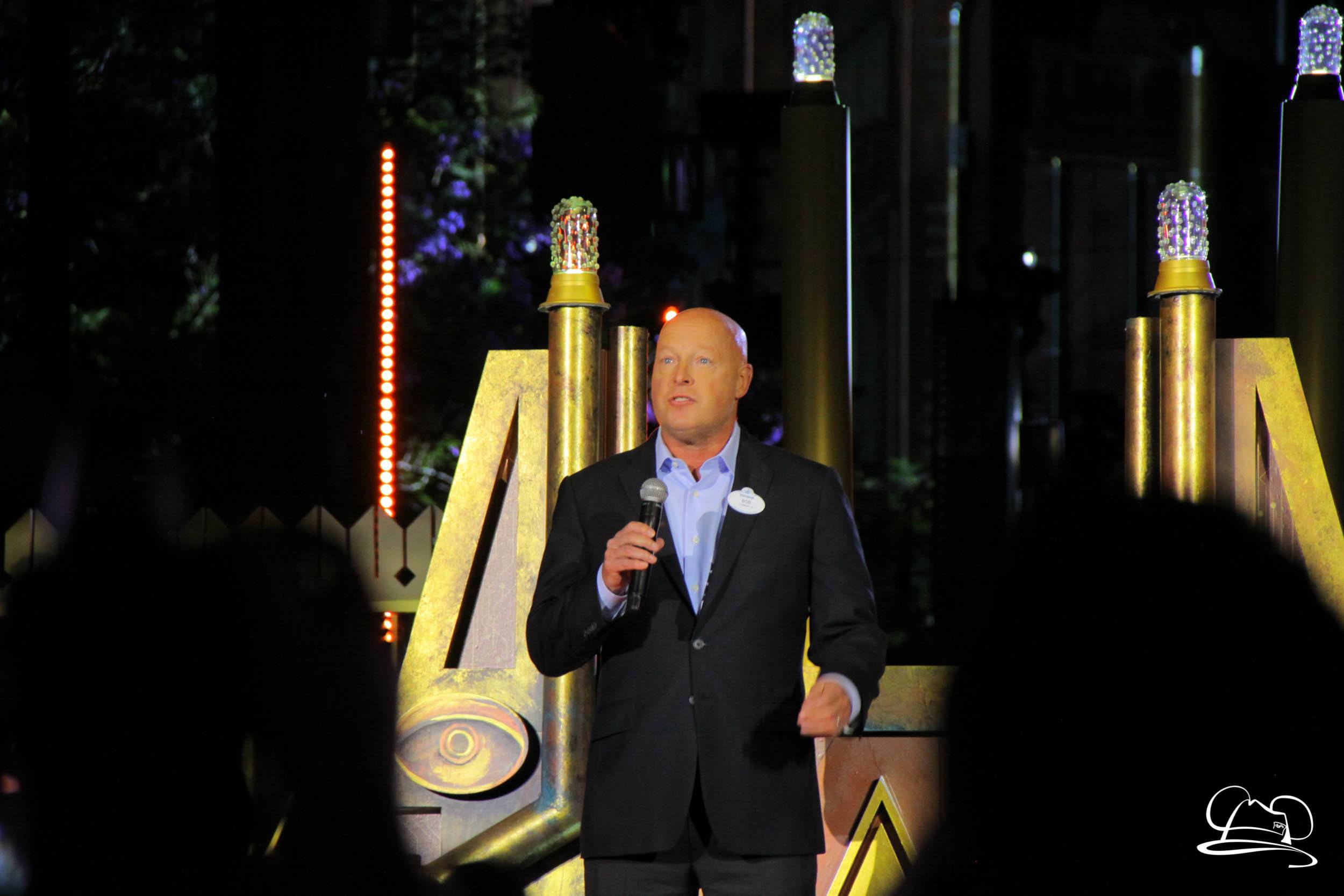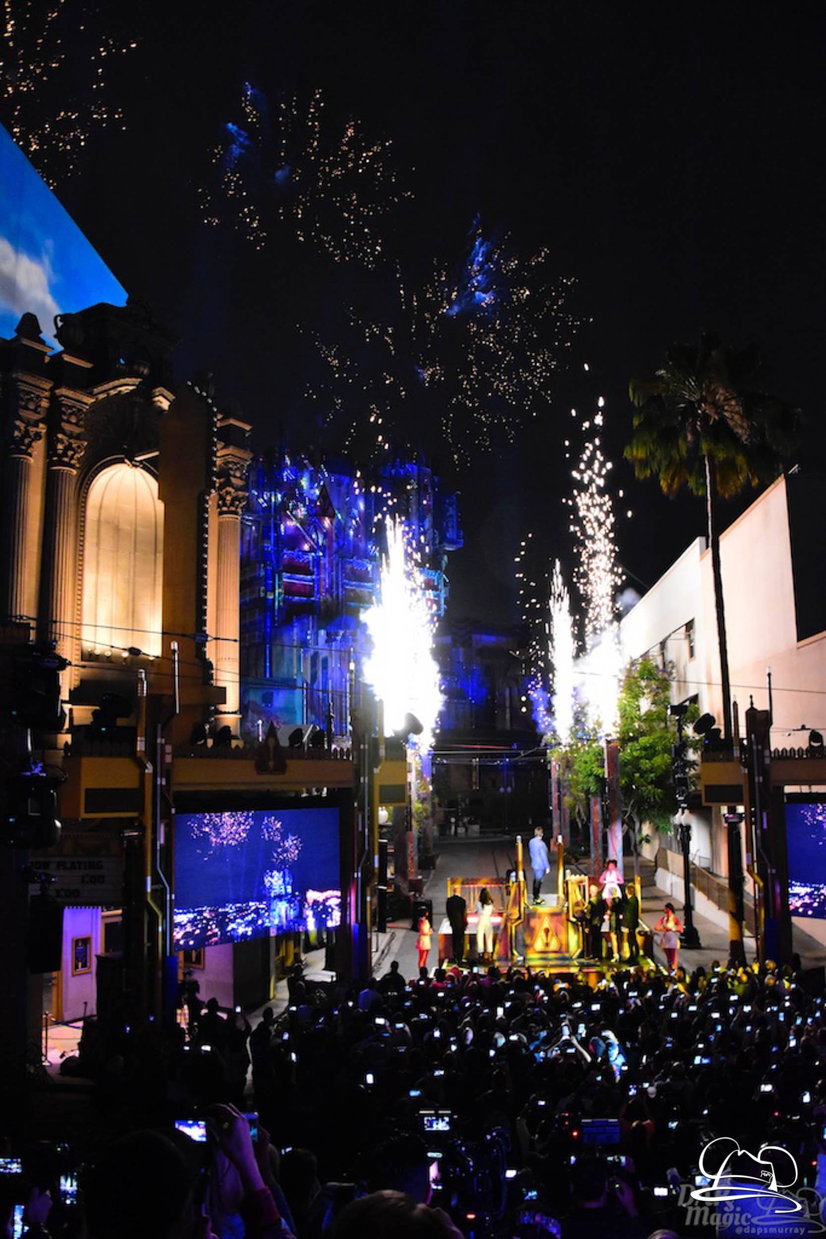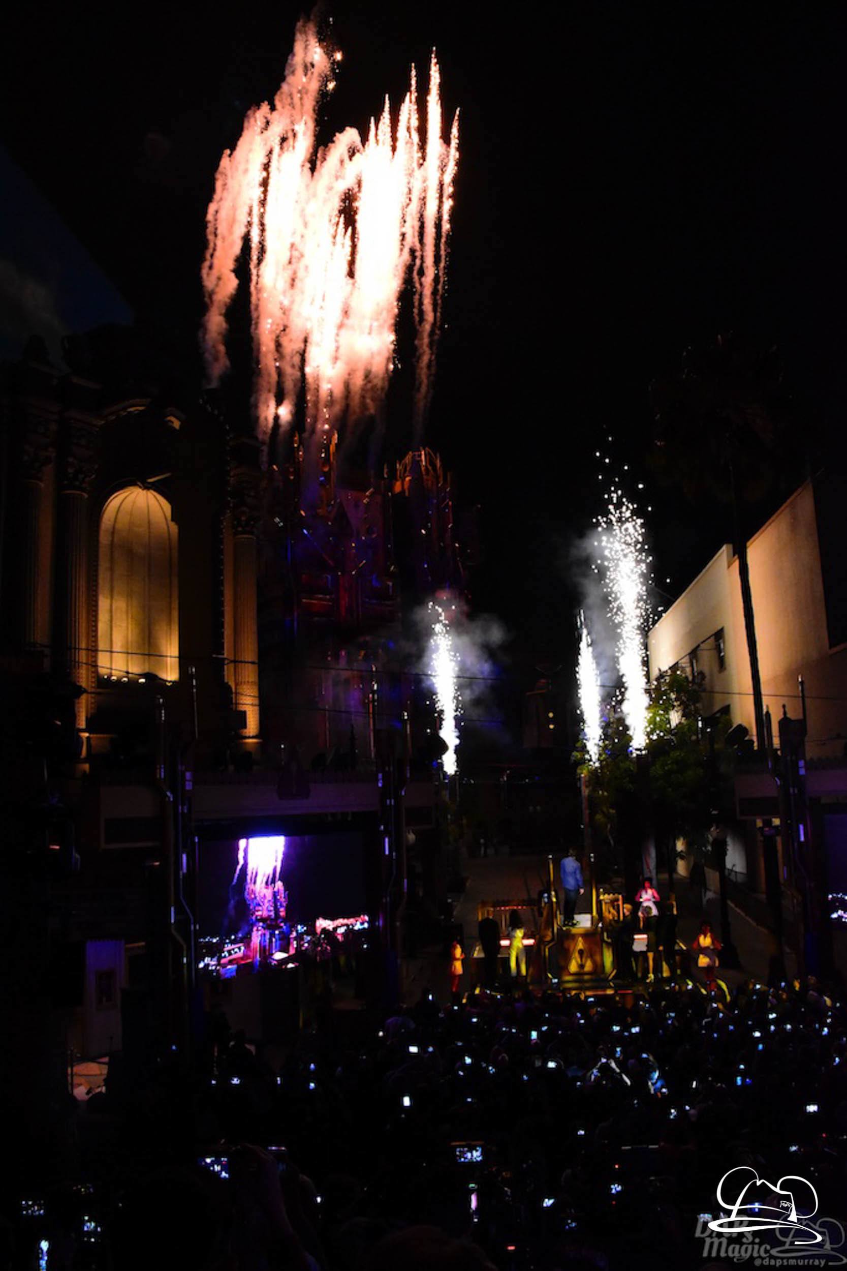 The Disneyland Resort kicked off the Summer of Heroes with a star studded event in Disney California Adventure. After a special party in Hollywood Backlots, a ceremony took place for the opening of the Tivan Collection by The Collector. Hosted by The Collector’s assistant(s), this event included Chairman of Disney Parks and Resorts Bob Chapek and Guardians of the Galaxy Vol. 1 and Vol. 2 director James Gunn. They were joined by Pom Klementieff who portrayed Mantis, Michael Rooker who portrayed Yondu, and Zoe Saldana who plays Gamora. Finally Benicio del Toro joined to take the place of The Collector. When The Collector’s assistant was worried about him taking The Collector’s place he quipped that he was sure The Collector would mind. Moments later the area erupted with lights, lasers, and pyrotechnics as Guardians of the Galaxy – Mission: BREAKOUT! was officially opened to the media and honored guests.
