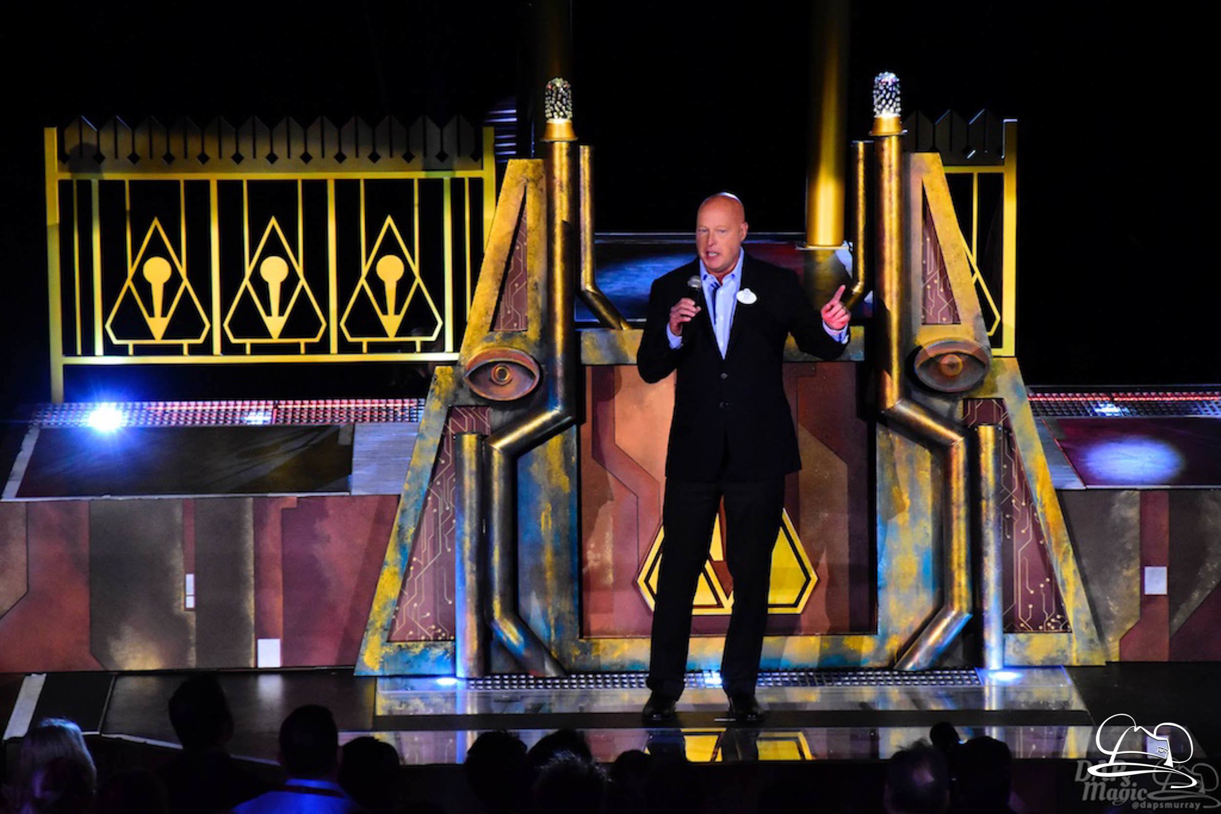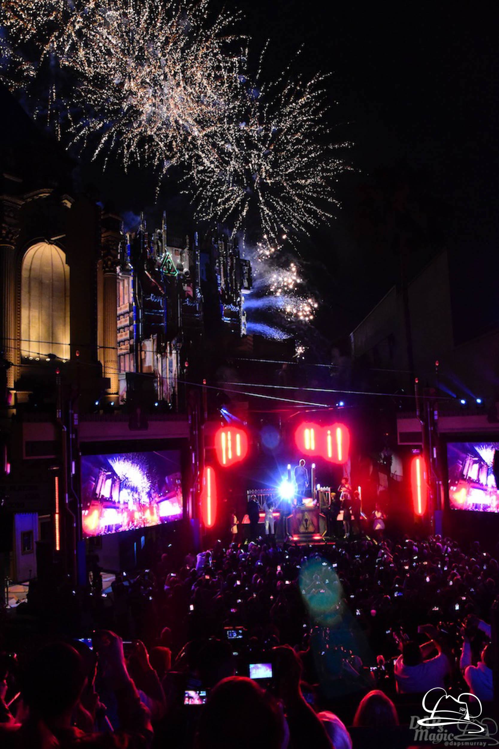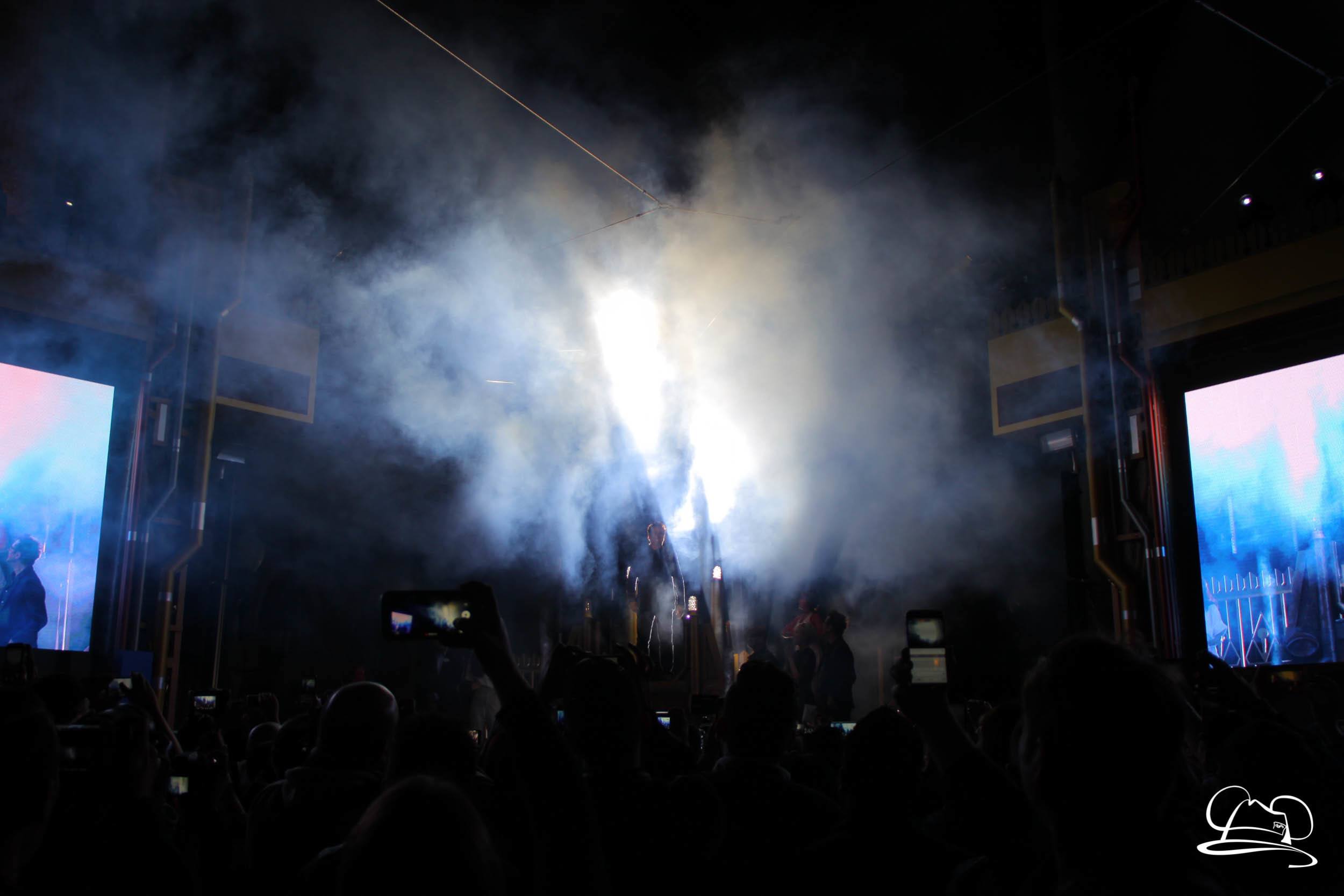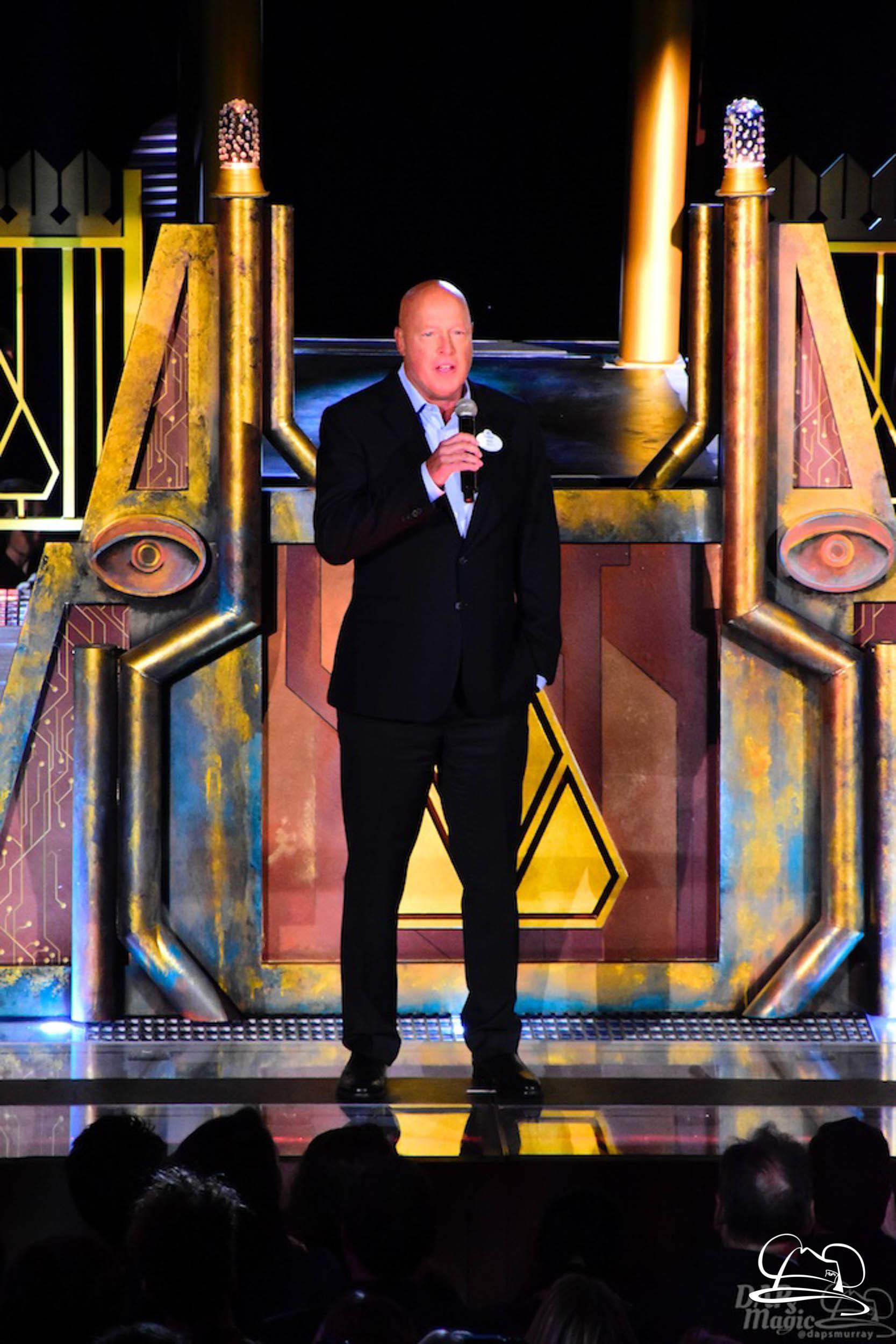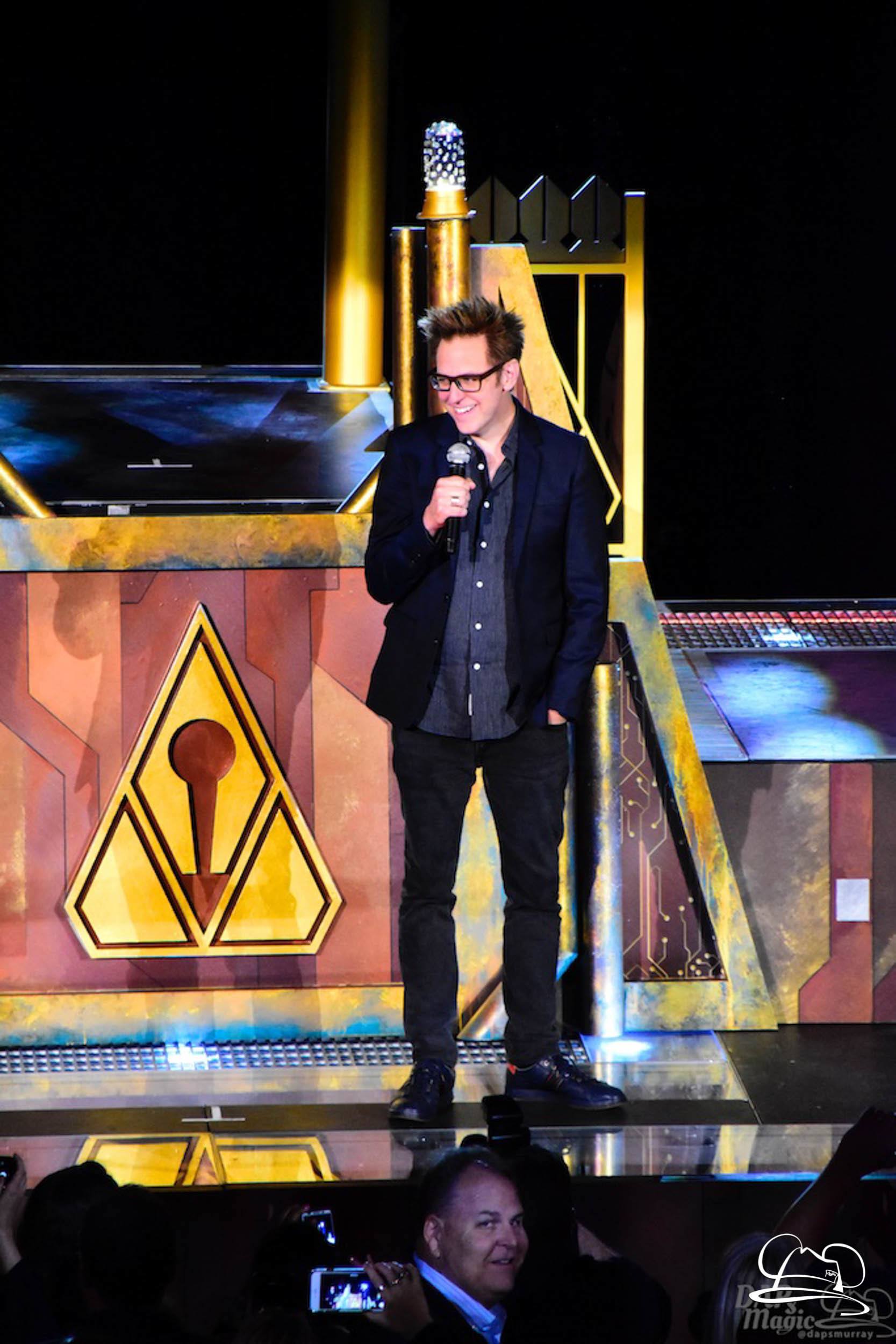 The Disneyland Resort kicked off the Summer of Heroes with a star studded event in Disney California Adventure. After a special party in Hollywood Backlots, a ceremony took place for the opening of the Tivan Collection by The Collector. Hosted by The Collector’s assistant(s), this event included Chairman of Disney Parks and Resorts Bob Chapek and Guardians of the Galaxy Vol. 1 and Vol. 2 director James Gunn. They were joined by Pom Klementieff who portrayed Mantis, Michael Rooker who portrayed Yondu, and Zoe Saldana who plays Gamora. Finally Benicio del Toro joined to take the place of The Collector. When The Collector’s assistant was worried about him taking The Collector’s place he quipped that he was sure The Collector would mind. Moments later the area erupted with lights, lasers, and pyrotechnics as Guardians of the Galaxy – Mission: BREAKOUT! was officially opened to the media and honored guests.