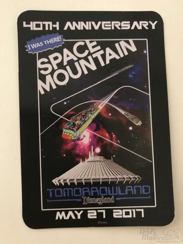 On Saturday, Disneyland celebrated the 40th anniversary of Space Mountain with a special card handed out at the attraction. In Star Traders and Disneyana special “I Was There” shirts were for sale. Blue shirts were available for the general public while red Annual Passholder shirts were just for AP’s.