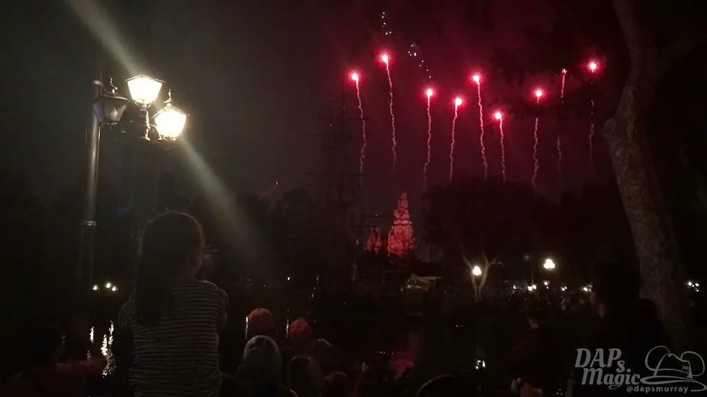 A great place to watch the fireworks away from the crowded castle viewing is over at Rivers of America. Not only is it a great setting for an American fireworks display, but there aren’t as many people there. Mist projections illustrate the fireworks like what you would have over at Sleeping Beauty Castle. And, you can still see all the fireworks.