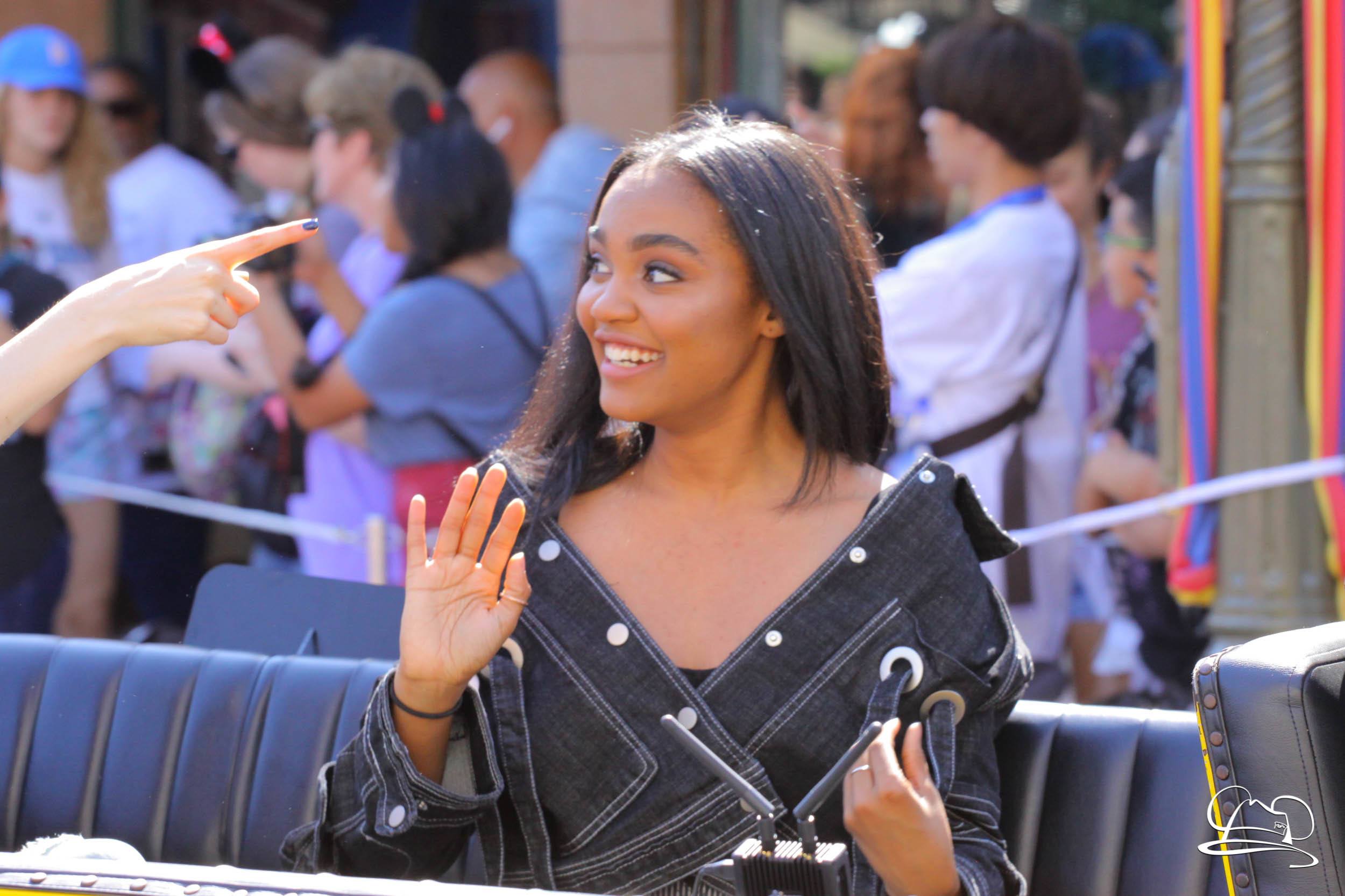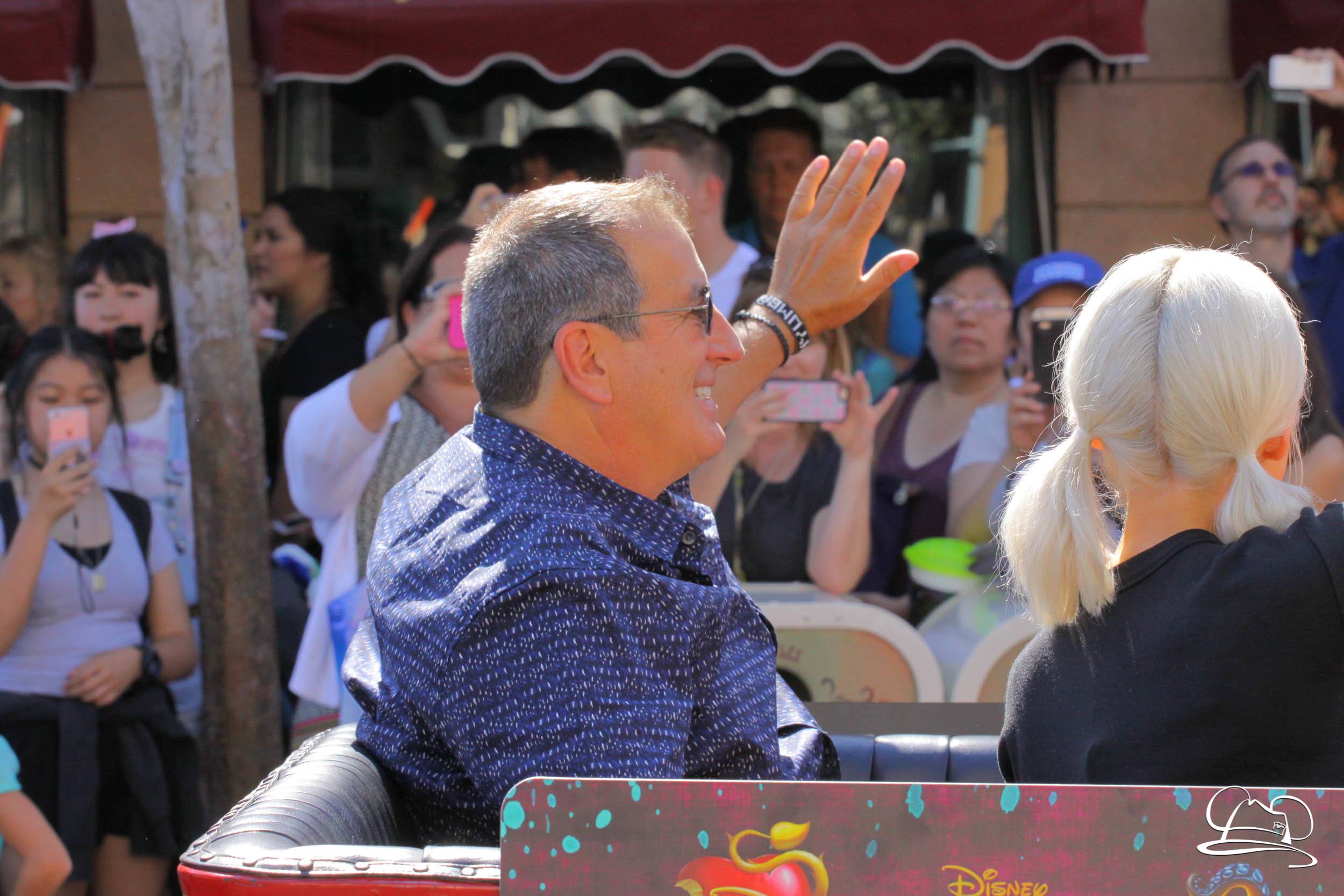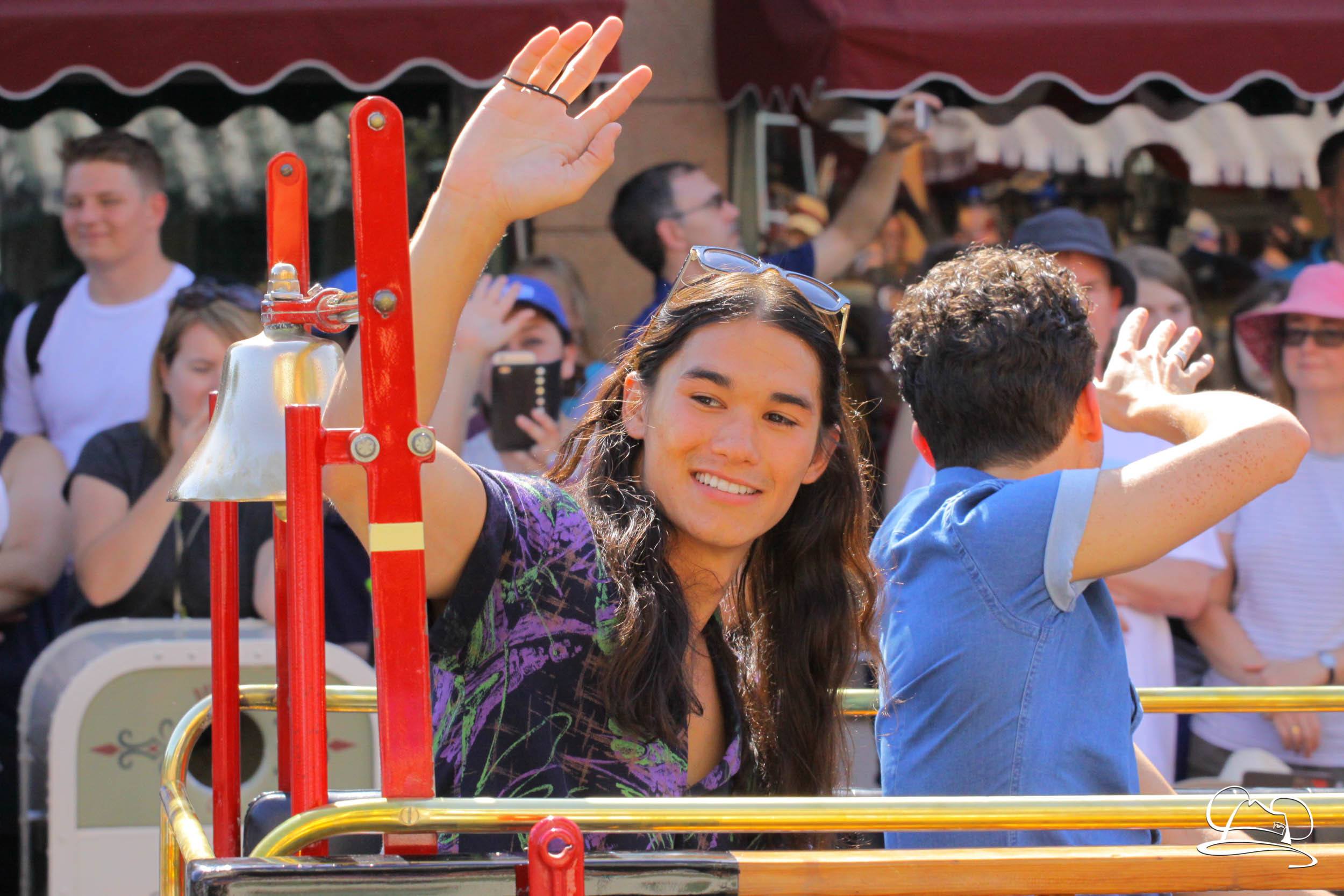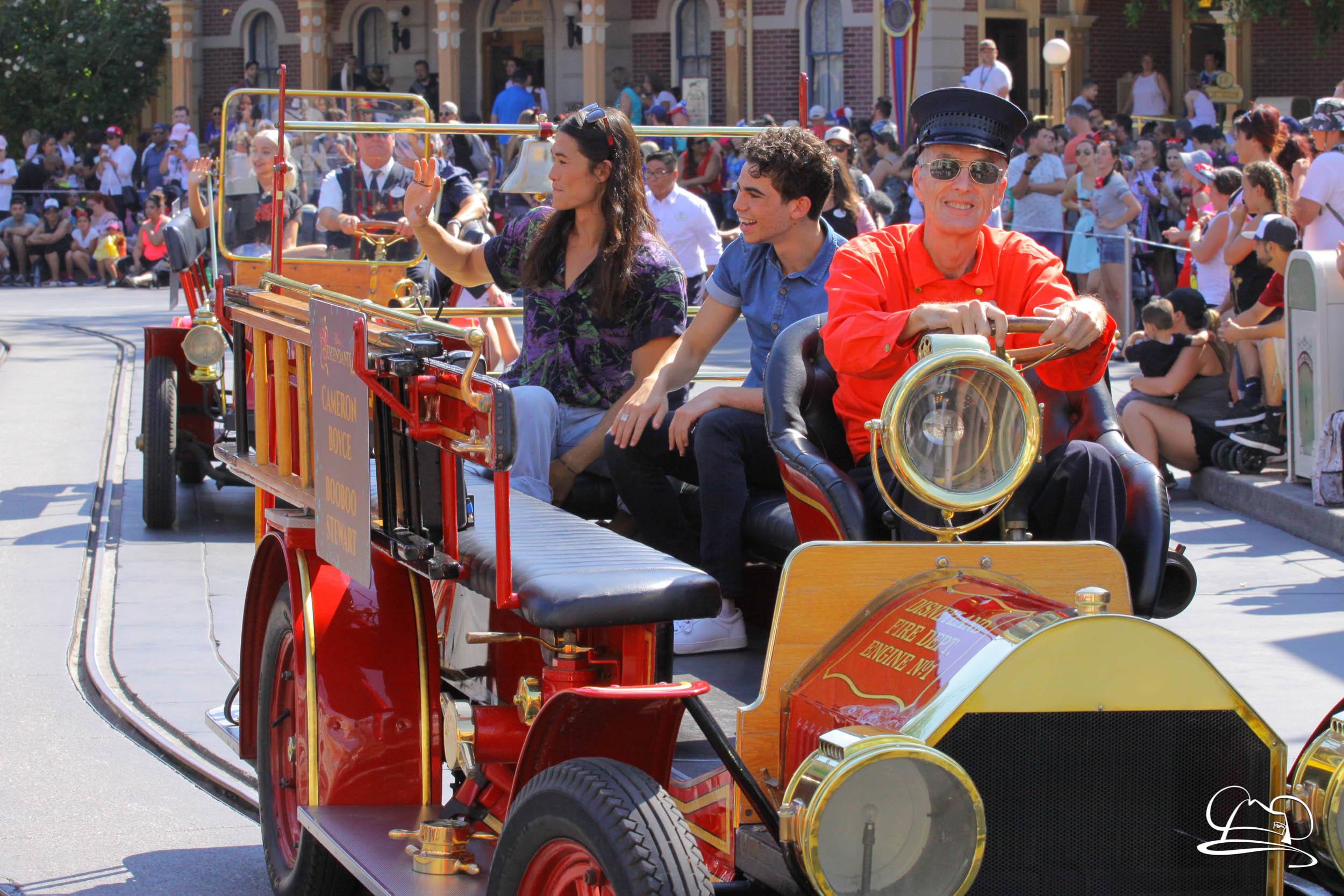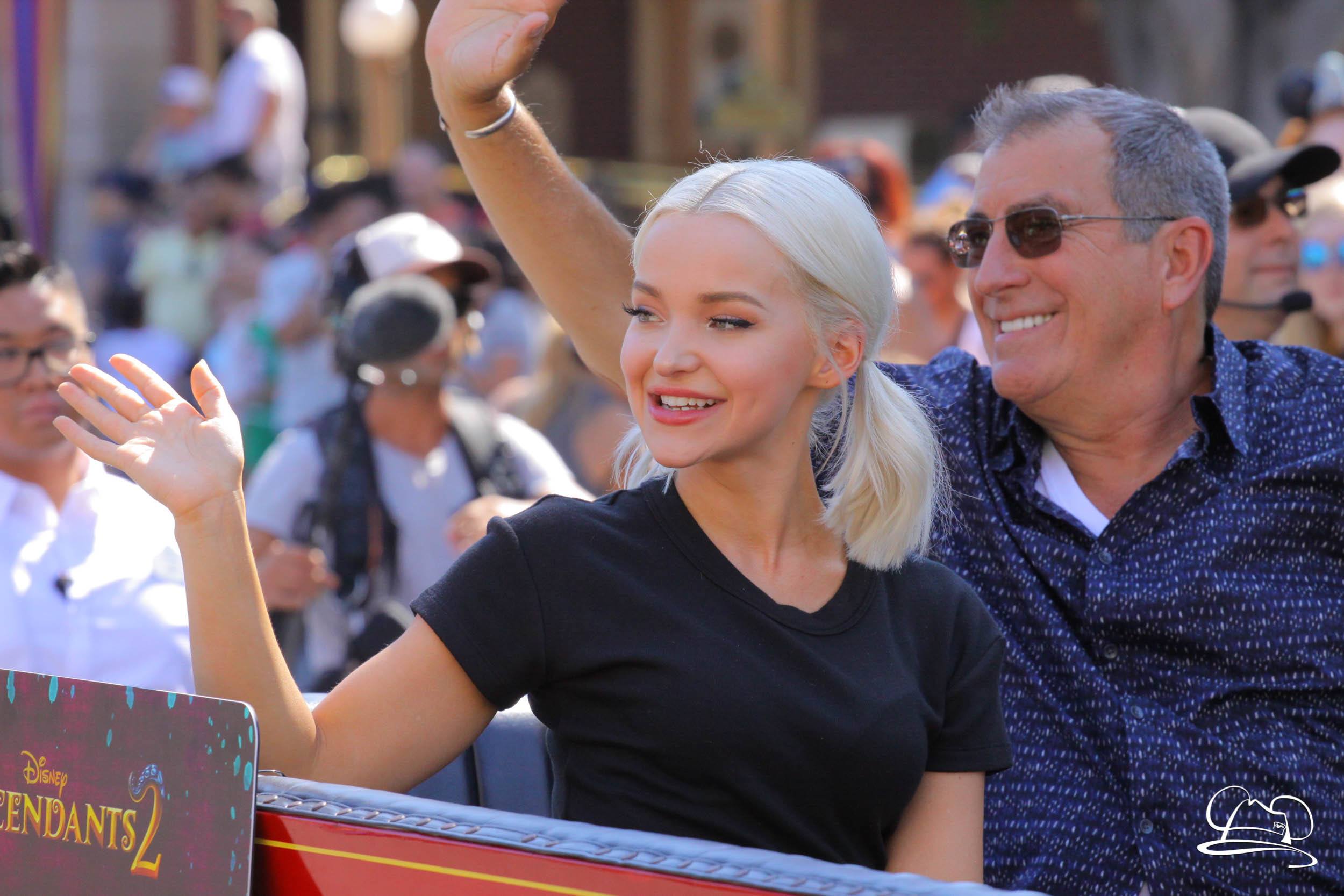 Today the cast of Disney Descendants 2 came to Disneyland. They were a part of the pre-parade before Mickey’s Soundsational Parade. With music from the movie and screams from fans, the stars made their way up the route. Mal (Dove Cameron), Evie (Sofia Carson), Carlos (Cameron Boyce), Jay (Booboo Stewart) and Uma (China Anne McClain), along with Emmy Award-winning director Kenny Ortega were the Grand Marshals for the pre-parade.