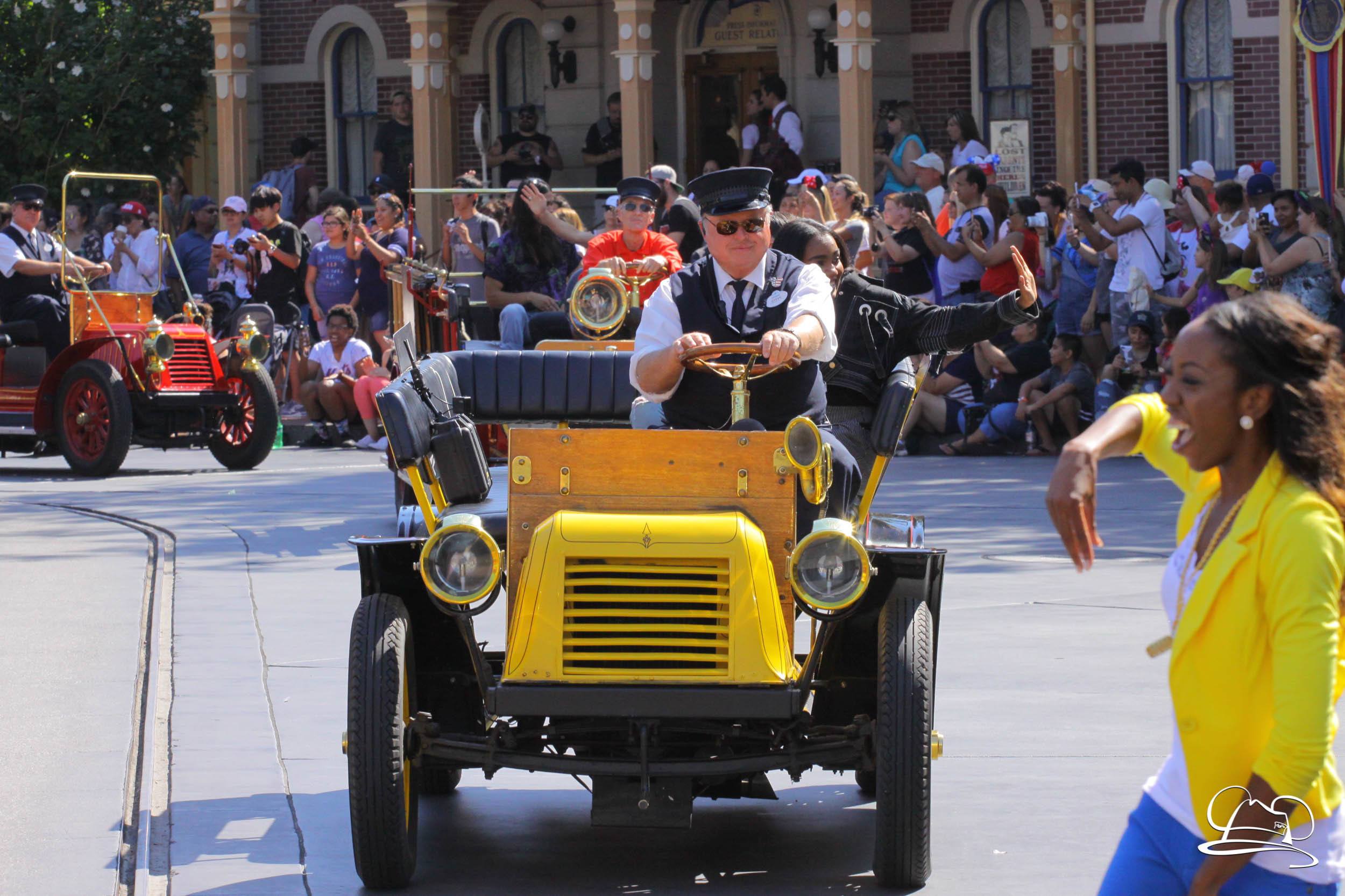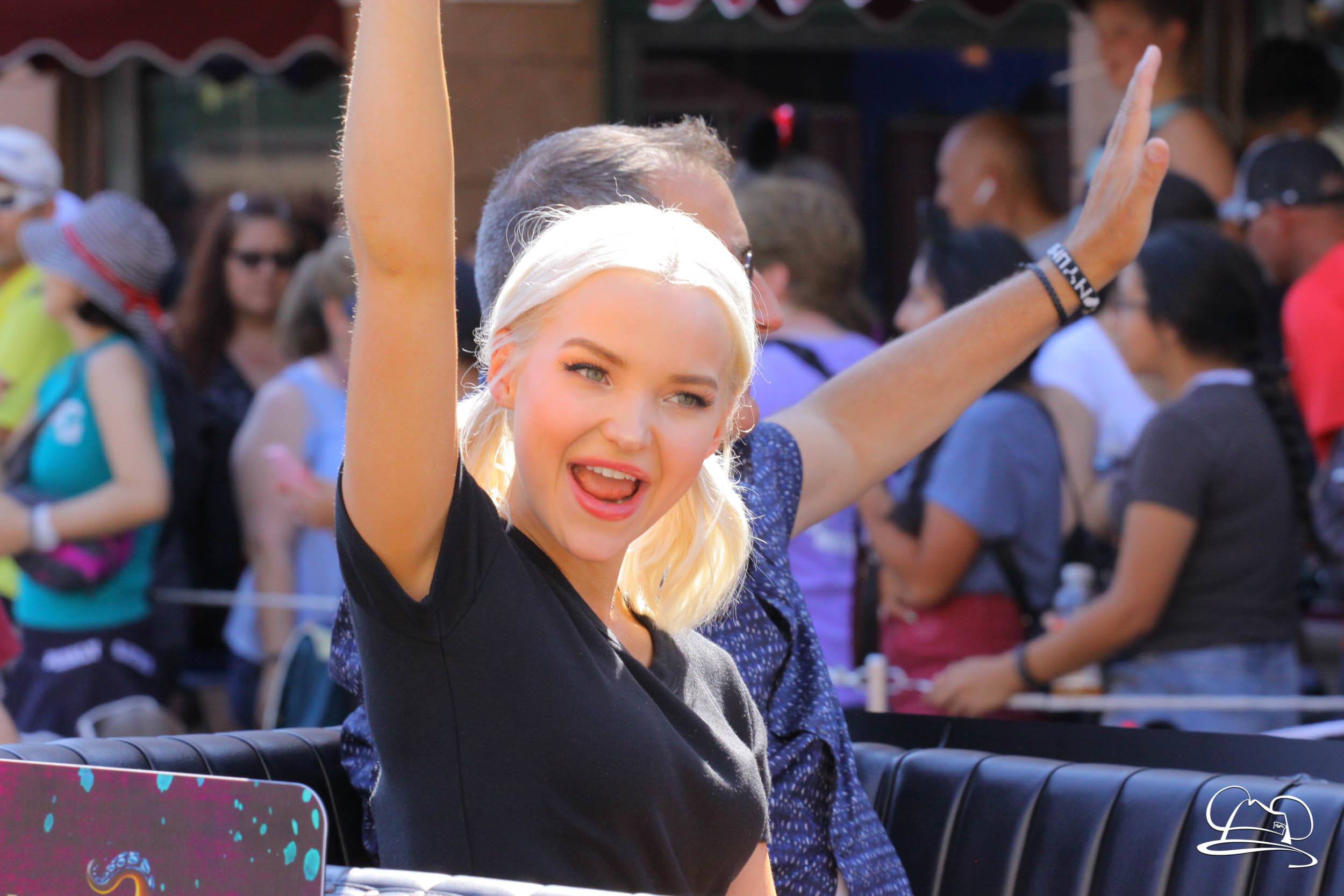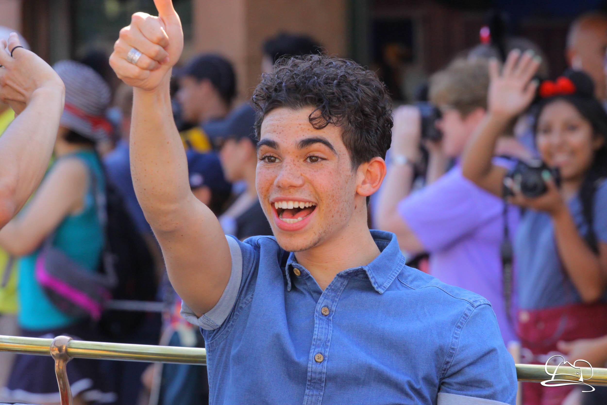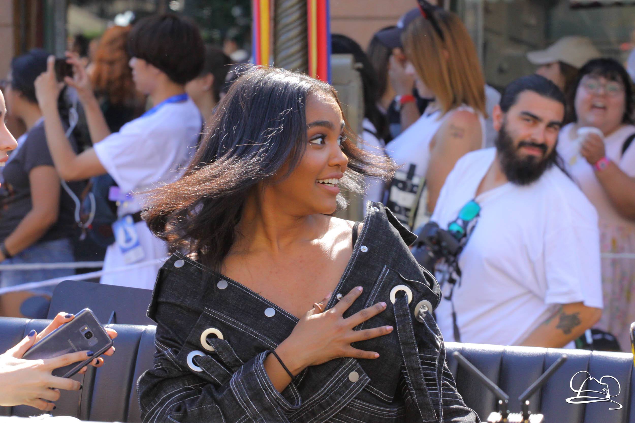 Today the cast of Disney Descendants 2 came to Disneyland. They were a part of the pre-parade before Mickey’s Soundsational Parade. With music from the movie and screams from fans, the stars made their way up the route. Mal (Dove Cameron), Evie (Sofia Carson), Carlos (Cameron Boyce), Jay (Booboo Stewart) and Uma (China Anne McClain), along with Emmy Award-winning director Kenny Ortega were the Grand Marshals for the pre-parade.