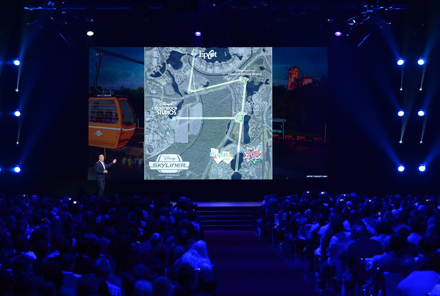 In addition, Chapek announced that a whole new transportation system of gondolas is planned, called the Disney Skyliner, to give guests a never-before-seen birds-eye view of Walt Disney World and connect the new Disney Vacation Club property, Disney’s Art of Animation, Pop Century and Caribbean Beach resorts with Disney’s Hollywood Studios and the International Gateway at Epcot.