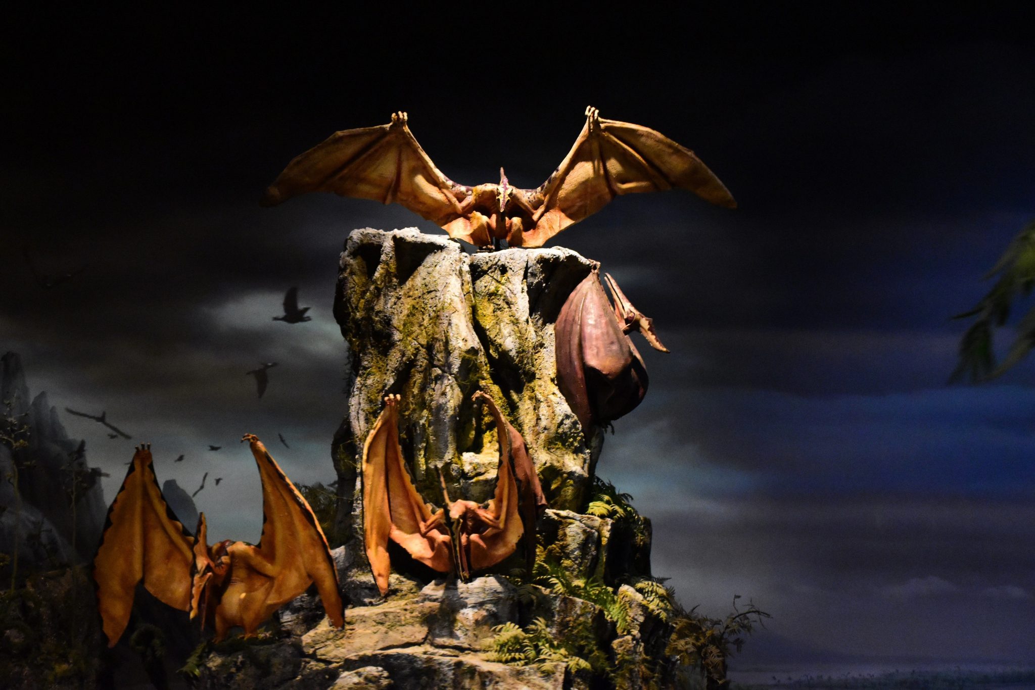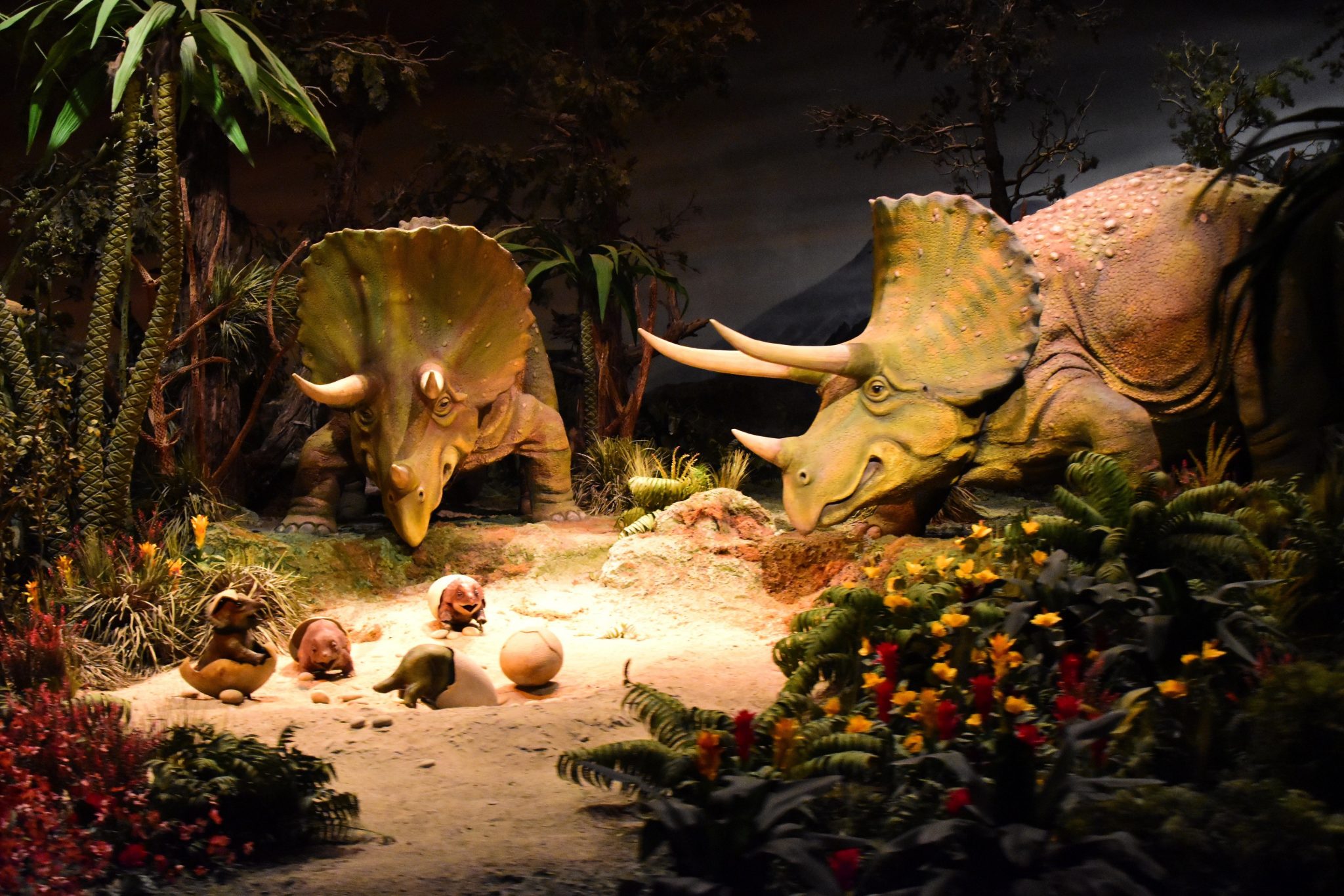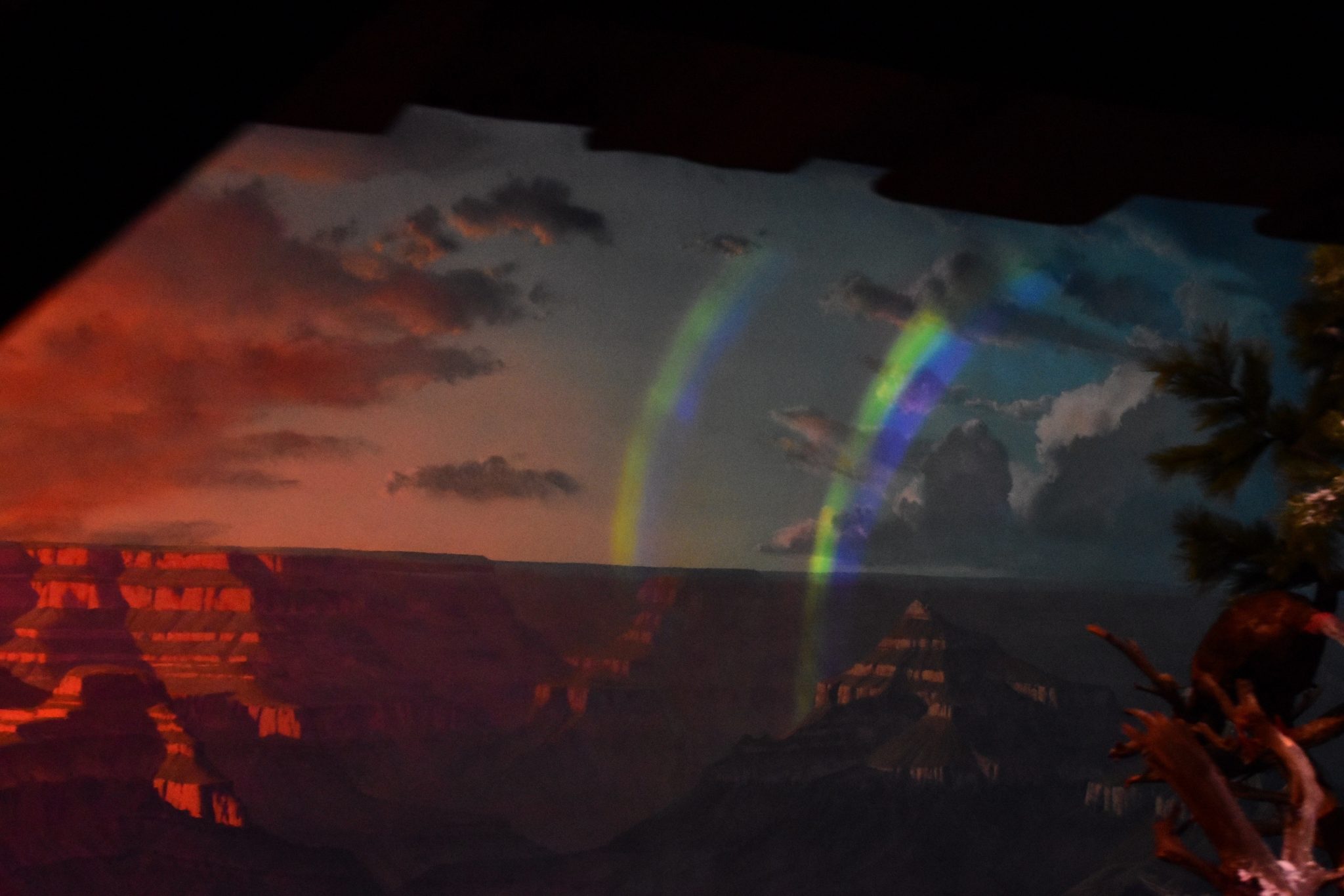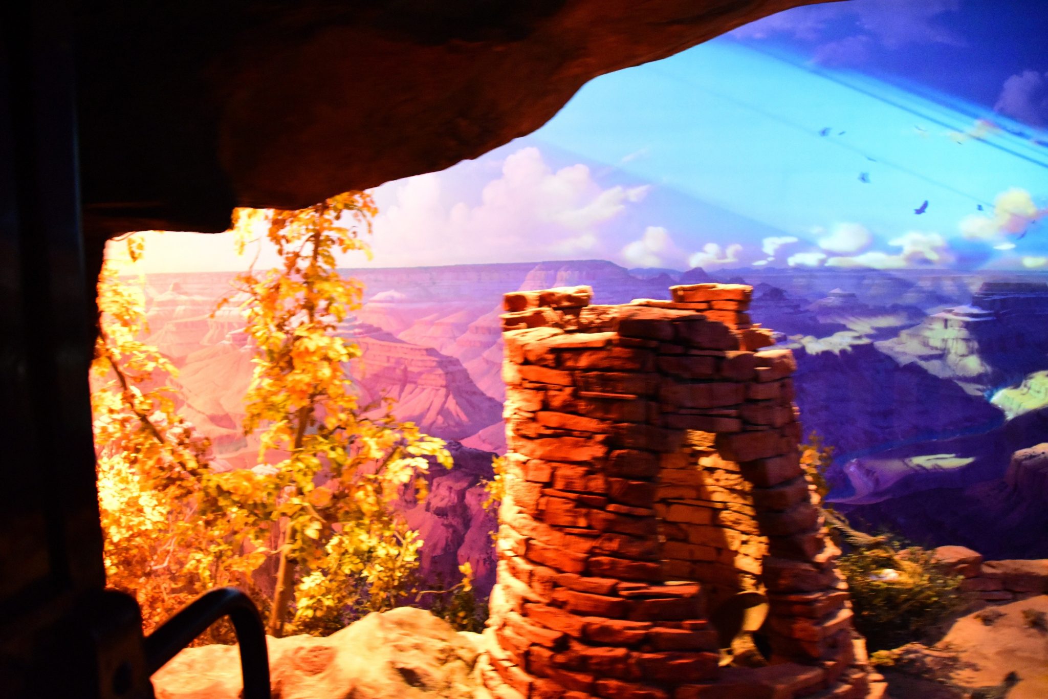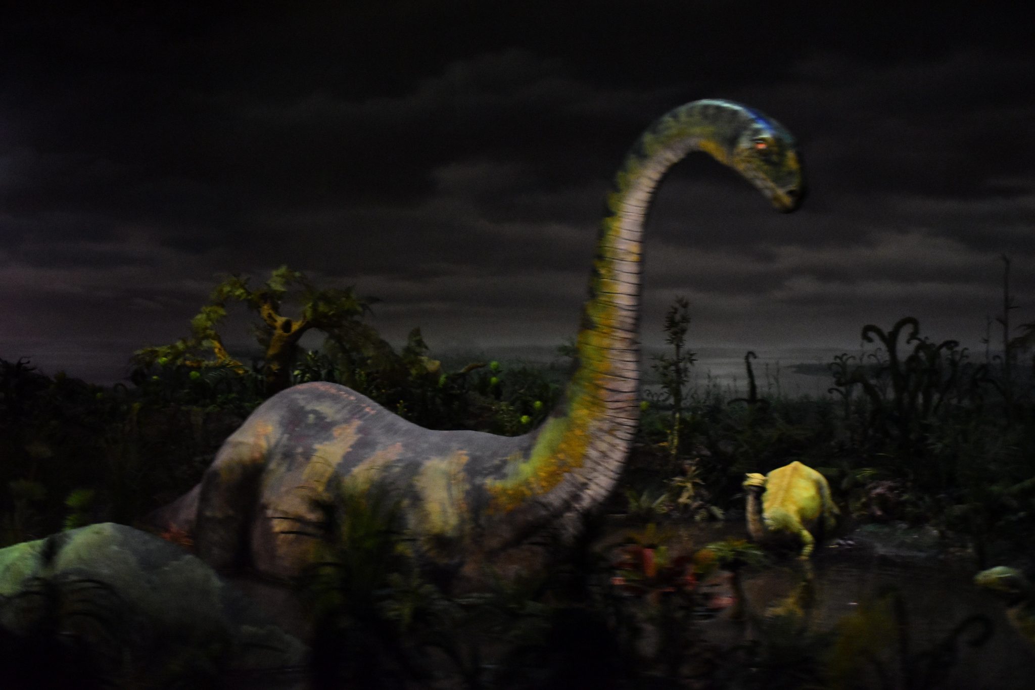 The Grand Canyon Diroama and Primeval World isn’t much different either. But, there are some added effects to make it more fun. Projections convey lightning in the Grand Canyon, and also a spark of fire there too. Double rainbows are seen after it. The Primeval World has some projections as well, which are most seen behind pterodactyls and a volcano behind the T-Rex and Stegasaurus.