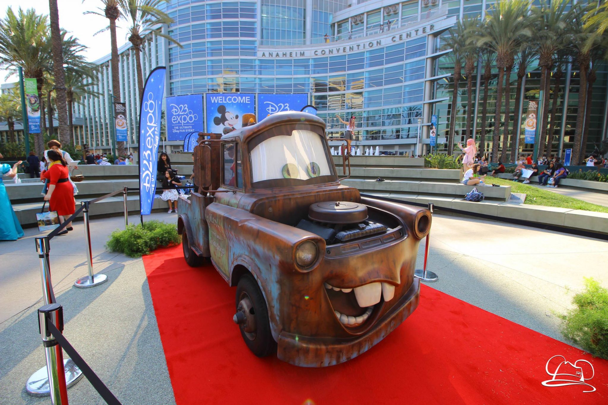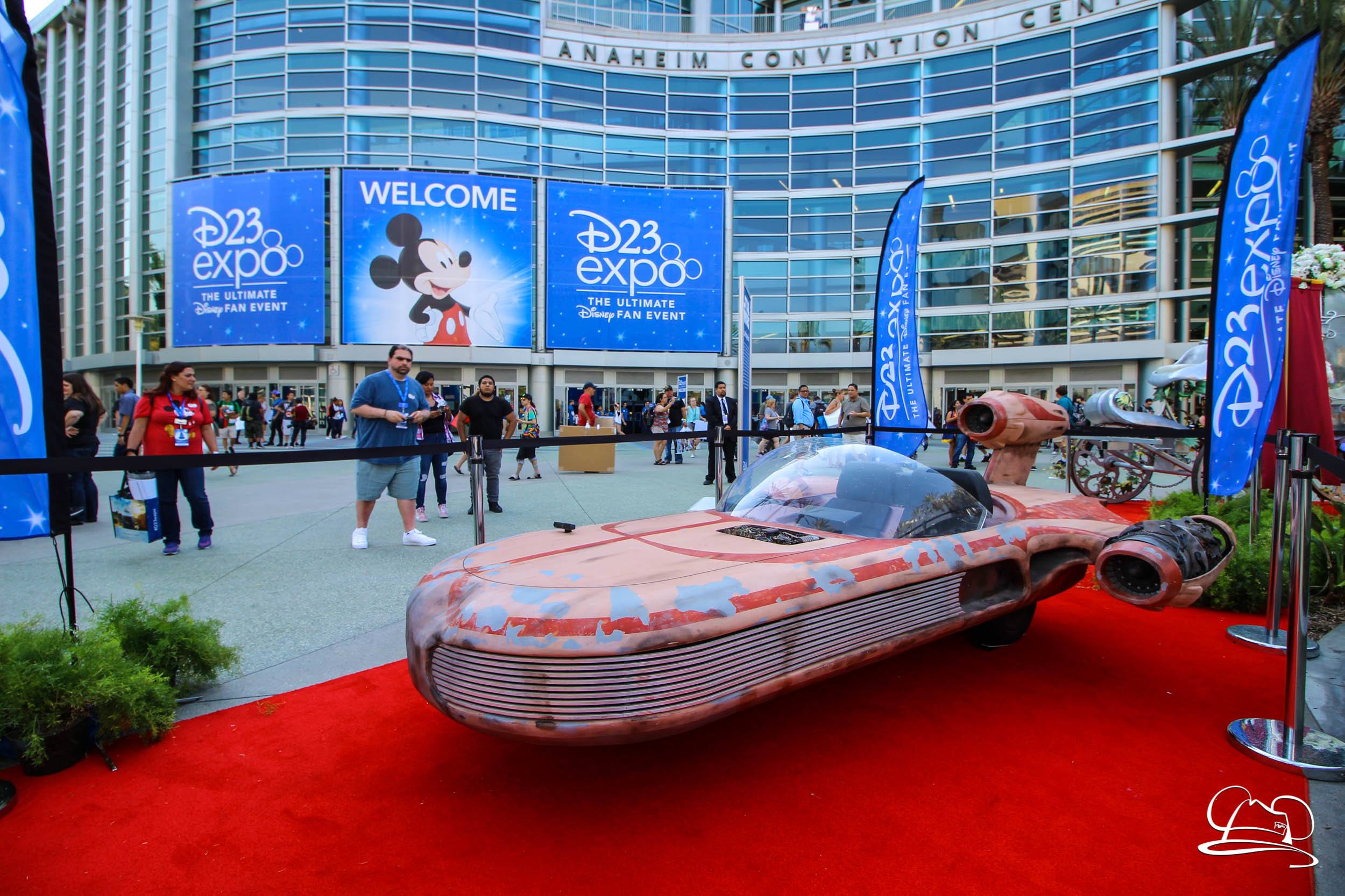 The D23 Expo began today and it promises to be full of magic, surprises, and memories for those in attendance. Walking up to the Anaheim Convention Center, several different vehicles could be seen. Agents of S.H.I.E.L.D. fans could see Agent Coulson’s Lola and the Ghost Rider’s car. Move up a bit further and Mater was found greeting fans. There was plenty of opportunities to take pictures of him and the fountains with the D23 Expo signage. On the other side of the fountain Luke Skywalkers sand speeder could be found along with Cinderella’s carriage. Many cosplayers milled about taking pictures in the area throughout the day.