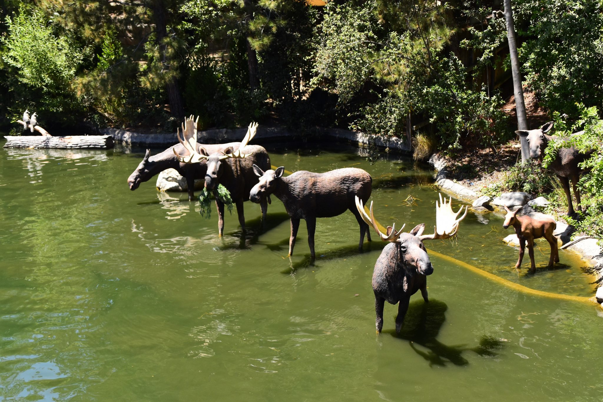 Animals appear both in the water and right by the banks. They sit among trees and small hills. It makes for an even more wilderness feel.