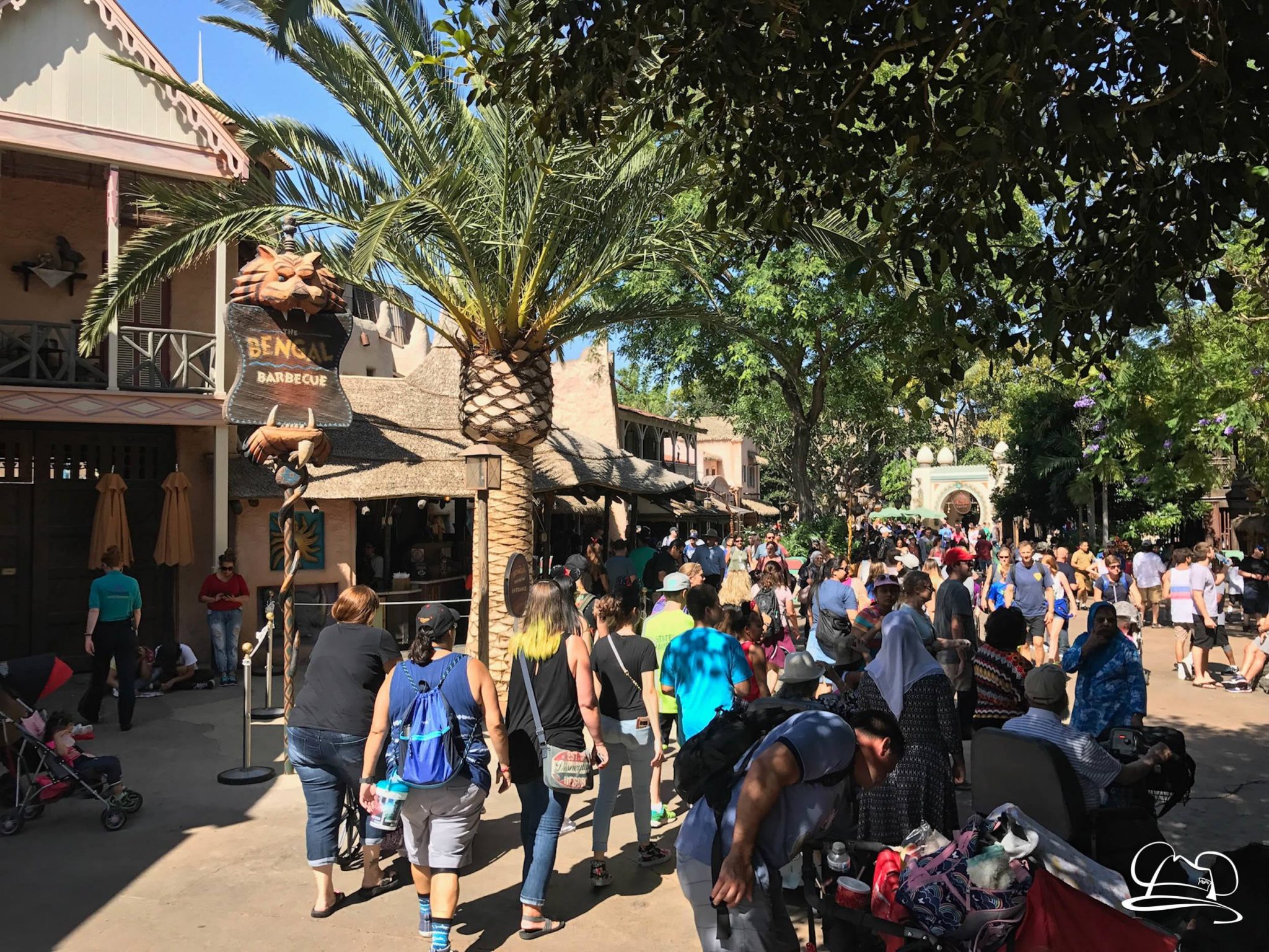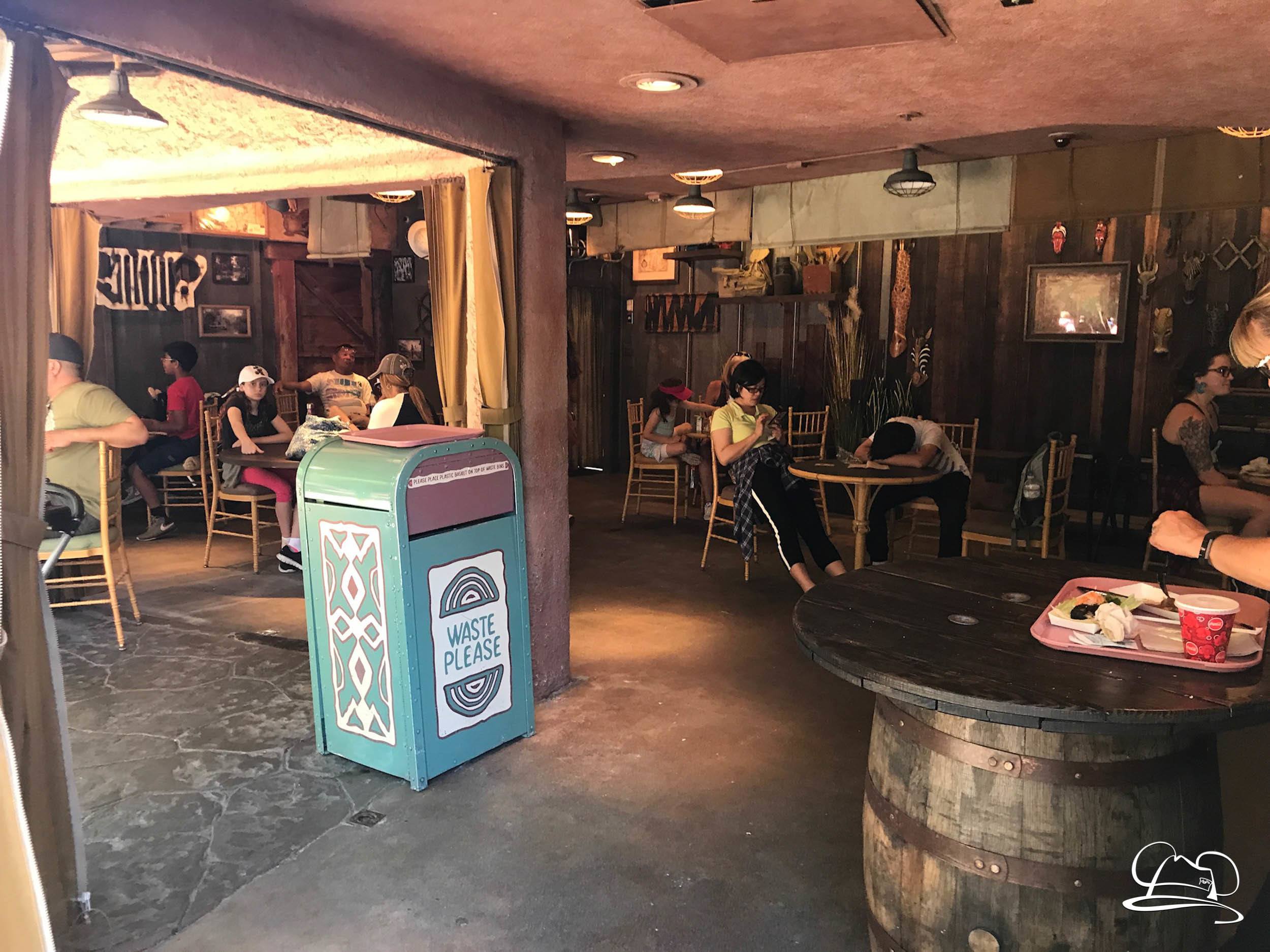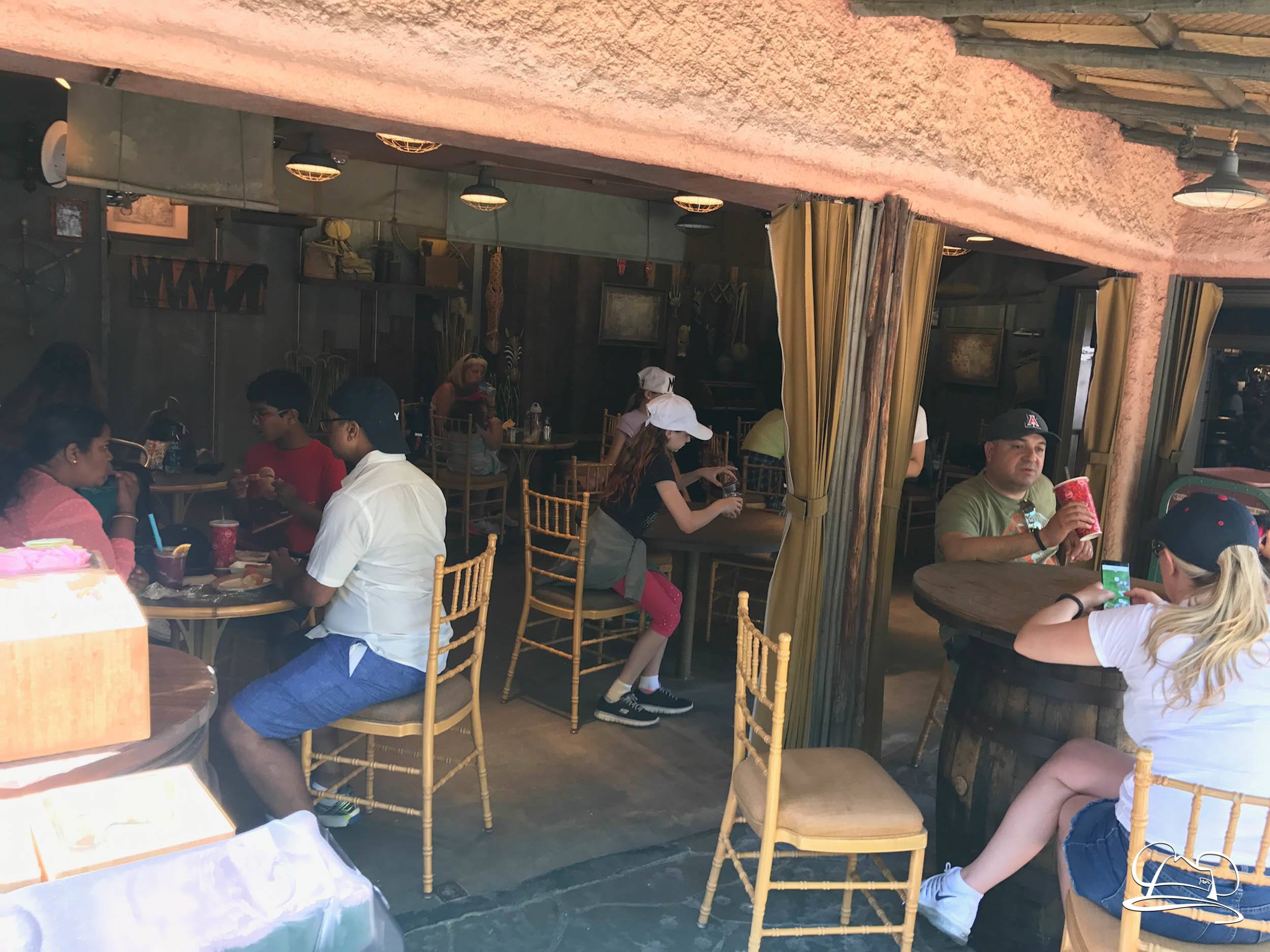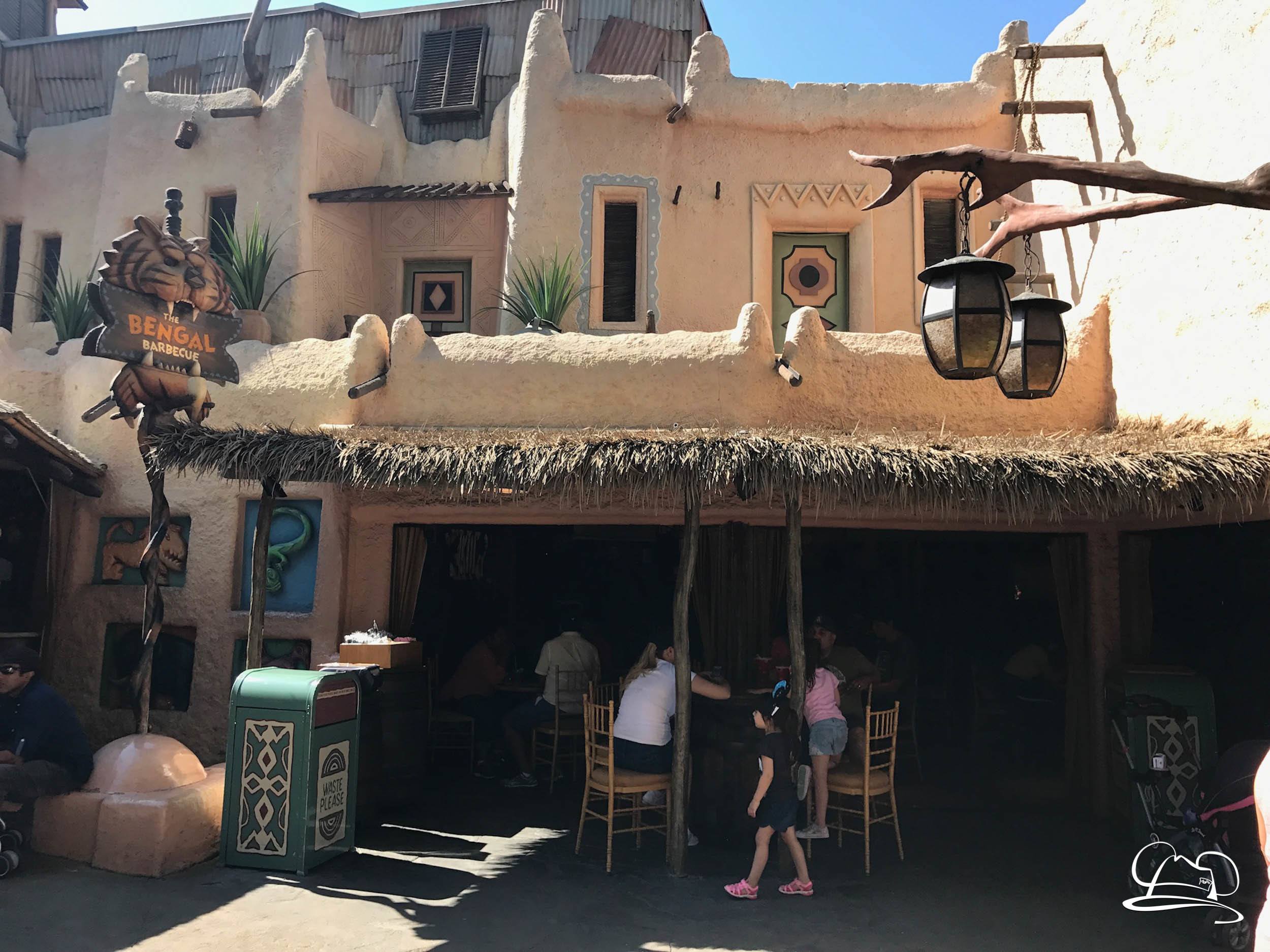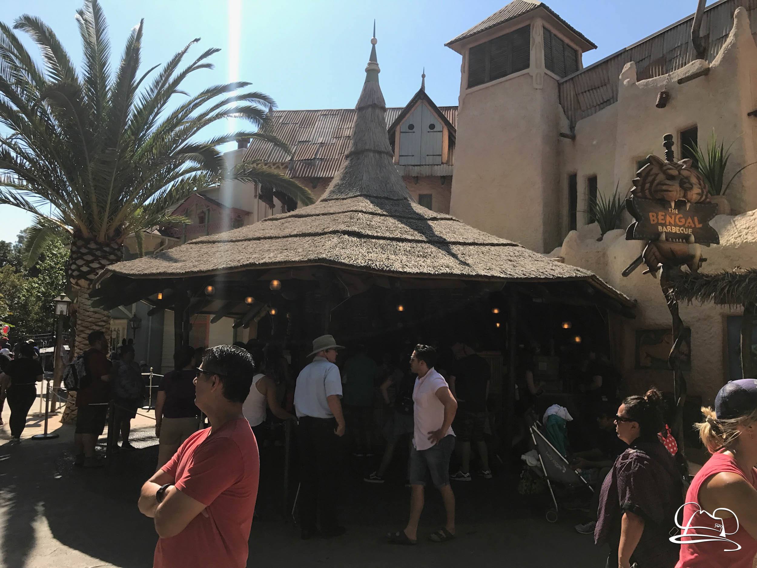 Change has come to Adventureland at Disneyland. After a recent menu update for Bengal Barbecue, now there is a physical update to the popular dining location. The old standing table has been removed and now seating is available. Indiana Jones Adventure Outpost and South Seas Traders stores were vacated to make room for the seating. The area is now open and available for diners to enjoy. There are still references to the past inhabitants in the area.