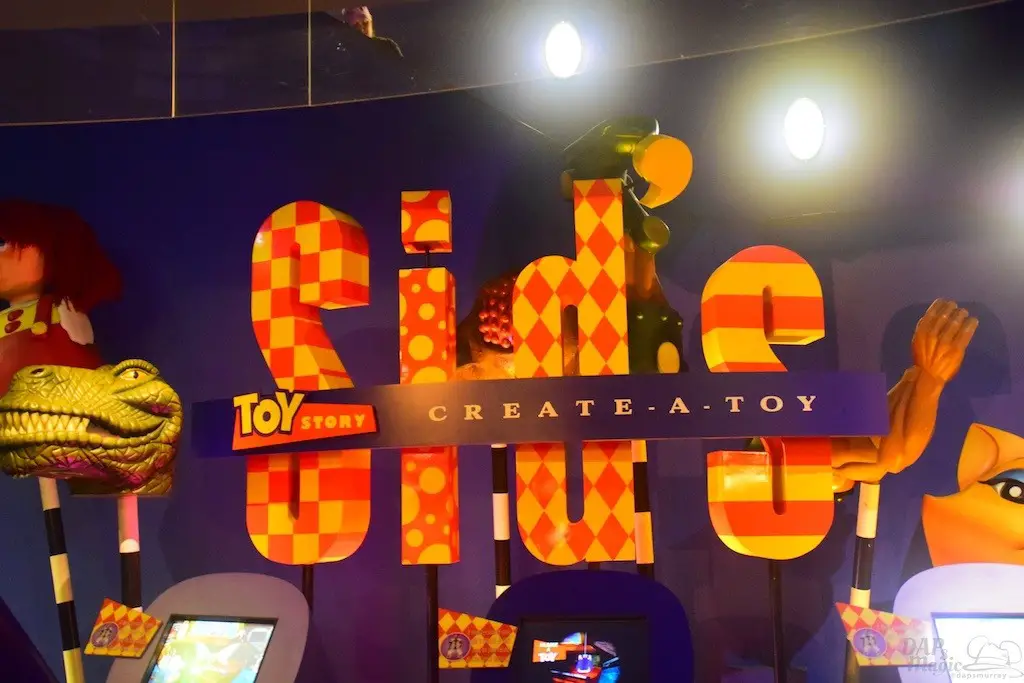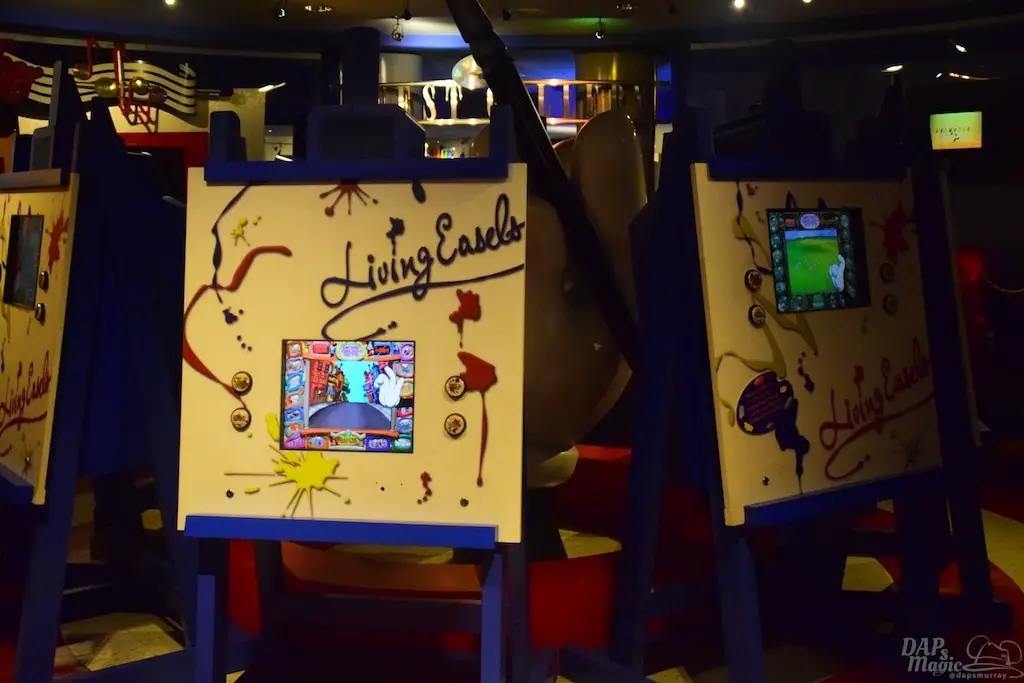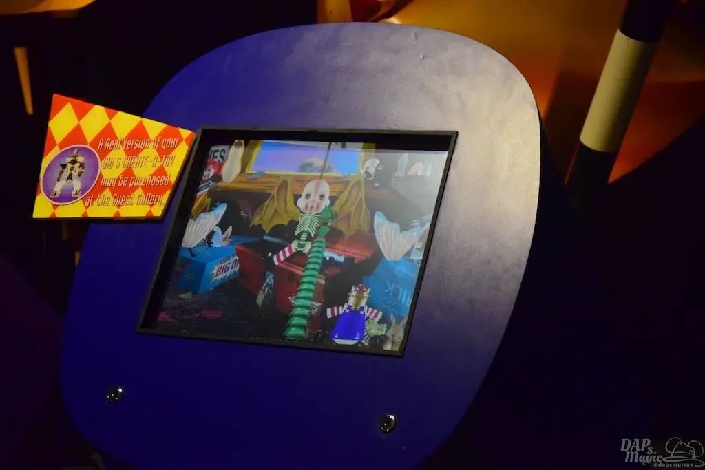 Living Easels was a touch screen coloring book that you could buy a print of your creation. Sid’s Create-A-Toy was an interactive way of making a toy creation like Sid from Toy Story. A joy stick guided around a room let you pick up appendages to form an action figure that was also available for purchase.