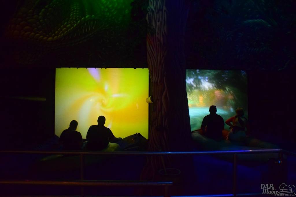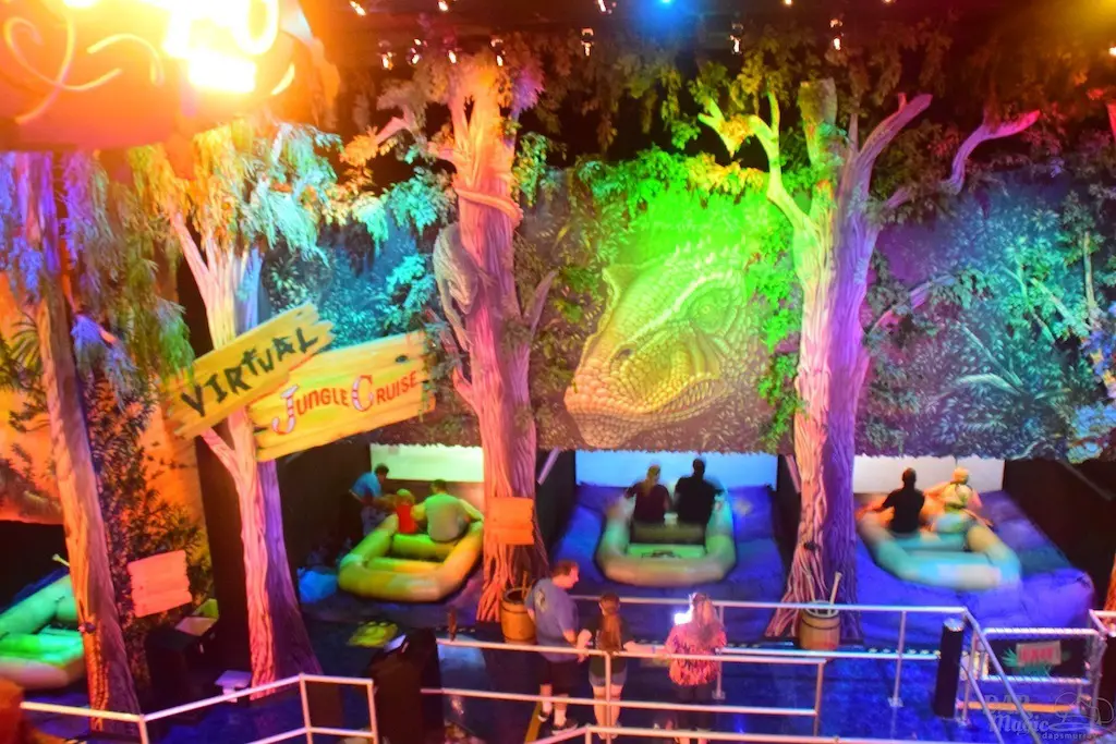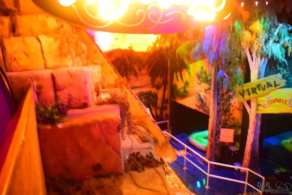 Virtual Jungle Cruise combined two properties of Disney: the world famous Jungle Cruise and Honey, I Shrunk the Kids…the television series at least. Wayne Szalinski used a time machine to send passengers on an inflated raft through a time with dinosaurs. Passengers actually paddled on inflated “water” to escape the impending meteor strike.