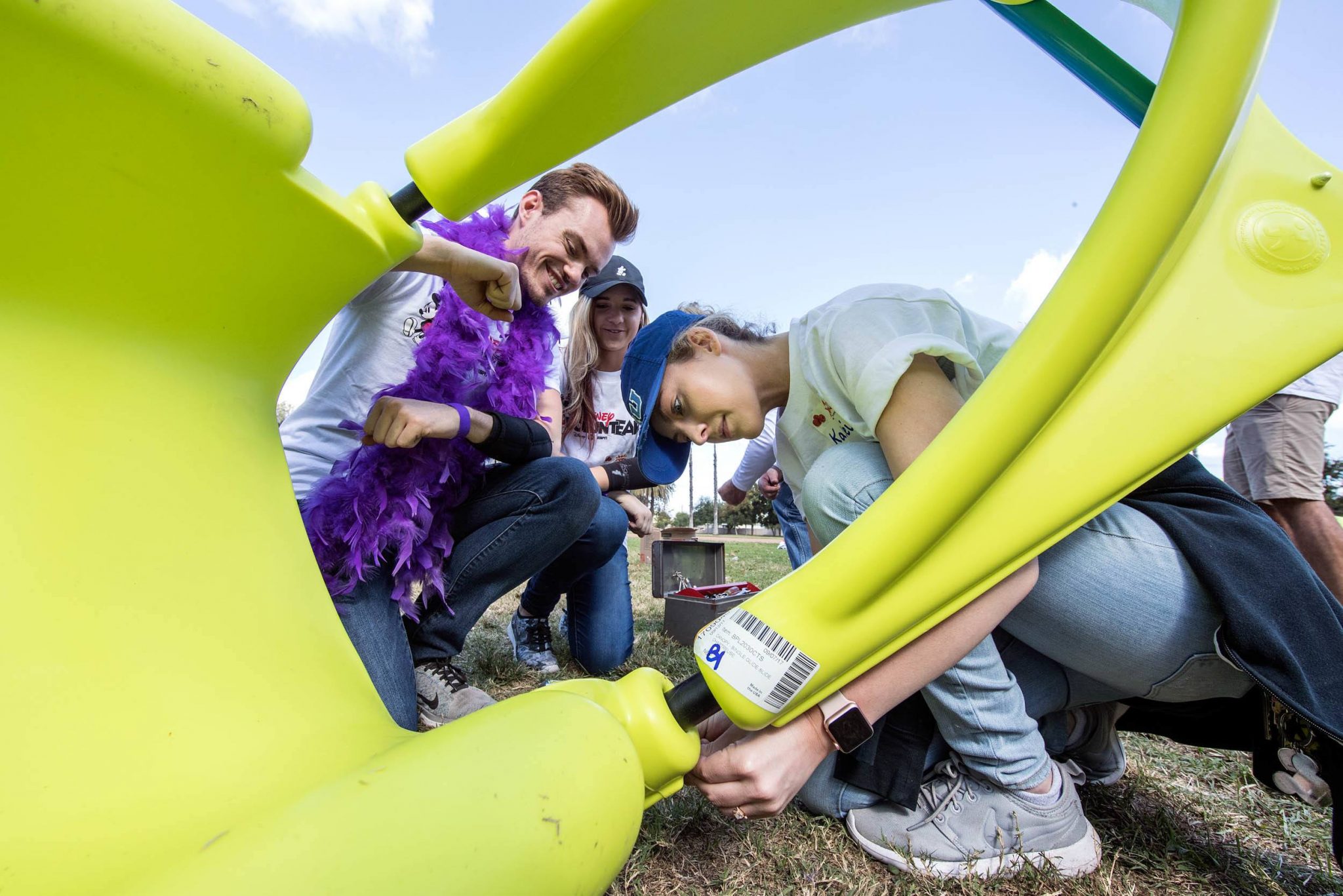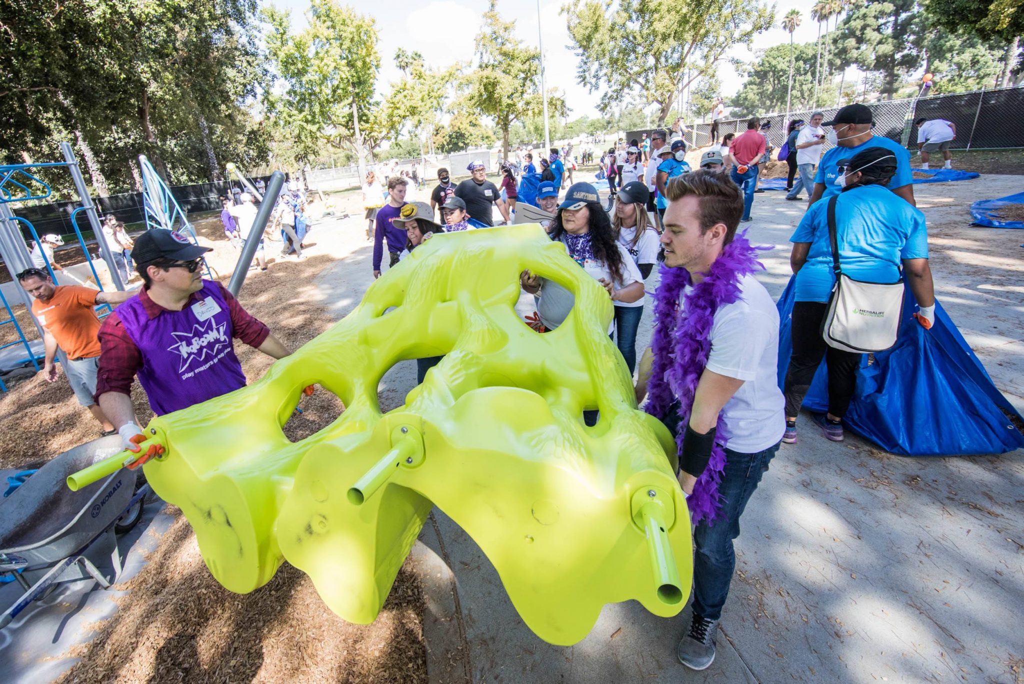 DISNEY VOLUNTEARS HELP BUILD PLAYGROUND IN ANAHEIM – Willow Park in Anaheim was transformed into a kid-designed play space in less than eight hours with the help of close to 300 volunteers from the City of Anaheim, Anaheim Family YMCA, Disney, Disney alumni, area residents and organizers from KaBOOM! on Saturday, September 23, 2017. With this new addition to the neighborhood, 400 kids now have more opportunities to get the balanced and active play they need to thrive. Willow Park marks the ninth Disney-sponsored KaBOOM! playground in the city of Anaheim. (Joshua Sudock/Disney Parks)