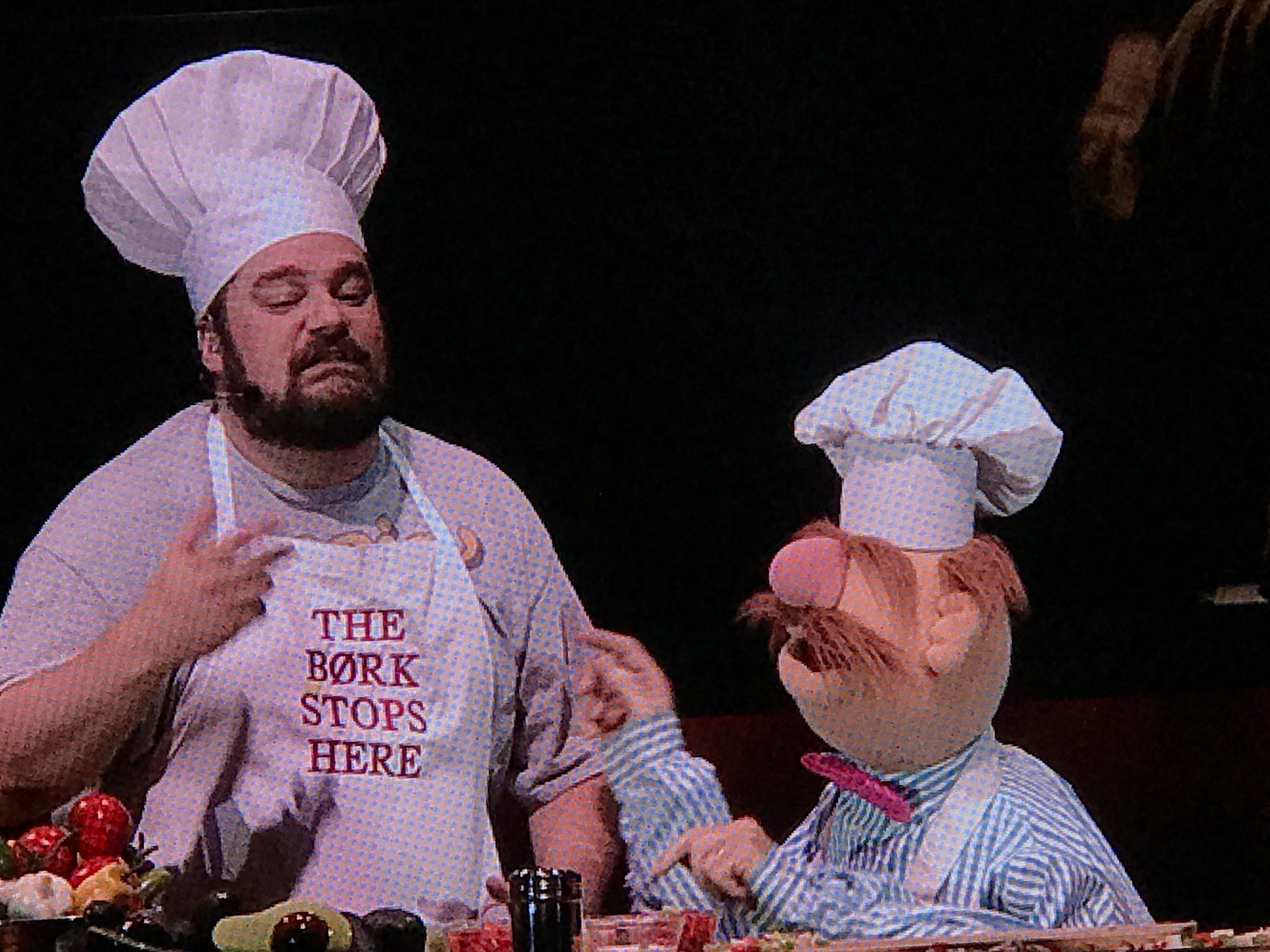 The evening began with Sam Eagle introducing the Star Spangled Banner. Once that was done, the show began just as any Muppet show should. The Muppet Show Theme kicked off the evening. The whole show was really an extended live performance of The Muppet Show. This is what made this evening so wonderful, it was a modern version of the original show so many of us know and love. Kermit was running things, or trying to. Scooter was on hand to make sure that things were moving forward. Fozzie Bear was telling “great” jokes, Gonzo was being Gonzo, and Miss Piggy continually fought to be the star of the show. Oh, and you can’t forget the Swedish Chef making salsa with Bobby Mohnihan, Pepe the Prawn stealing the orchestra, and hearing Mahna Mahna live.