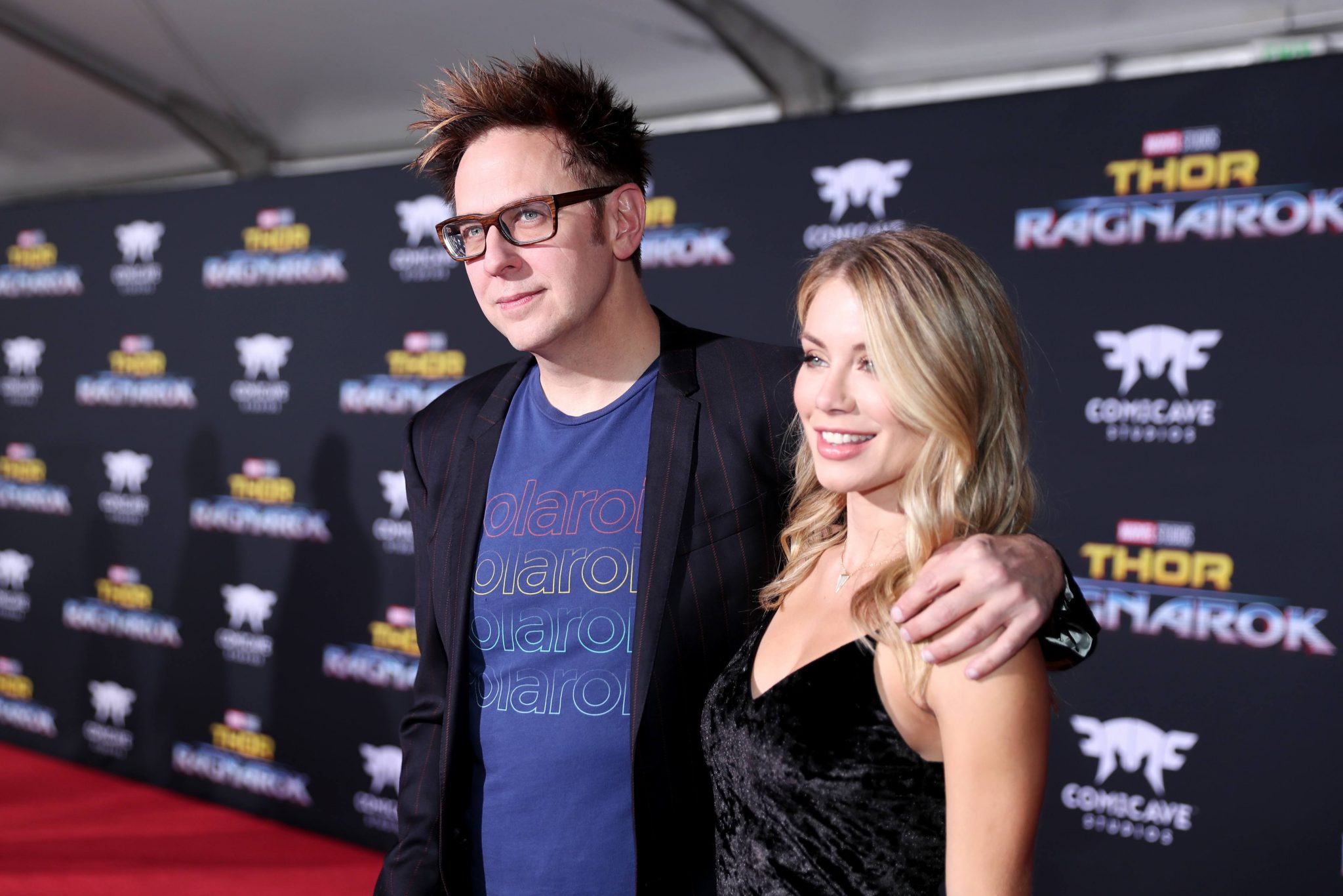 HOLLYWOOD, CA – OCTOBER 10: Screenwriter James Gunn (L) and Jennifer Holland at The World Premiere of Marvel Studios’ “Thor: Ragnarok” at the El Capitan Theatre on October 10, 2017 in Hollywood, California. (Photo by Rich Polk/Getty Images for Disney) *** Local Caption *** James Gunn; Jennifer Holland