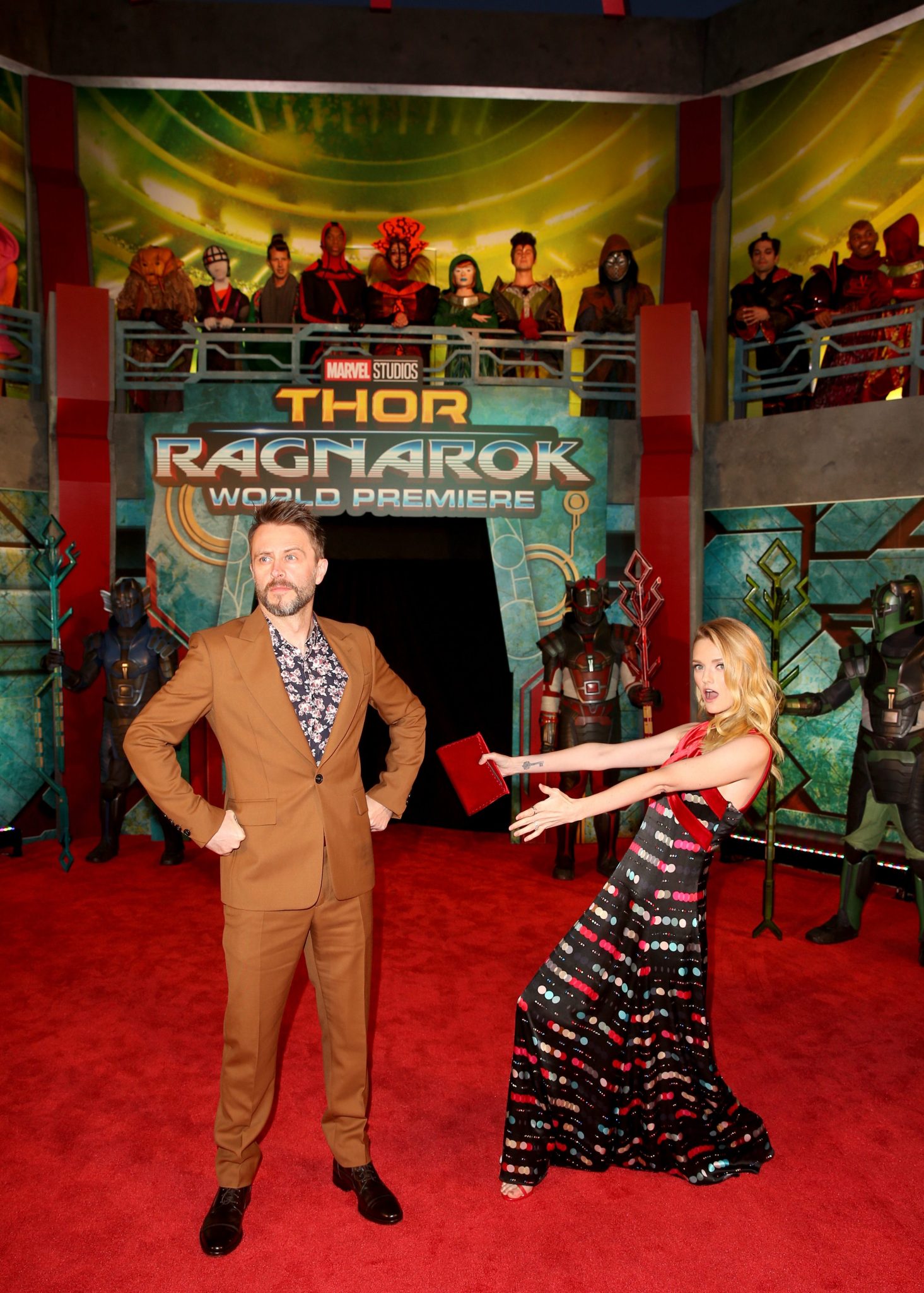 HOLLYWOOD, CA – OCTOBER 10: Actors Chris Hardwick (L) and Lydia Hearst at The World Premiere of Marvel Studios’ “Thor: Ragnarok” at the El Capitan Theatre on October 10, 2017 in Hollywood, California. (Photo by Alberto E. Rodriguez/Getty Images for Disney) *** Local Caption *** Chris Hardwick; Lydia Hearst