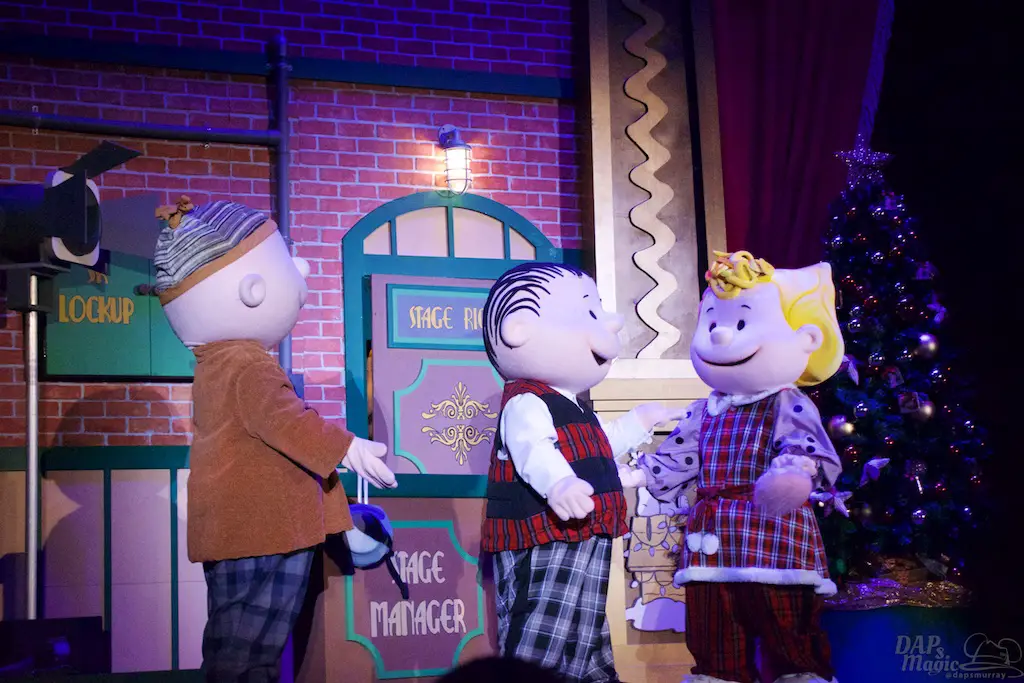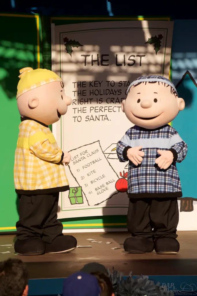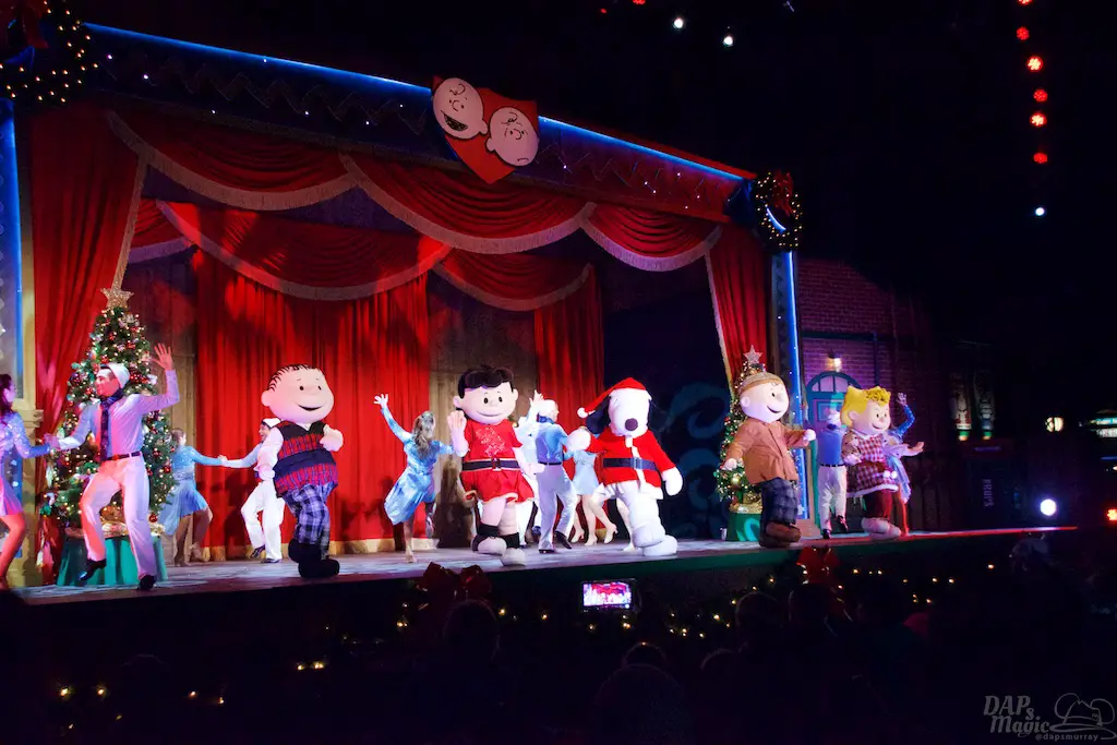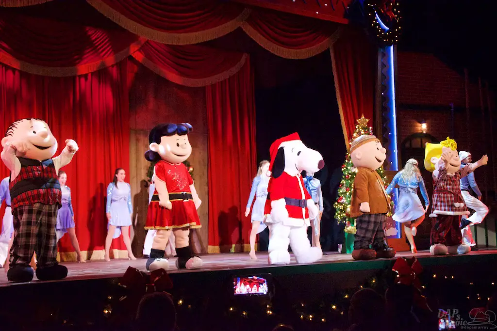 It’s the Merriest Christmas Show Ever plays on the Calico Stage near the Calico Mine ride. It features the Peanuts characters and several singers and dancers. They try to put on a show with Charlie Brown as director, but Snoopy hasn’t returned from a trip yet and he misses his dog. It’s a great musical revue with plenty of chances to see your favorite Peanuts characters.