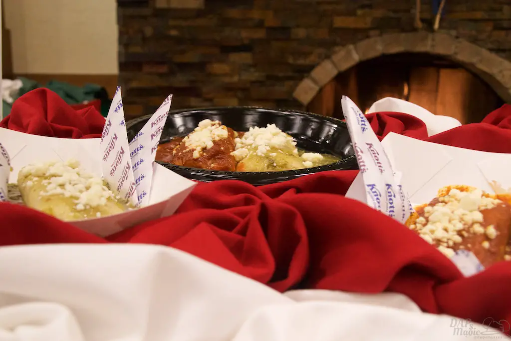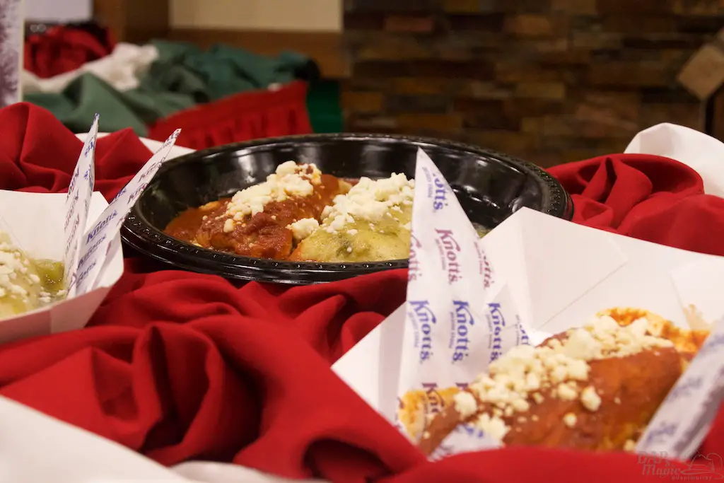 Tamales are a rather traditional Christmas cuisine, and it’s great that Knott’s added them to the menu this year. Beef and Chicken options are available, with some spicy salsa and cheese to top it off. They were delicious with soft coating and great taste. I’ll warn you that the green salsa was very spicy, which I enjoyed, but may be too much for others.