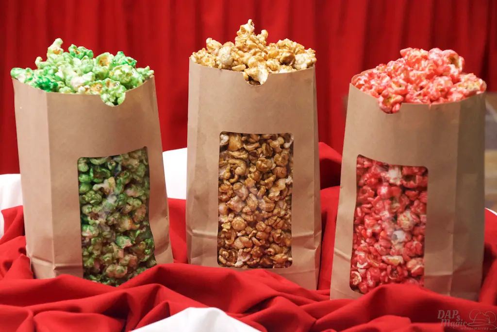 There are various flavors of kettle corn that come in different colors of green, red and yellow. The red is probably the best with a cinnamon flavoring on top of the caramel.
