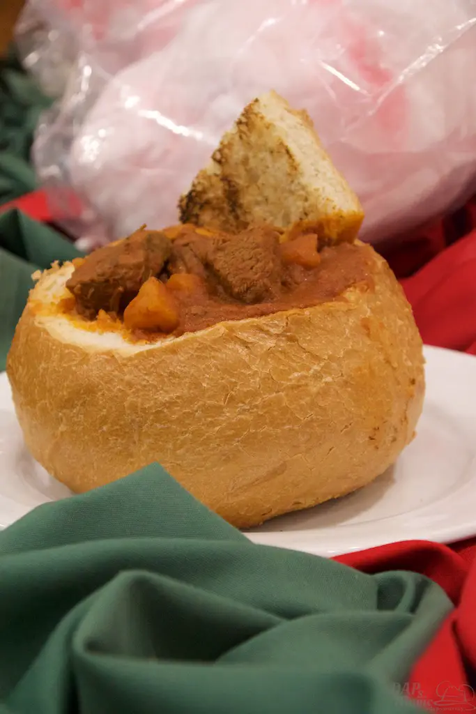 Elsewhere in the park are some other great food features. A Christmas pizza is at Hollywood Hits, with turkey, stuffing, cranberries, and other Christmas meal fare in one slice! There’s a great beef stew at Ghost Town Grill and a holiday turkey sandwich at Boardwalk BBQ.