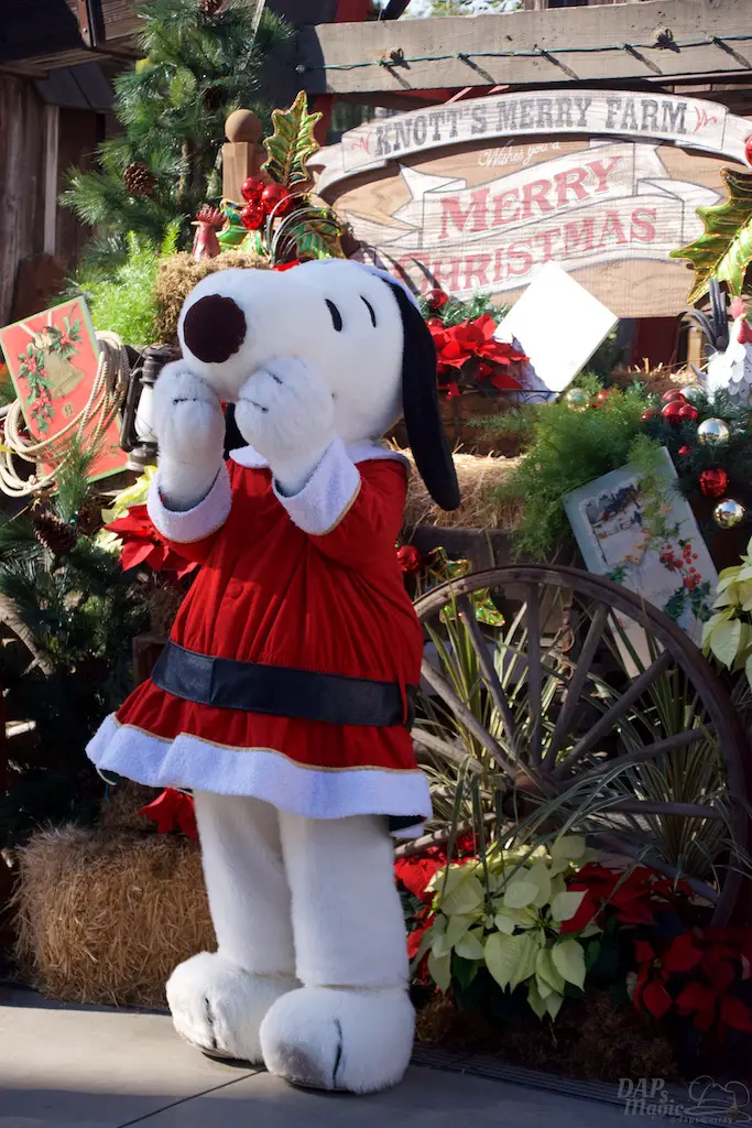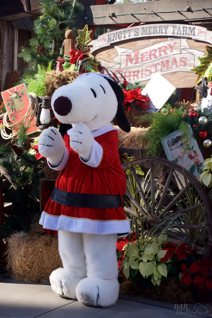 Snoopy has been a staple for Knott’s Merry Farm for a number of years, but he’s extra fun during the Christmas season. He’s Santa Snoopy for the occasion and if you get to the park earlier in the day you can get a photo with him right after the entrance. He can also be found over in Camp Snoopy, although sometimes sans Santa suit. He’s still a great guy to get a photo with.