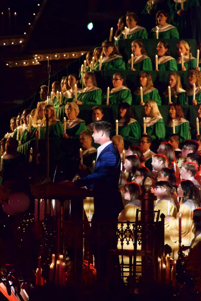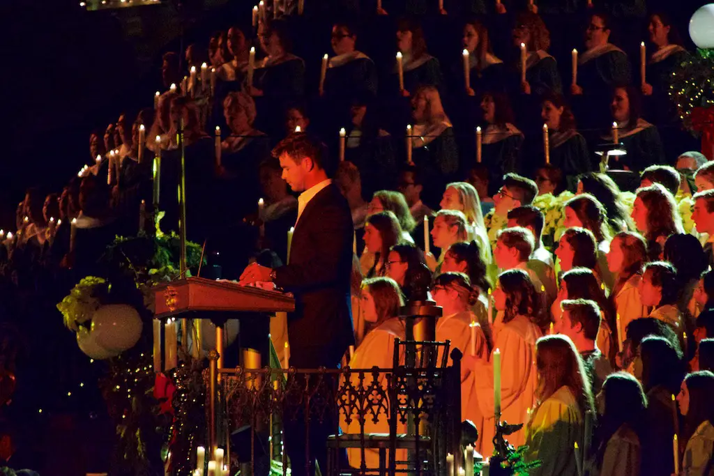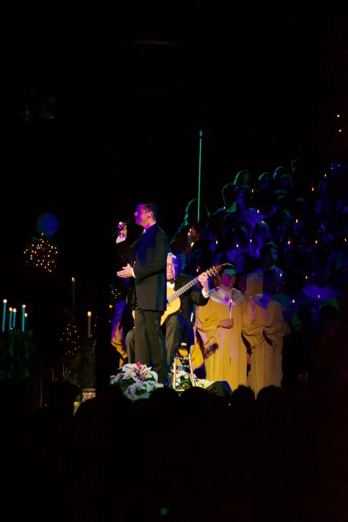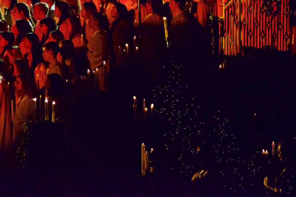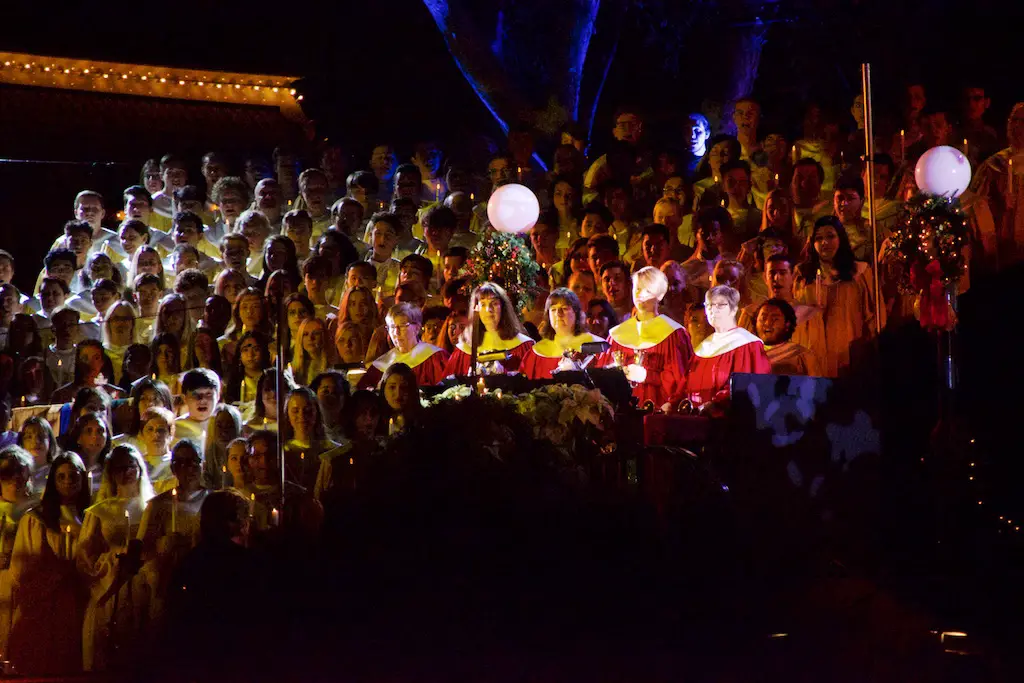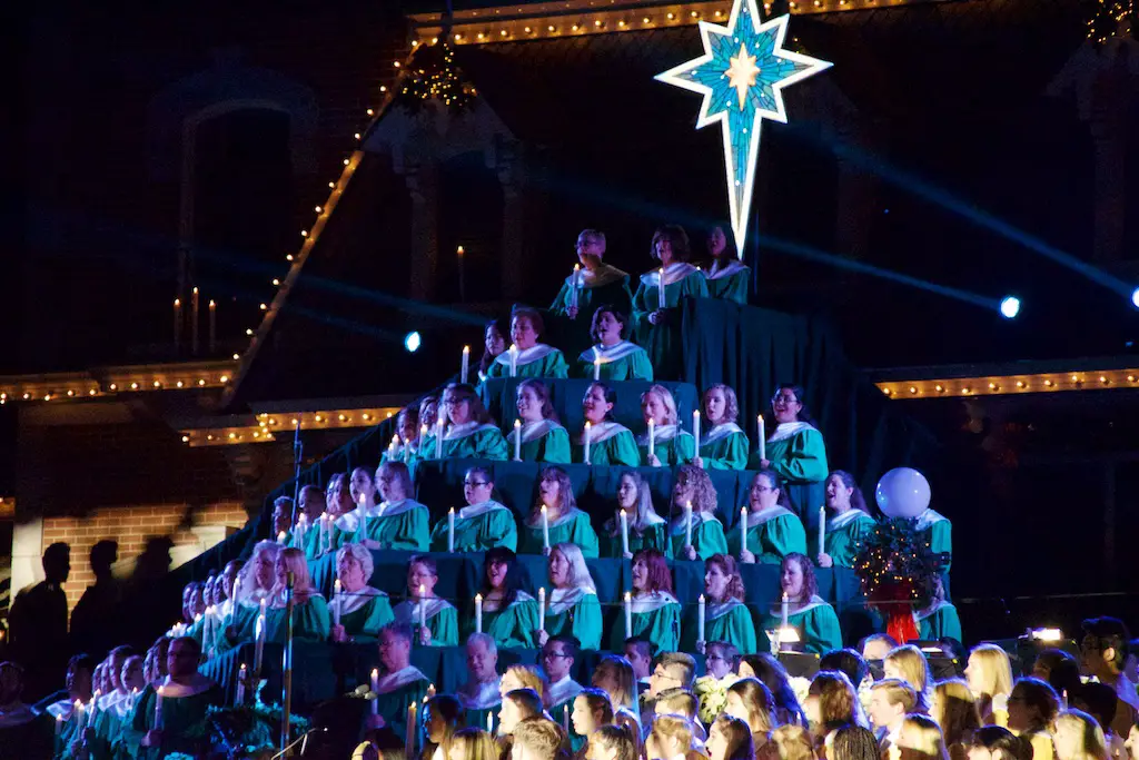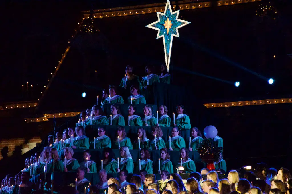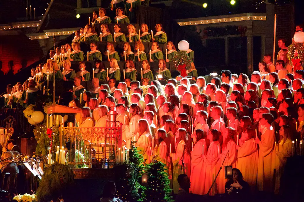 The Candlelight Processional and Ceremony takes place twice in the evenings of Saturday and Sunday on the first weekend in December.