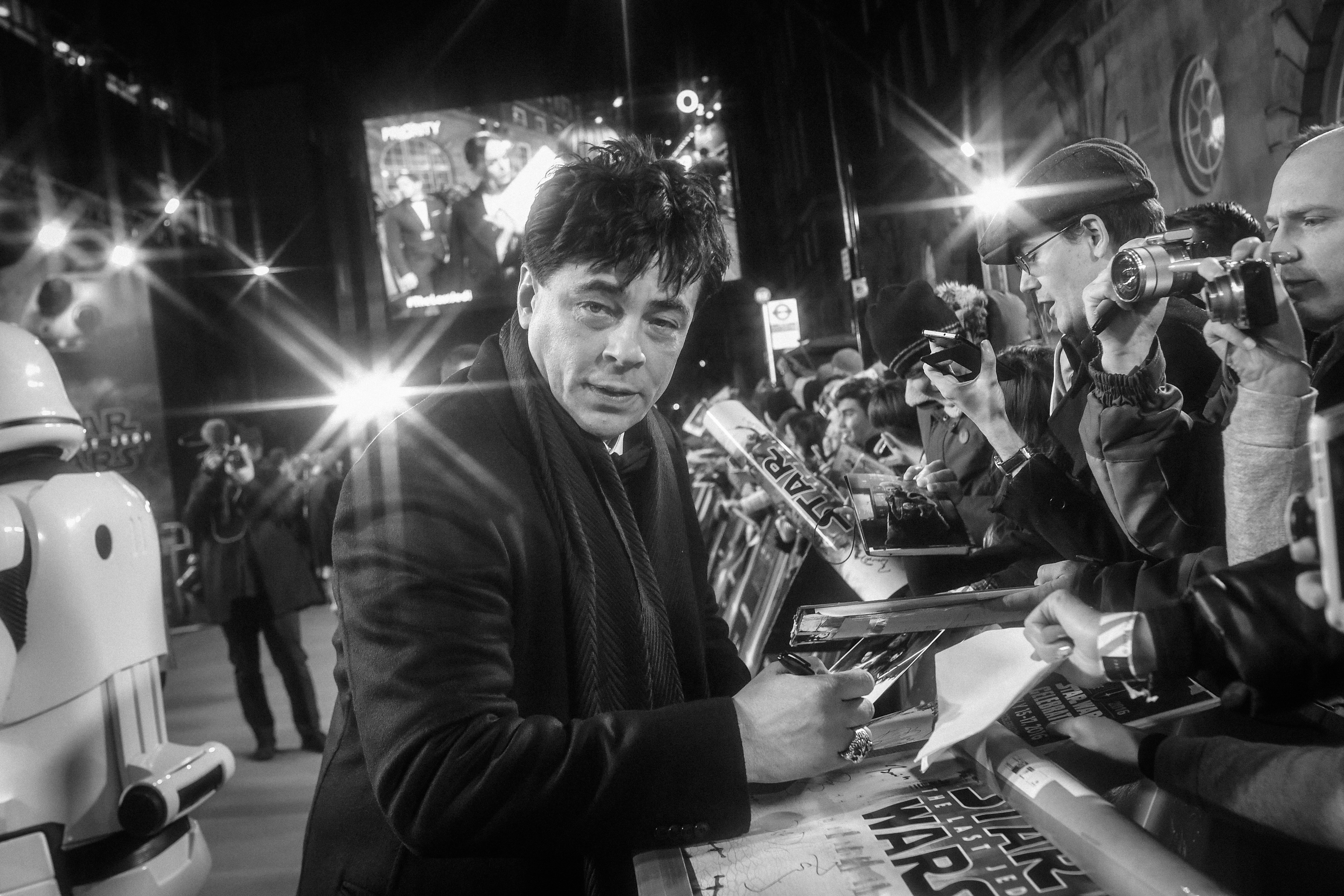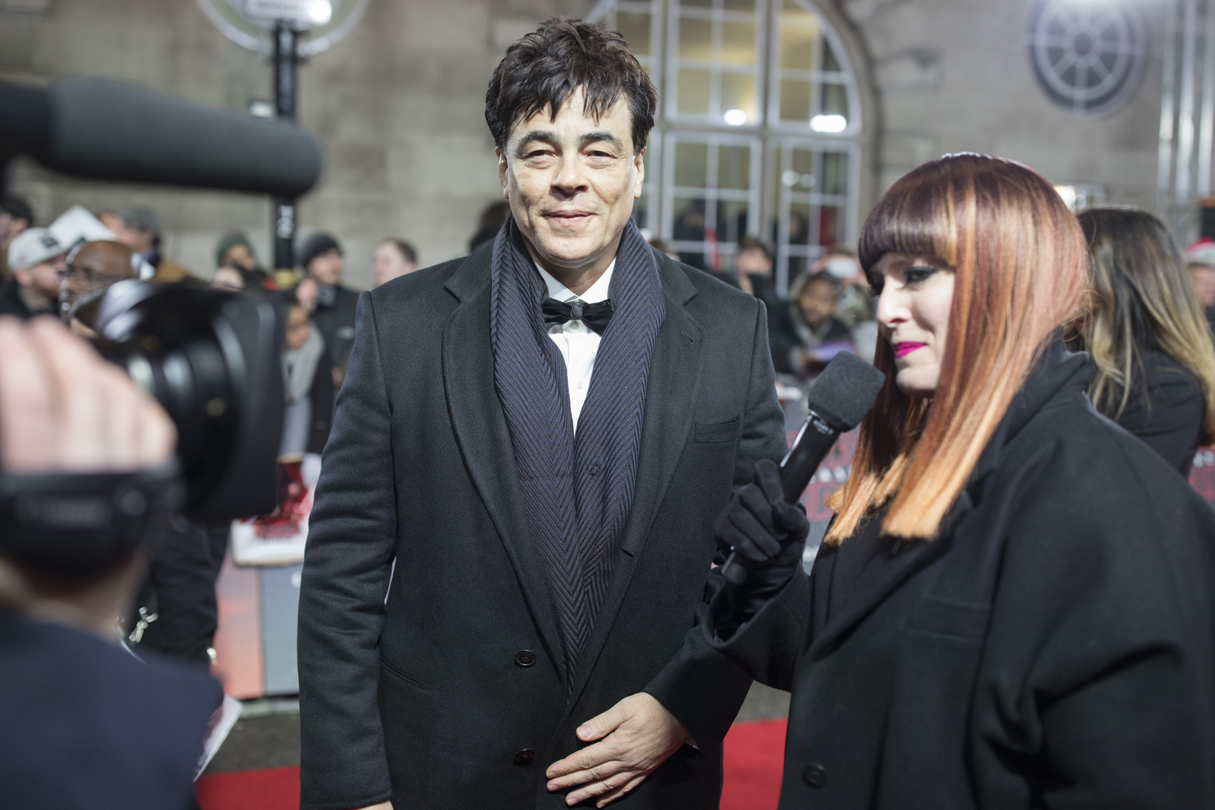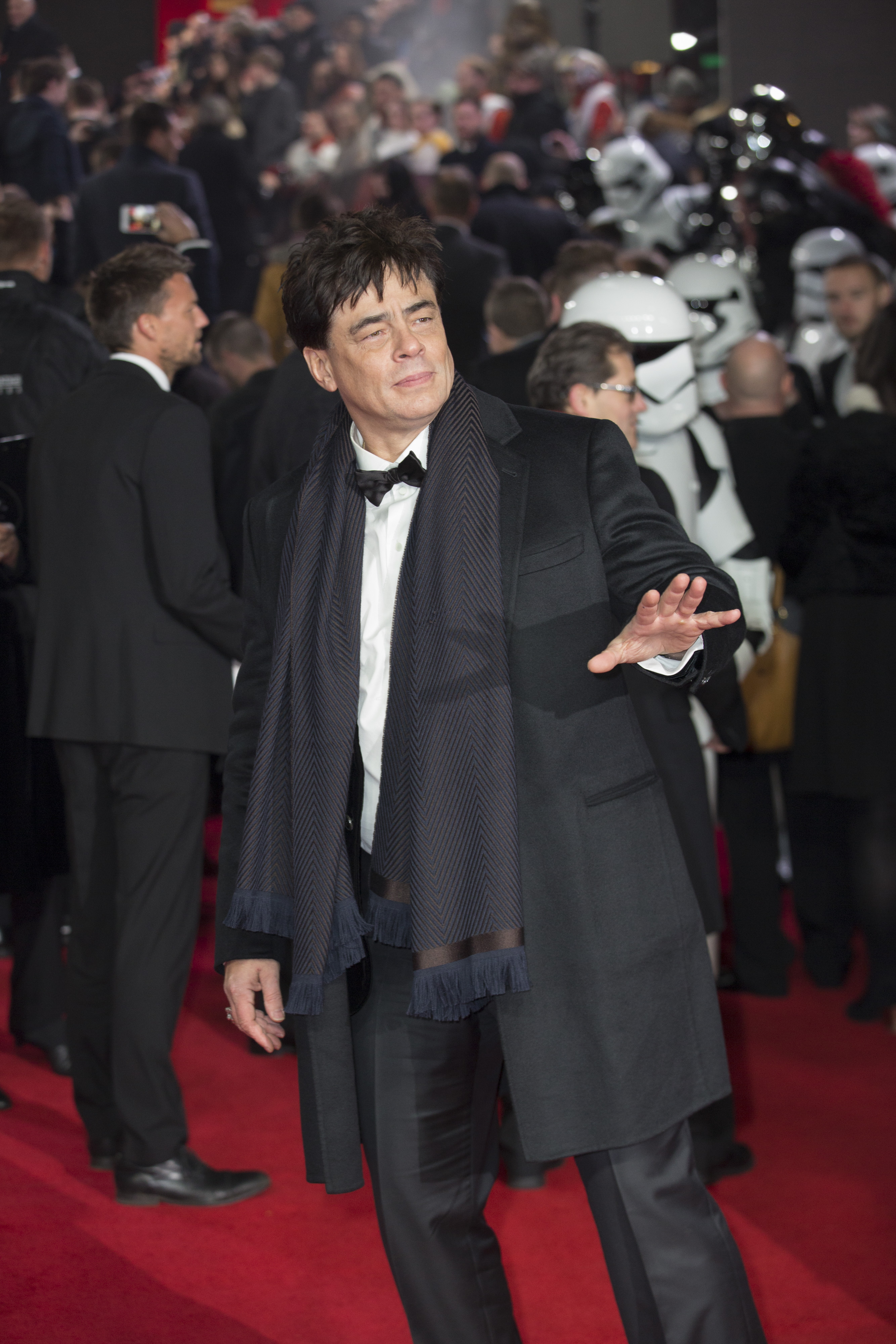 LONDON, UK DECEMBER 12: Benicio Del Toro attends the European Premiere of Star Wars: The Last Jedi in the presence of HRH Duke of Cambridge and HRH Prince Harry at the Royal Albert Hall in London, UK on Tuesday 12th December 2017. *** Local Caption *** Benicio Del Toro