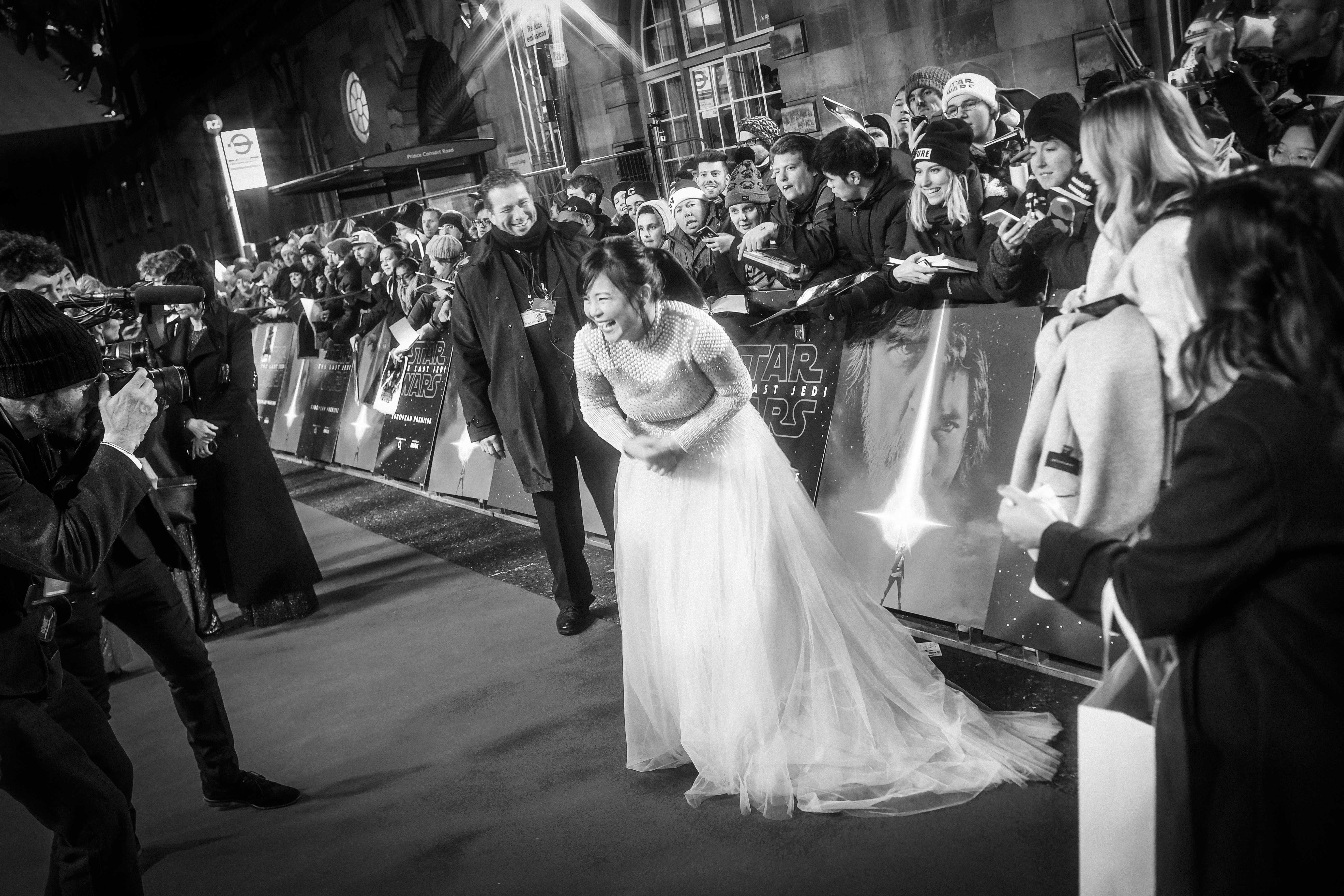 Tonight in London, stars Mark Hamill, Adam Driver, Daisy Ridley, John Boyega, Oscar Isaac, Andy Serkis, Domhnall Gleeson, Anthony Daniels, Gwendoline Christie, Kelly Marie Tran, Laura Dern and Benicio Del Toro were joined by writer/director Rian Johnson and producers Kathleen Kennedy and Ram Bergman for a walk down the red carpet where they greeted enthusiastic fans at the European premiere of Lucasfilm’s STAR WARS: THE LAST JEDI.