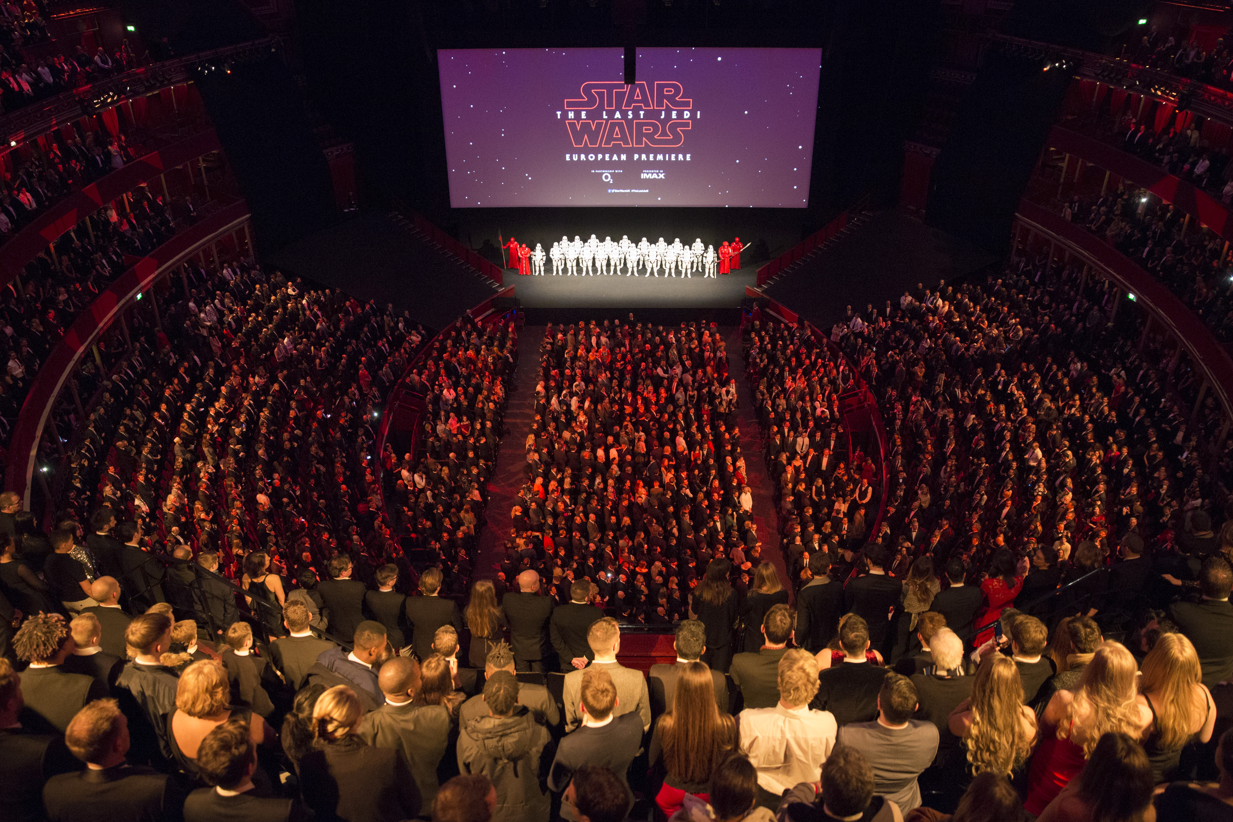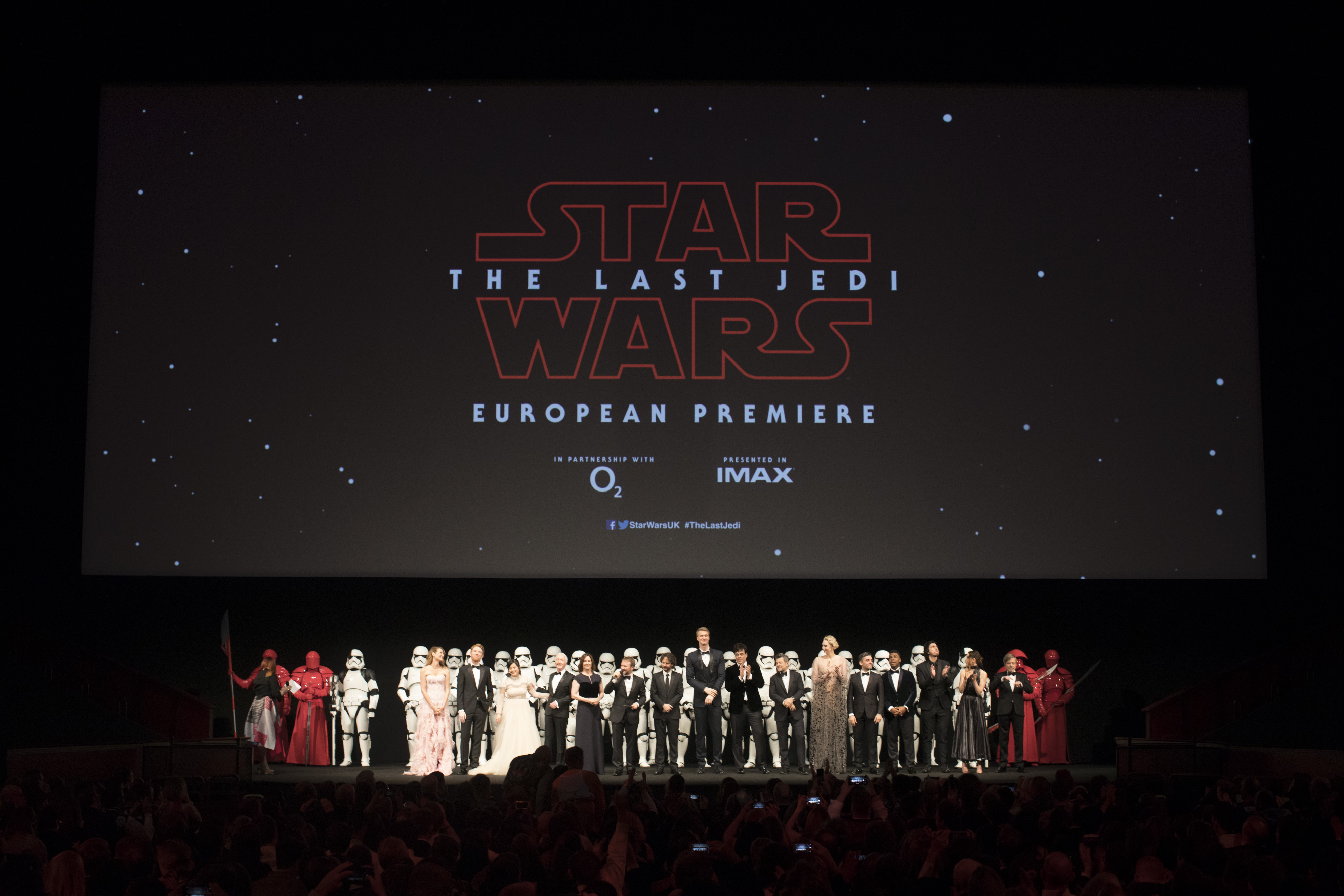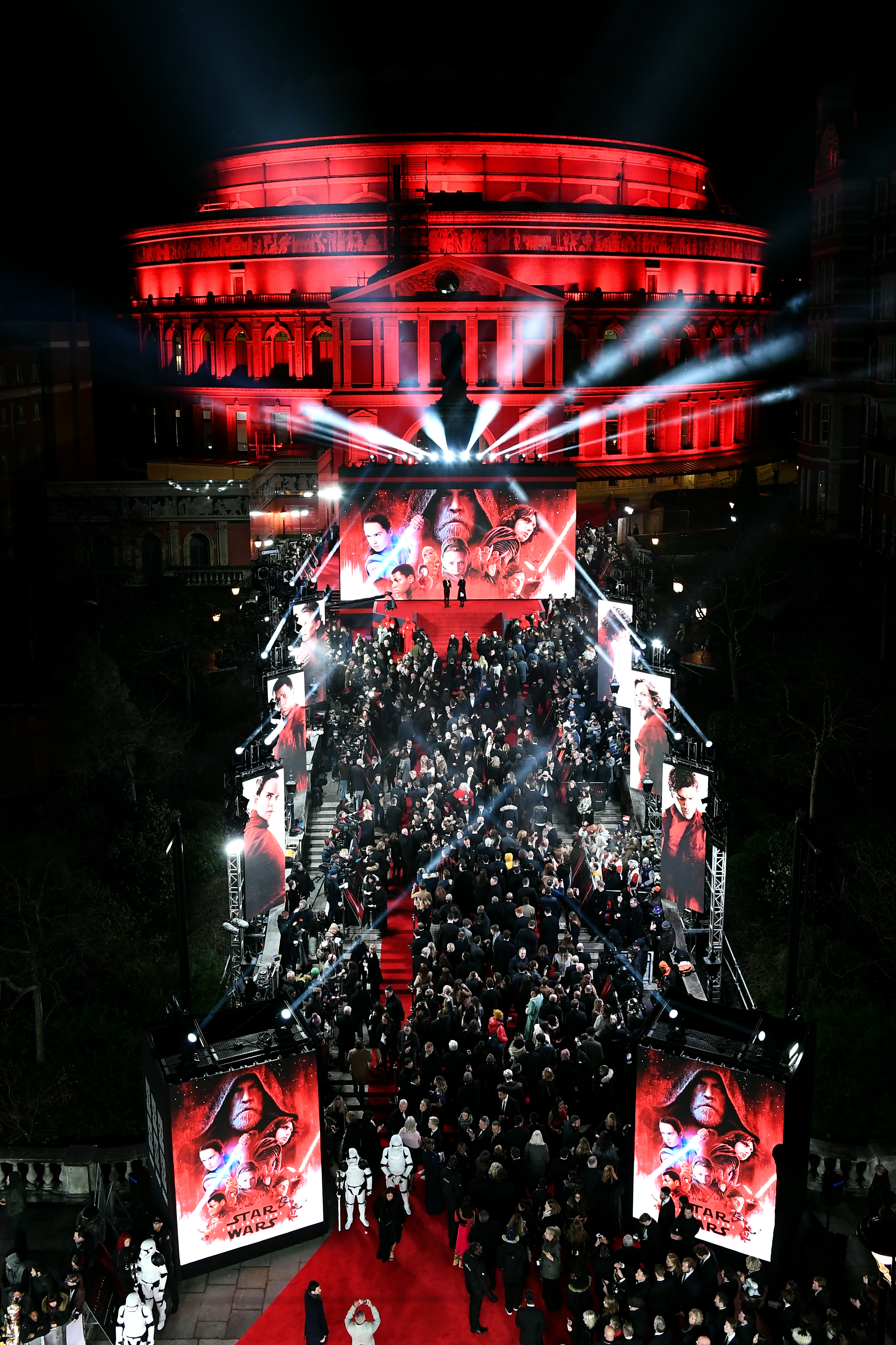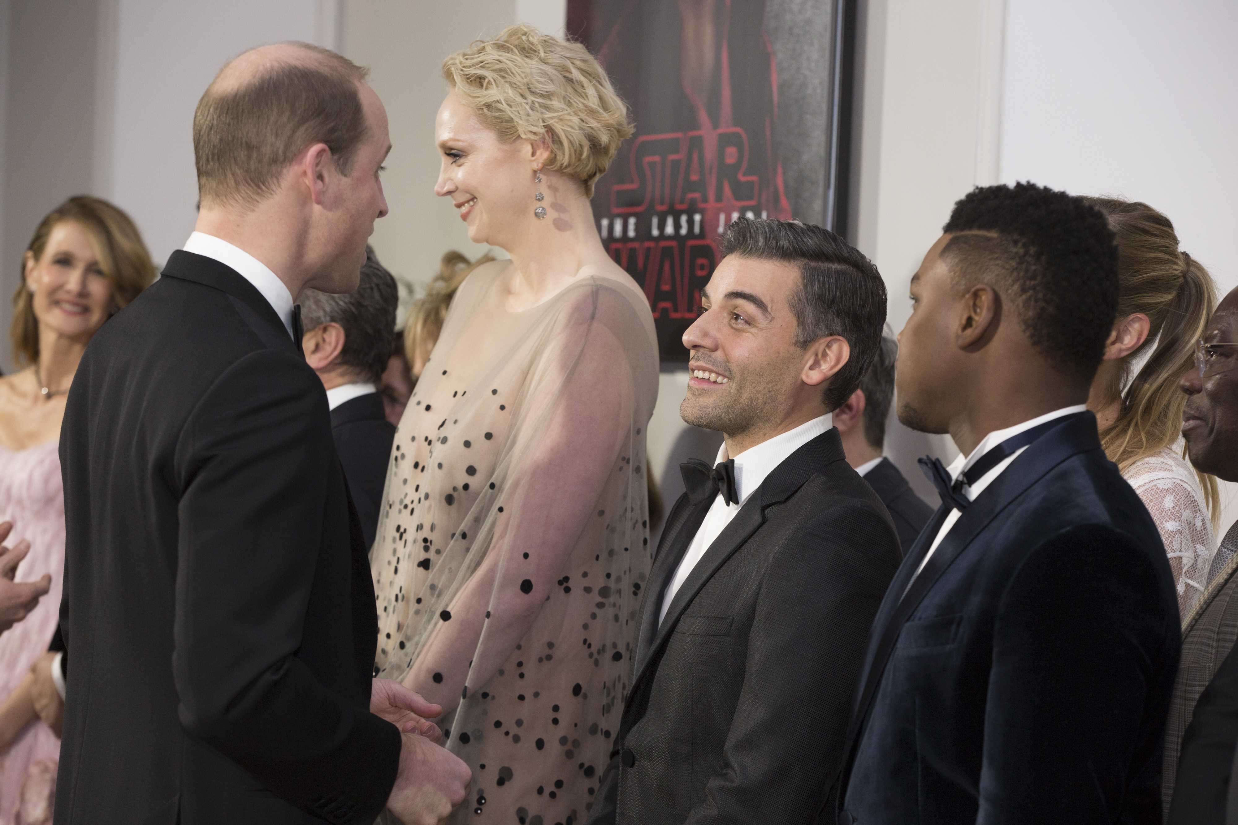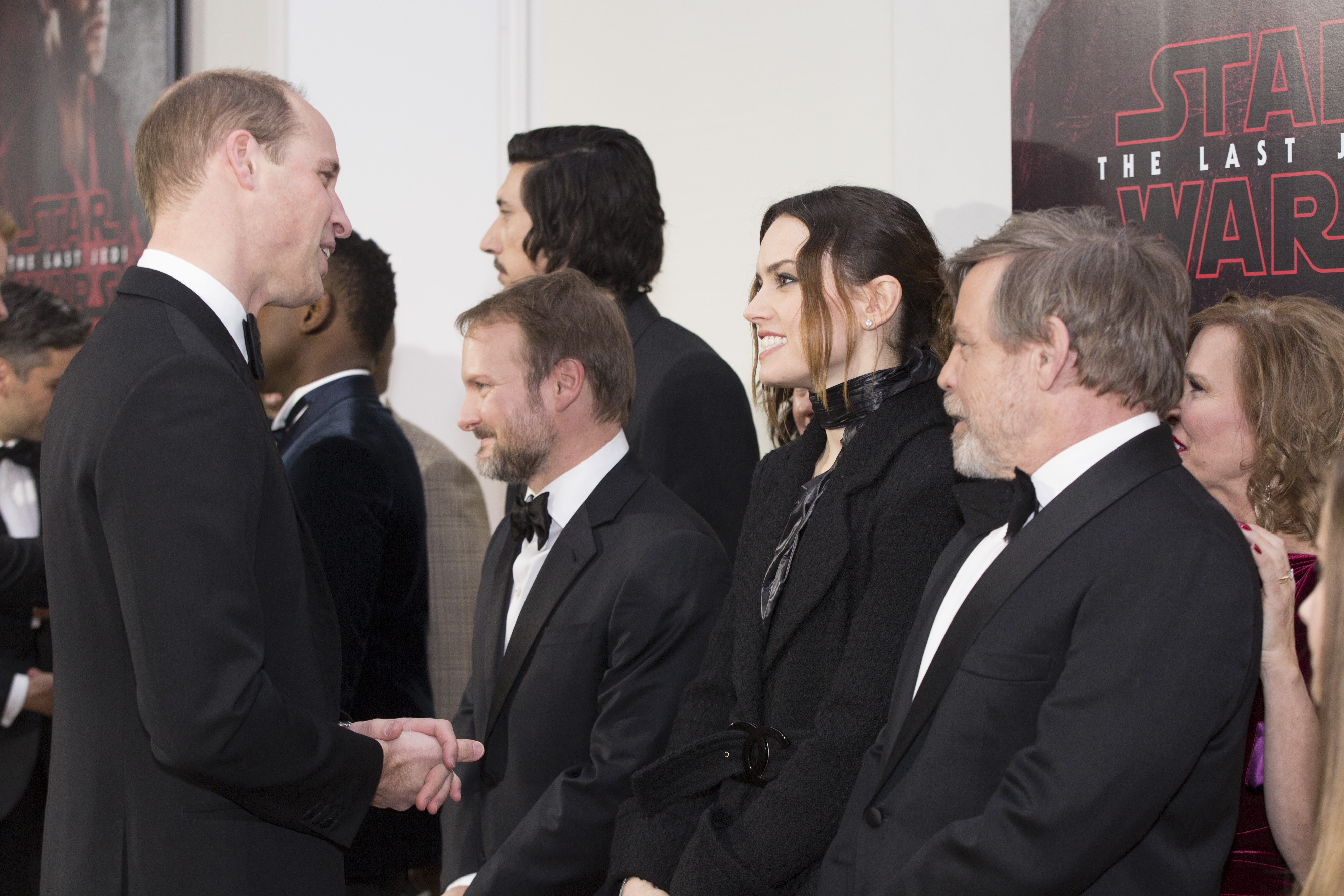 The cast and filmmakers of Star Wars: The Last Jedi attend the European Premiere in the presence of HRH Duke of Cambridge and HRH Prince Harry at the Royal Albert Hall in London, UK on Tuesday 12th December 2017.