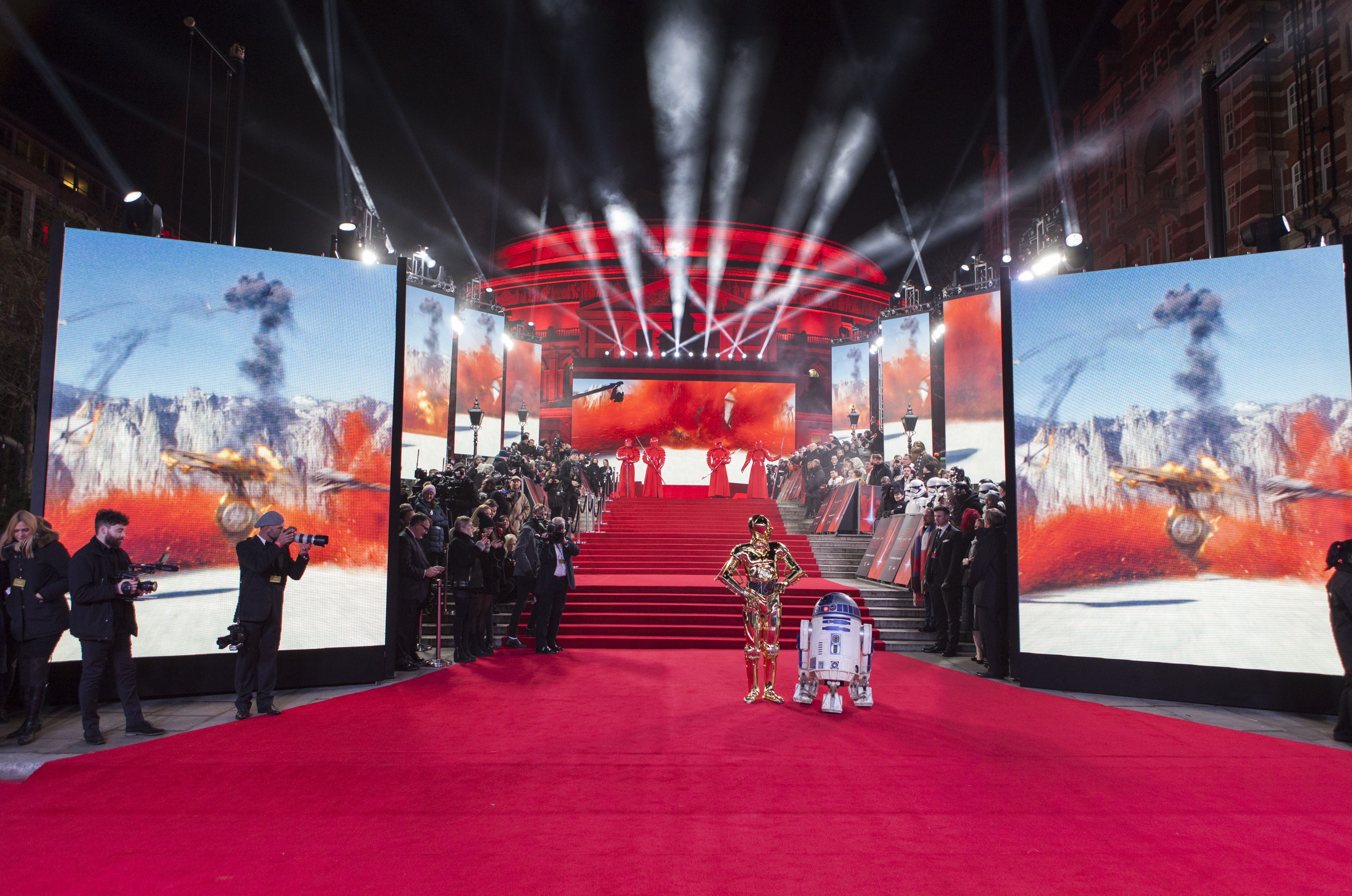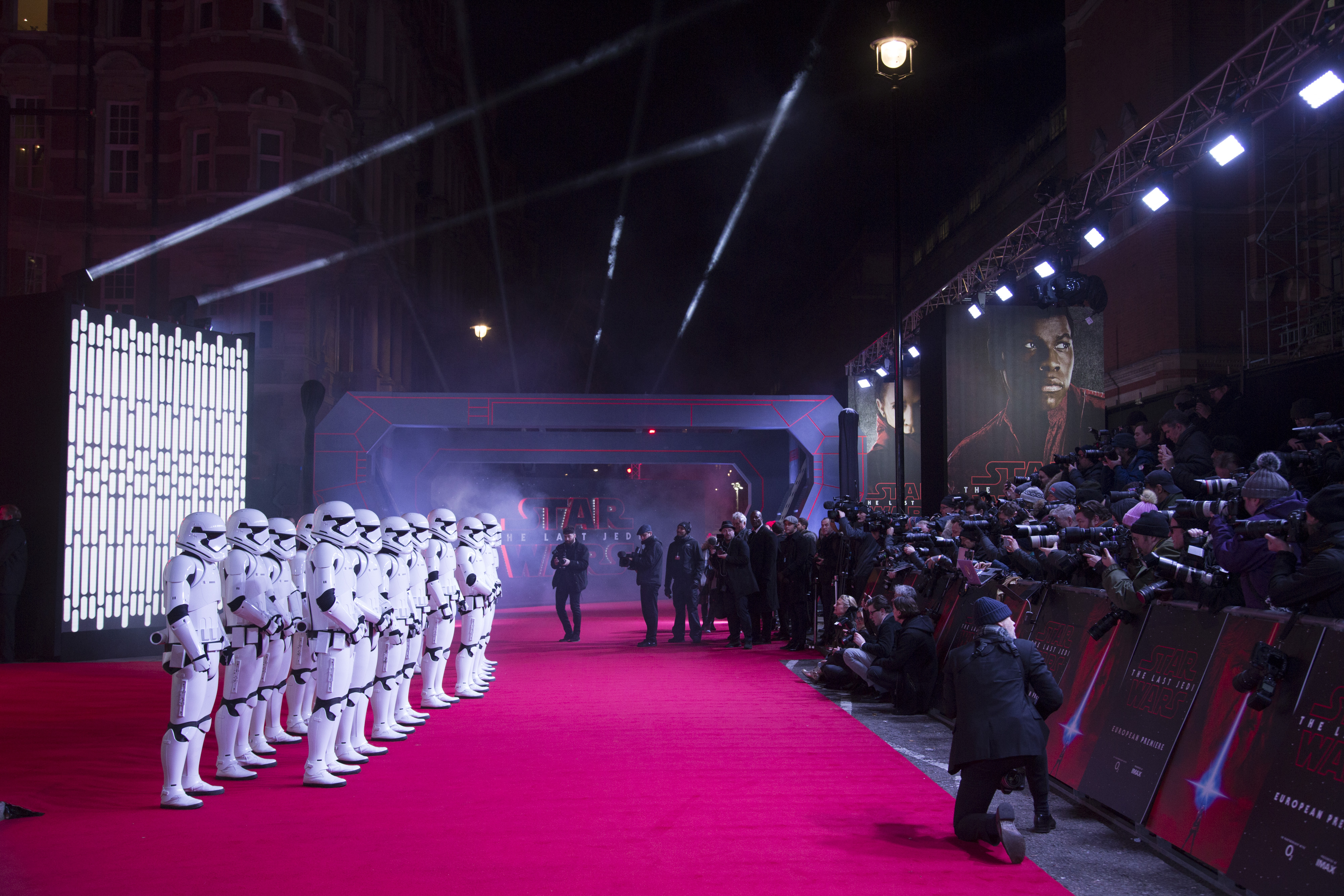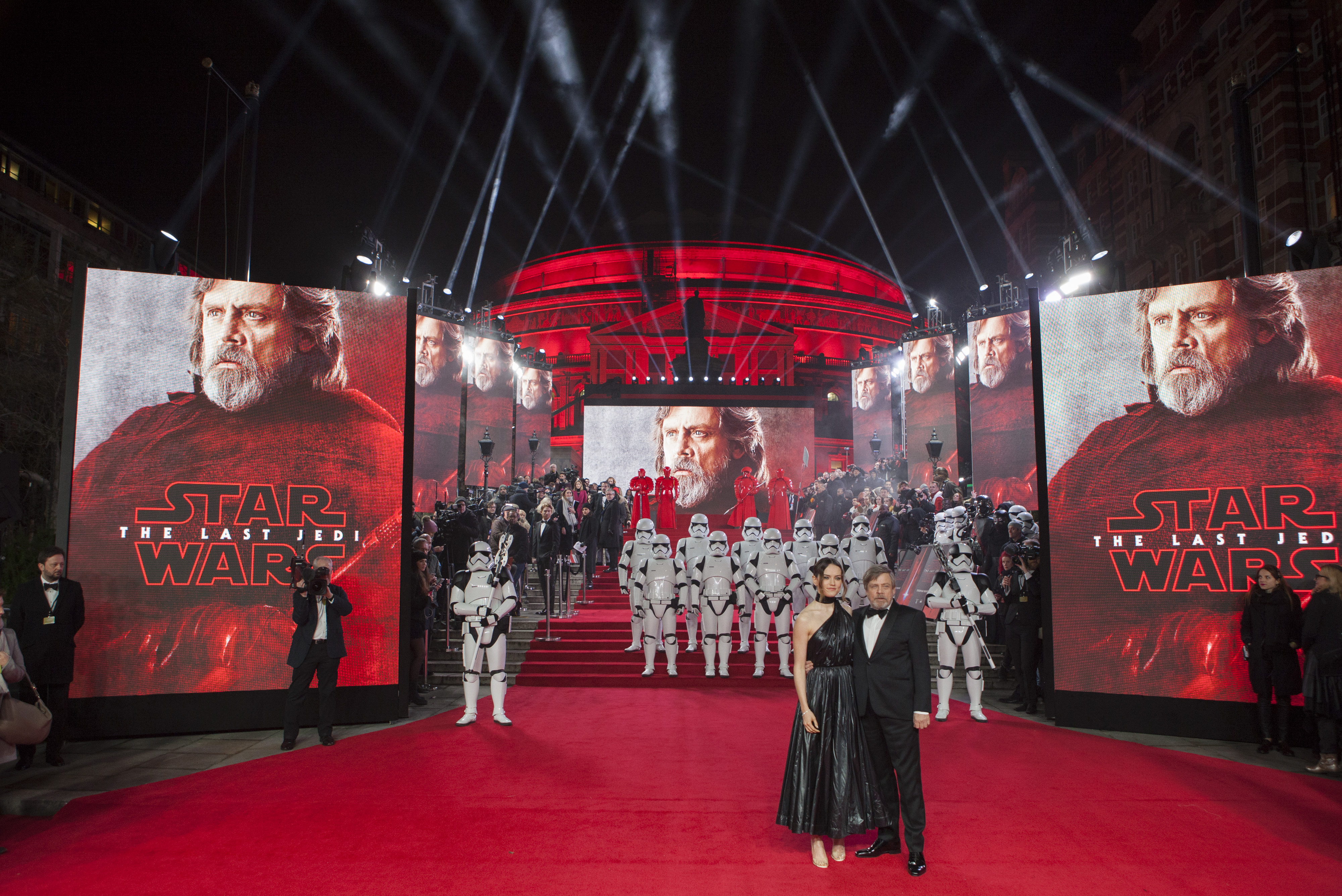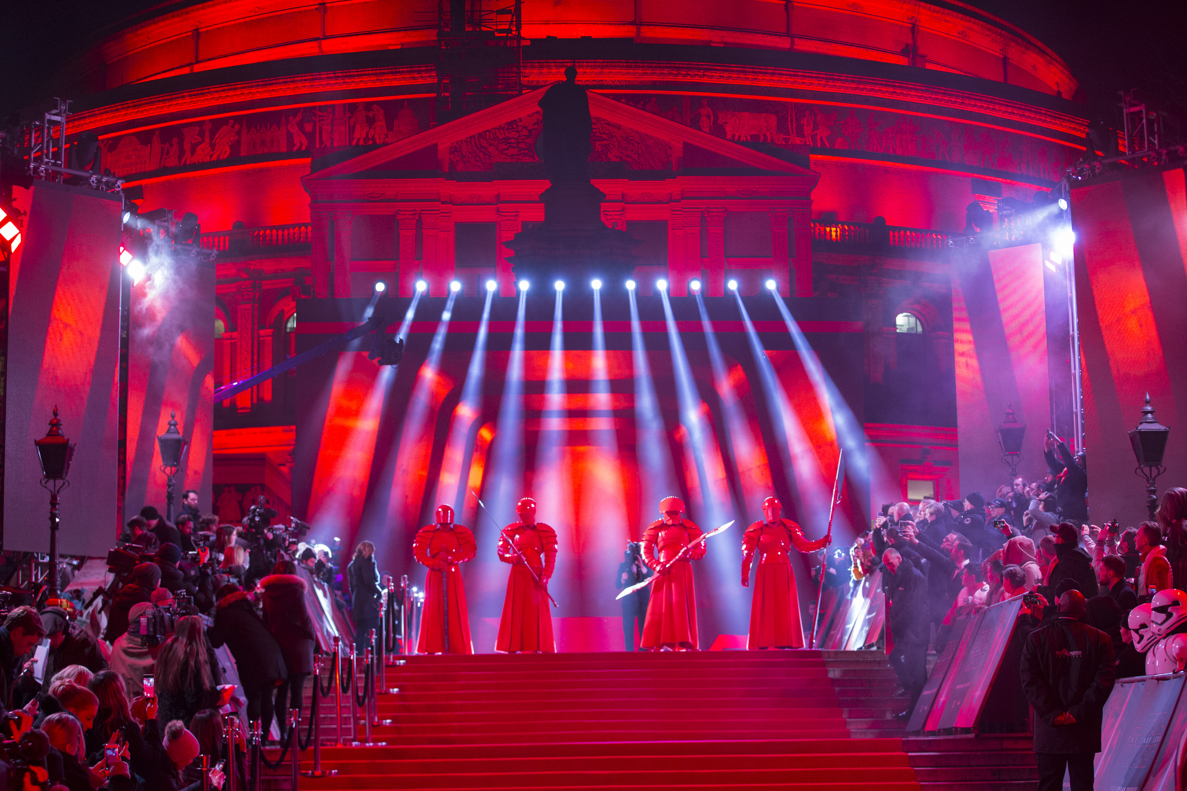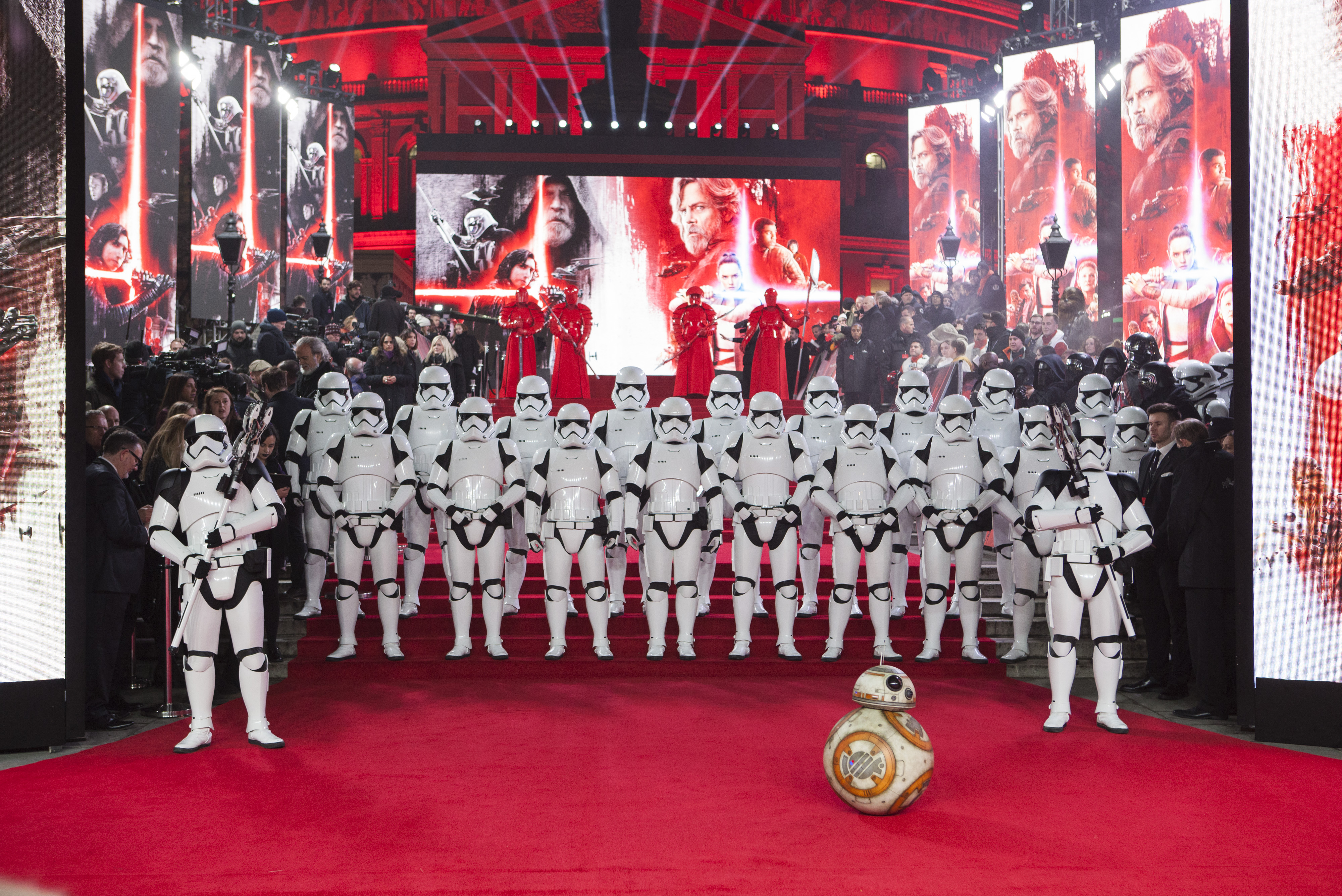 The cast and filmmakers of Star Wars: The Last Jedi attend the European Premiere in the presence of HRH Duke of Cambridge and HRH Prince Harry at the Royal Albert Hall in London, UK on Tuesday 12th December 2017.