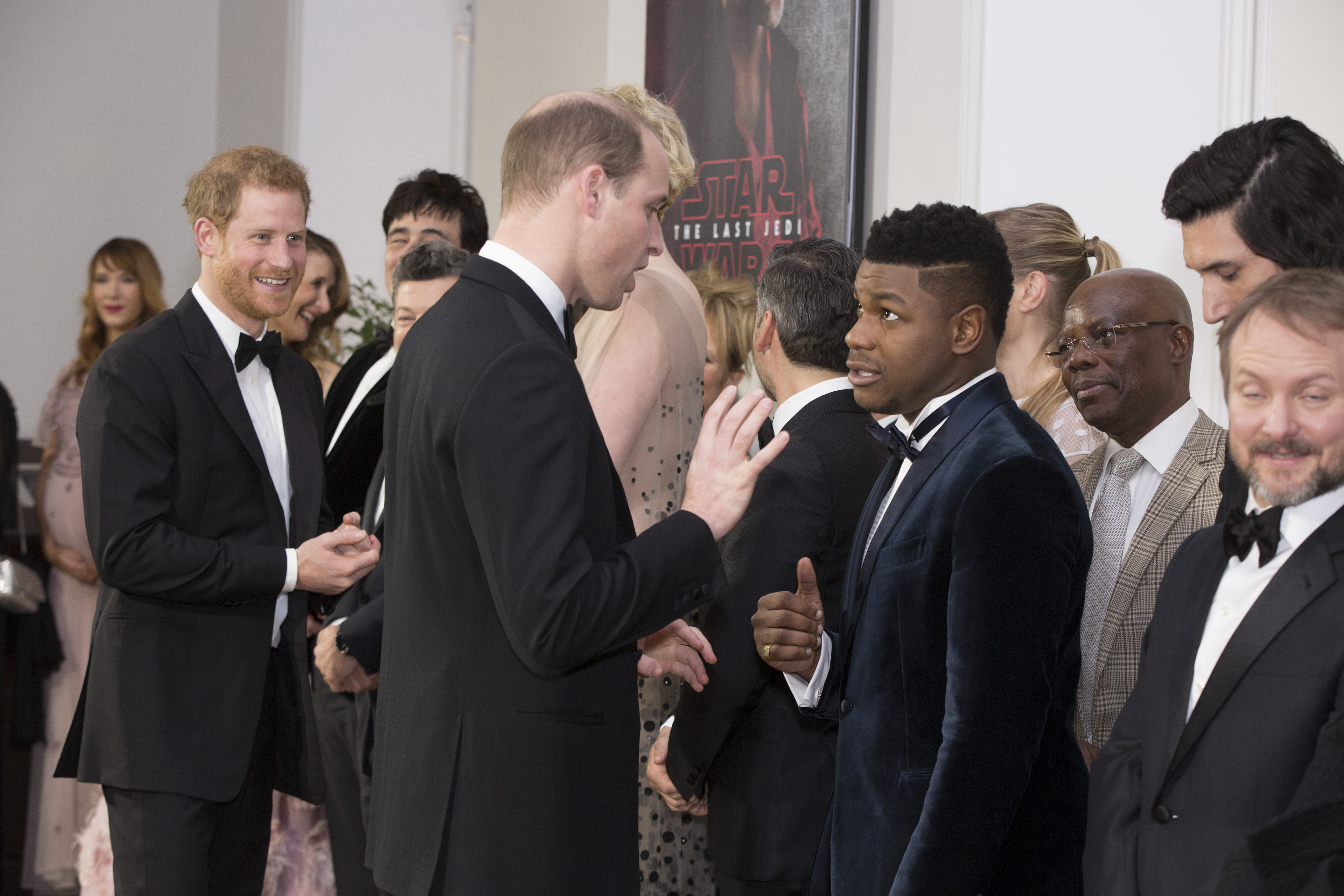 LONDON, UK DECEMBER 12: HRH Duke of Cambridge and HRH Prince Harry meet the cast, filmmakers and The Walt Disney Company executives at the European Premiere of Star Wars: The Last Jedi at the Royal Albert Hall in London, UK on Tuesday 12th December 2017.