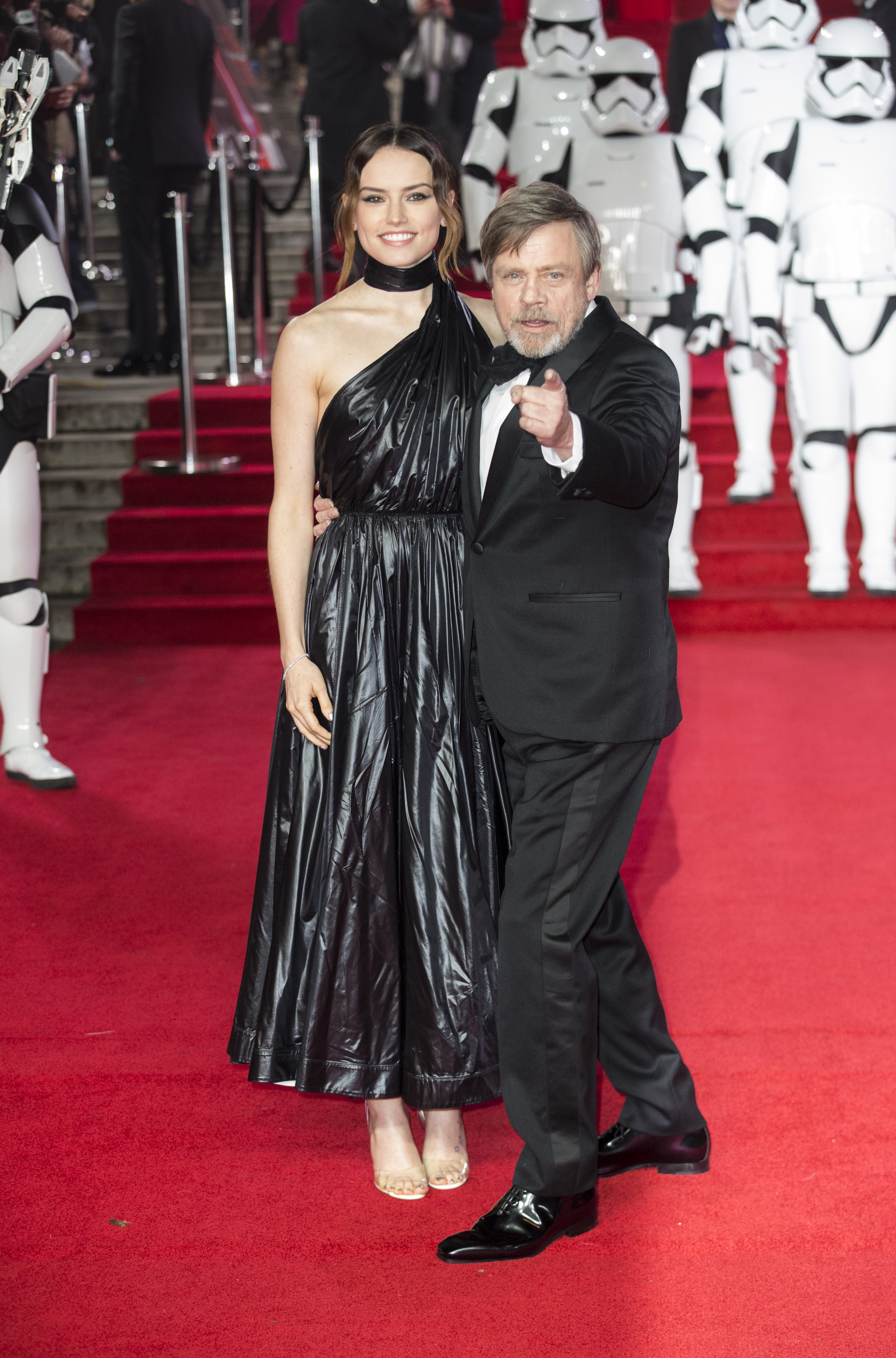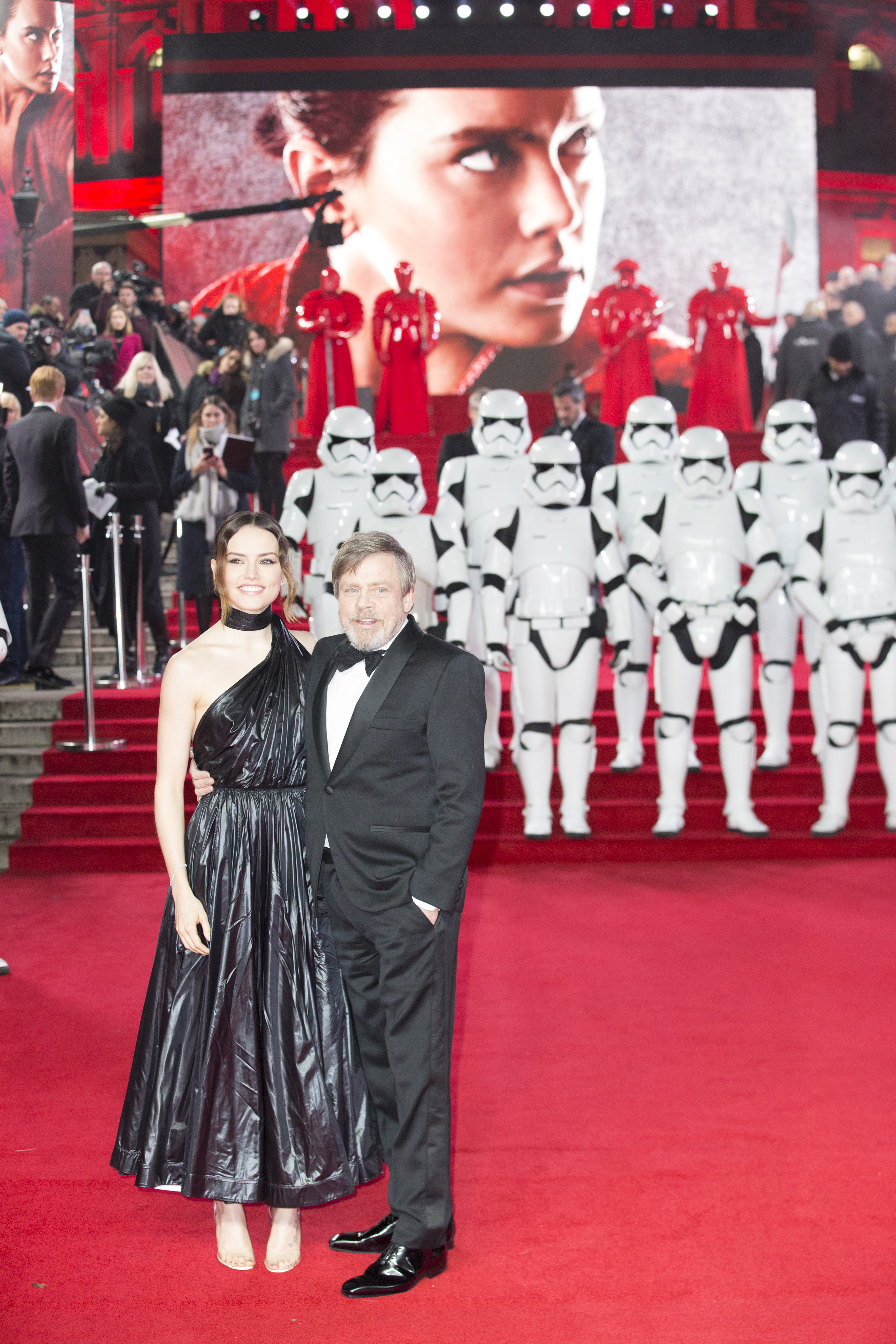 LONDON, UK DECEMBER 12: Daisy Ridley and Mark Hamill attend the European Premiere of Star Wars: The Last Jedi in the presence of HRH Duke of Cambridge and HRH Prince Harry at the Royal Albert Hall in London, UK on Tuesday 12th December 2017. *** Local Caption *** Daisy Ridley; Mark Hamill
