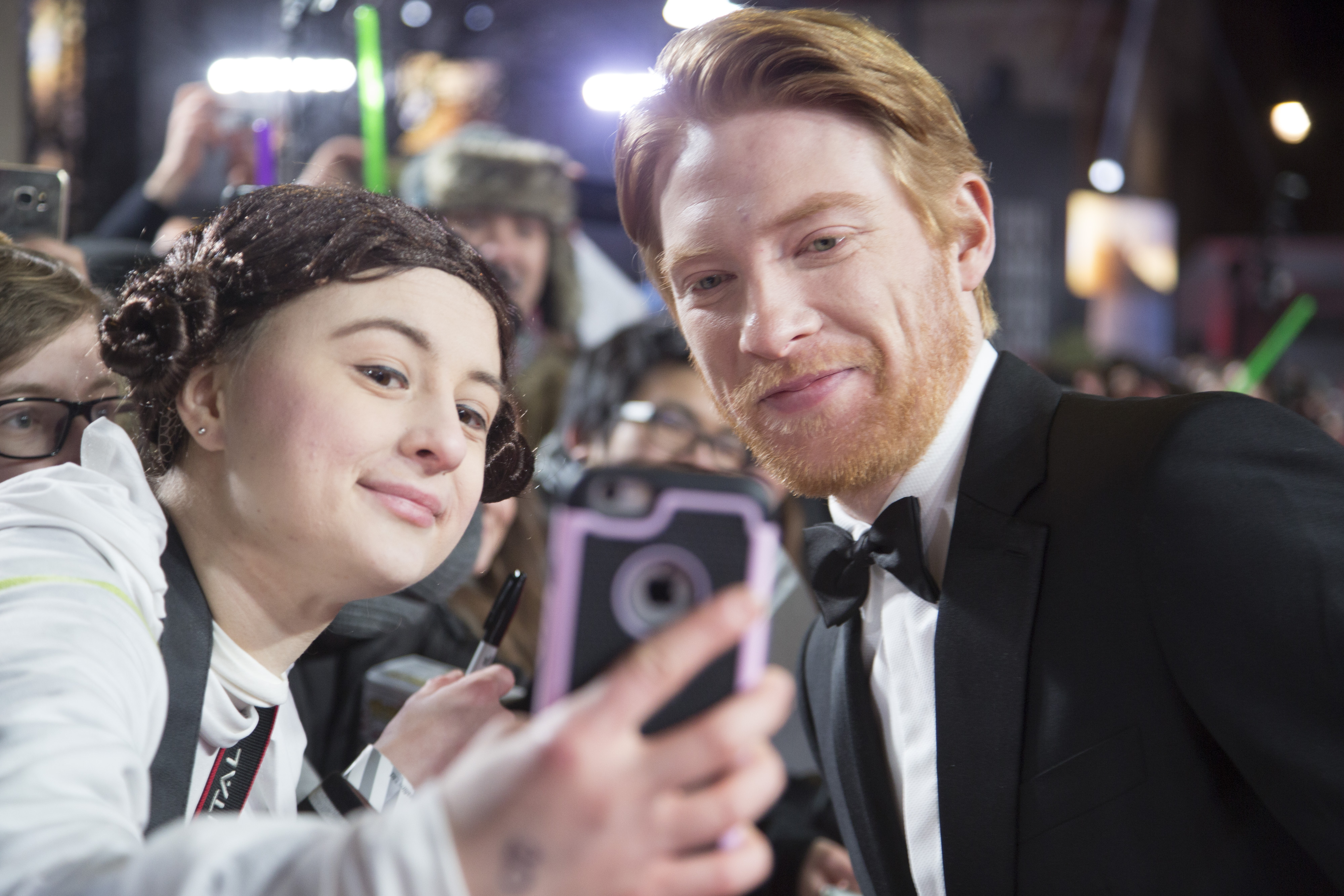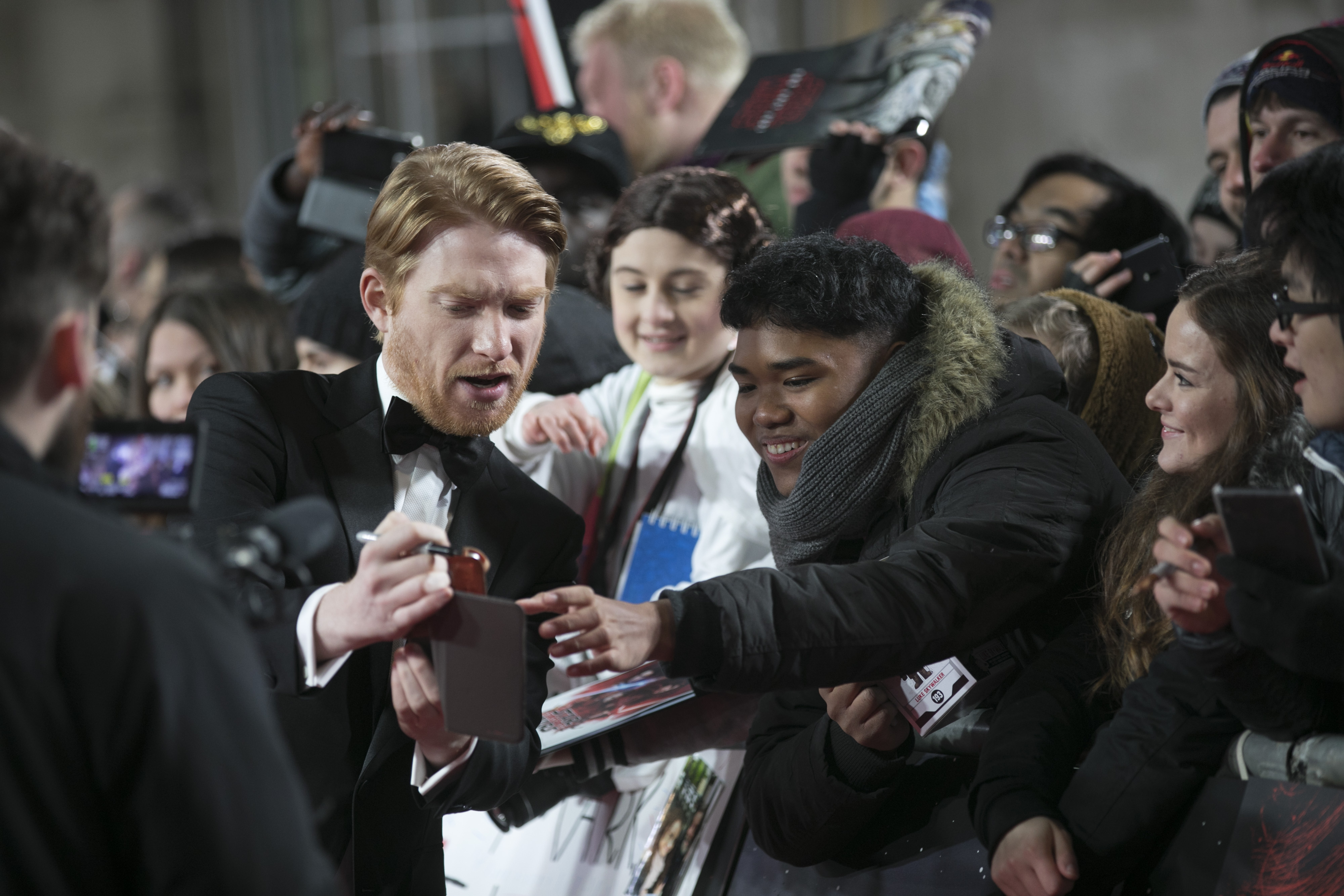 LONDON, UK DECEMBER 12: Domhnall Gleeson attends the European Premiere of Star Wars: The Last Jedi in the presence of HRH Duke of Cambridge and HRH Prince Harry at the Royal Albert Hall in London, UK on Tuesday 12th December 2017. *** Local Caption *** Domhnall Gleeson