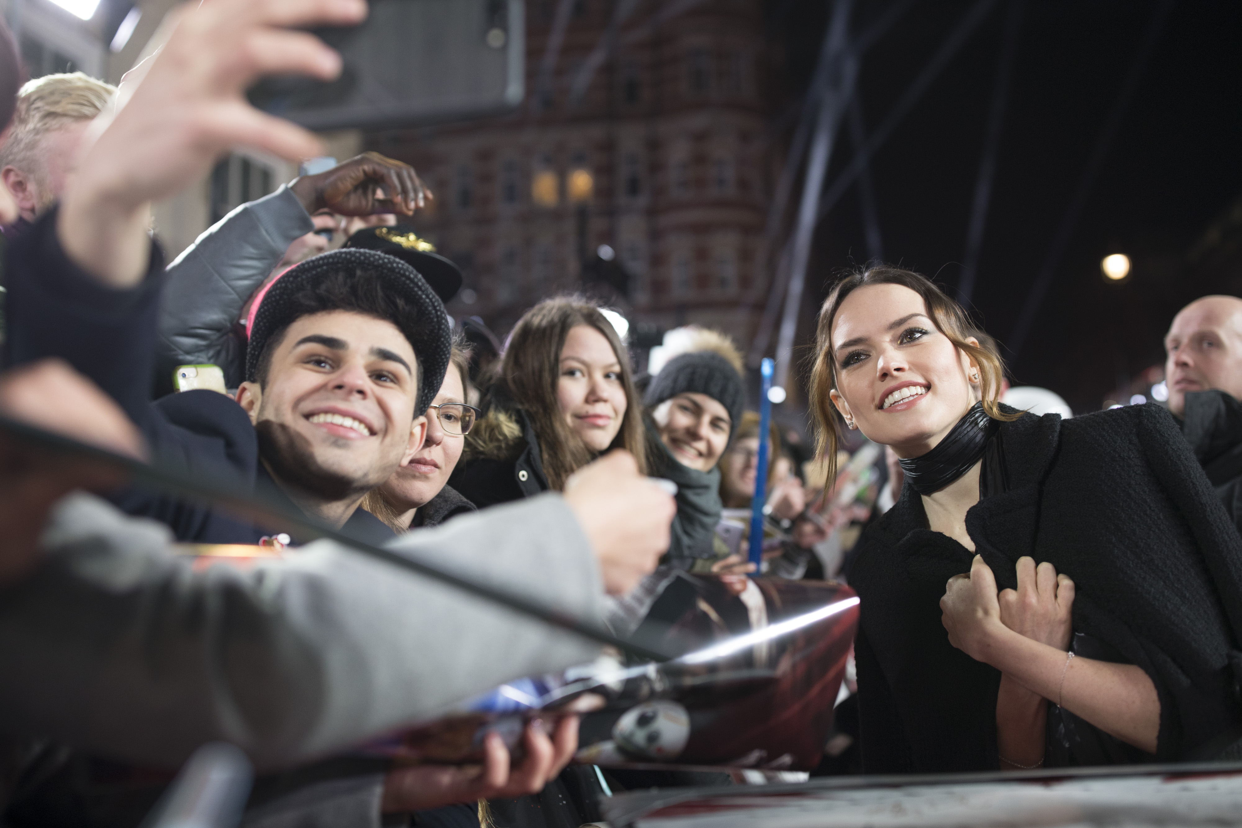 LONDON, UK DECEMBER 12: Daisy Ridley attends the European Premiere of Star Wars: The Last Jedi in the presence of HRH Duke of Cambridge and HRH Prince Harry at the Royal Albert Hall in London, UK on Tuesday 12th December 2017. *** Local Caption *** Daisy Ridley