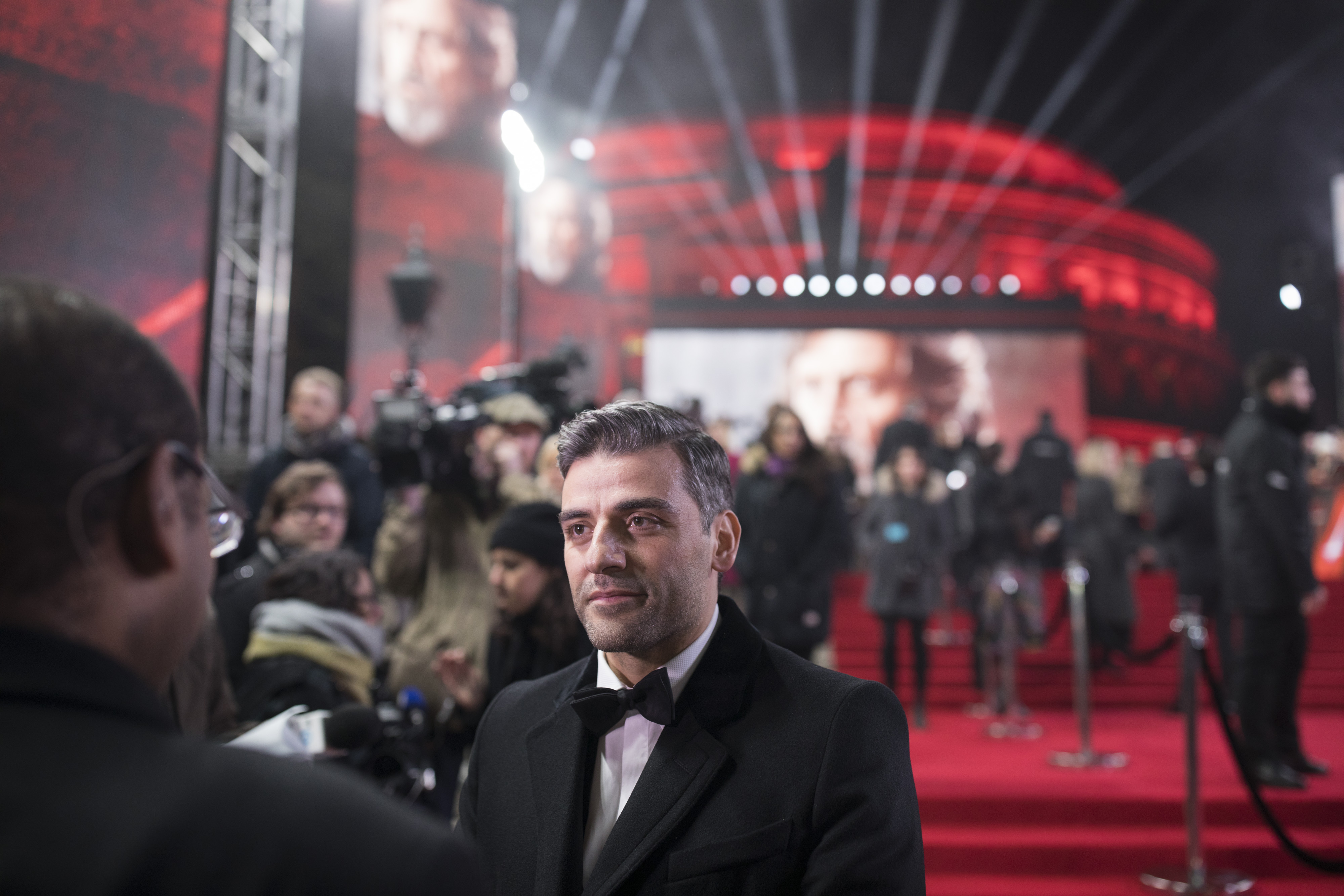 LONDON, UK DECEMBER 12: Oscar Isaac attends the European Premiere of Star Wars: The Last Jedi in the presence of HRH Duke of Cambridge and HRH Prince Harry at the Royal Albert Hall in London, UK on Tuesday 12th December 2017. *** Local Caption *** Oscar Isaac