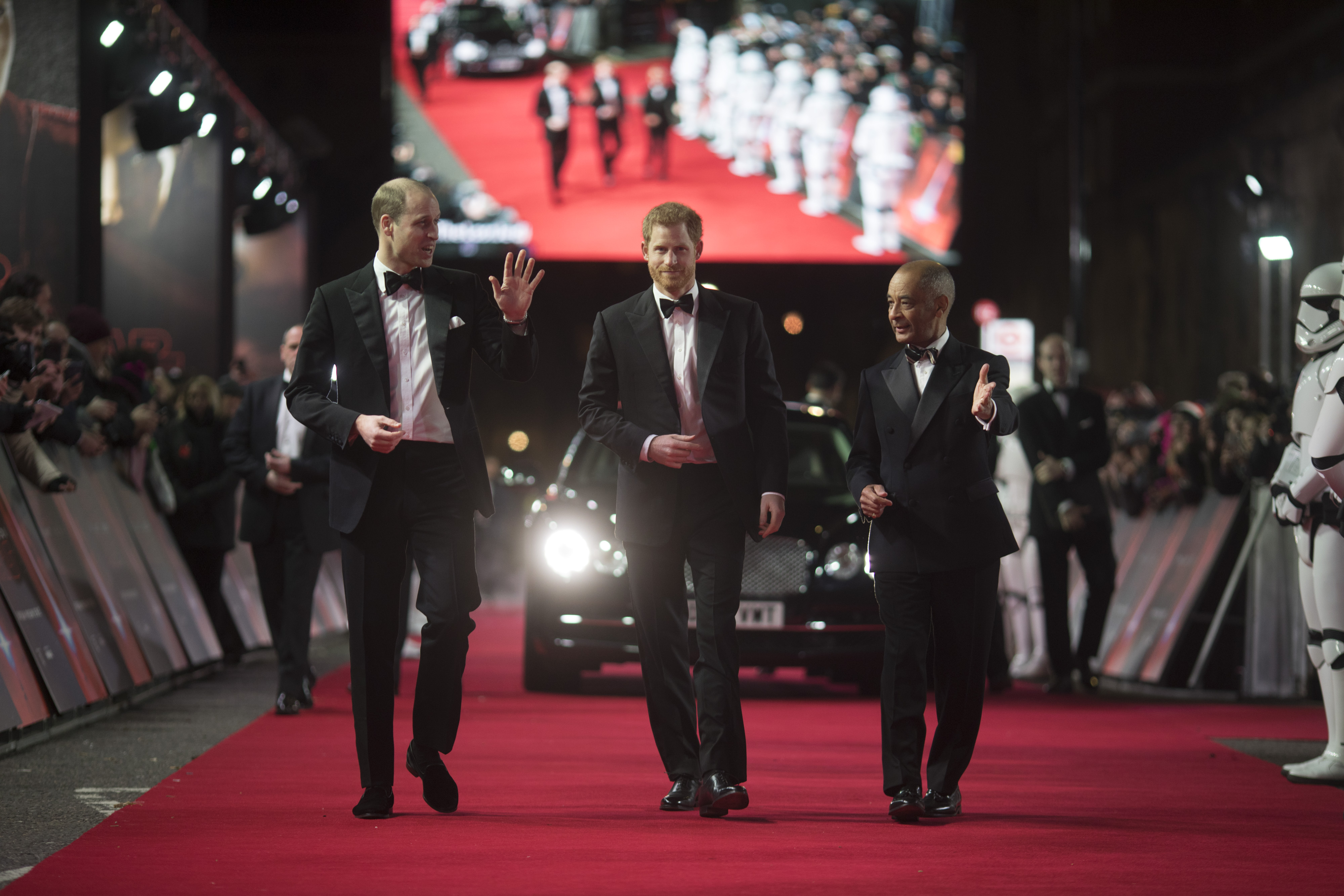 LONDON, UK DECEMBER 12: HRH Duke of Cambridge and HRH Prince Harry attend the European Premiere of Star Wars: The Last Jedi at the Royal Albert Hall in London, UK on Tuesday 12th December 2017.