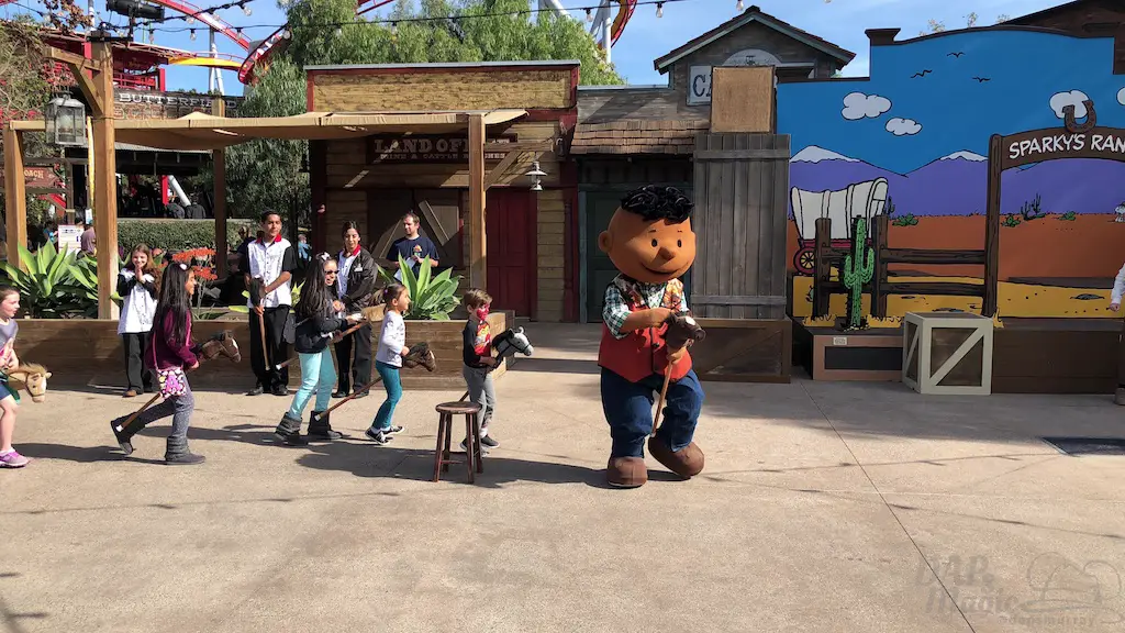 In Calico Plaza are periodic cowboy contests like a horse race and pie toss. It’s for kids to participate with a couple of Peanuts characters in a fun environment.