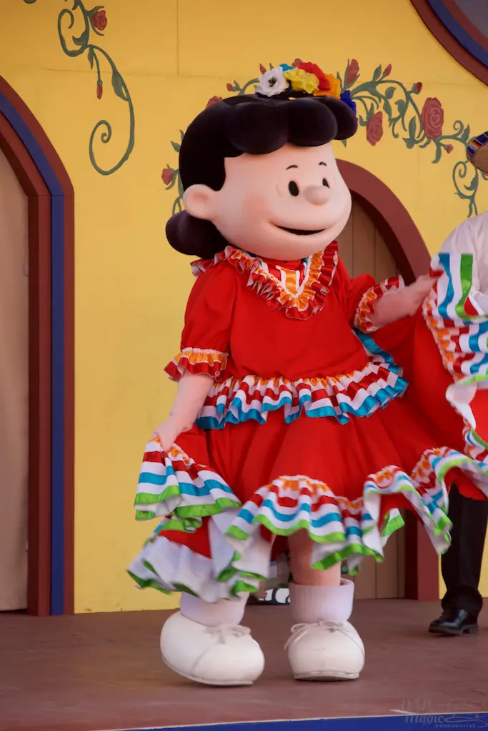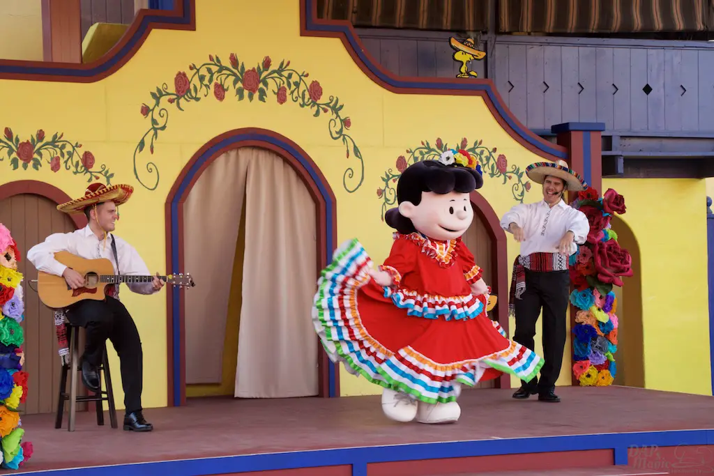 Lucy and Sally’s Fiesta Fantasy displays some traditional Mexican dances on the Fiesta Stage. It also encourages kids to participate and learn some dances too.