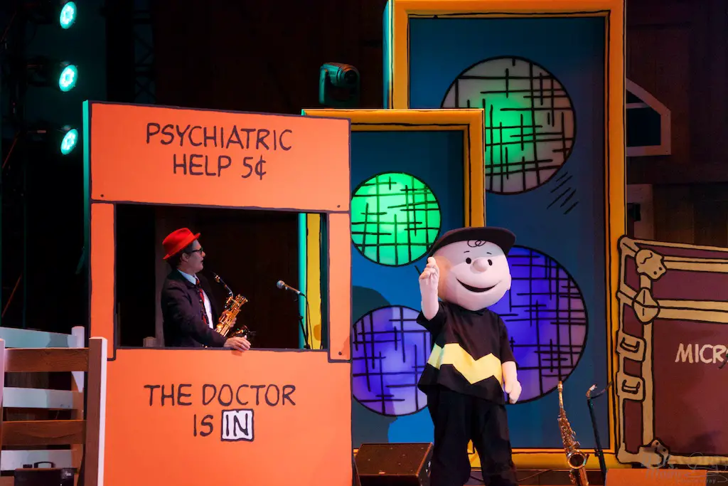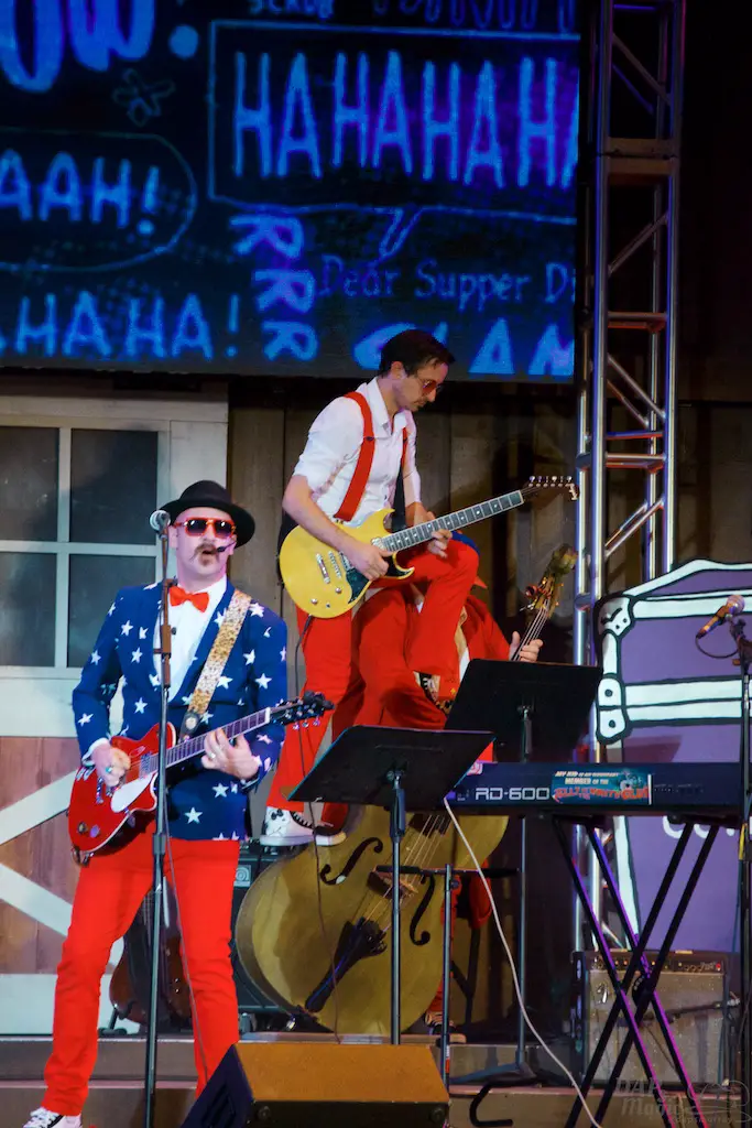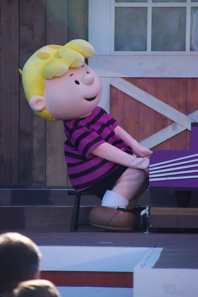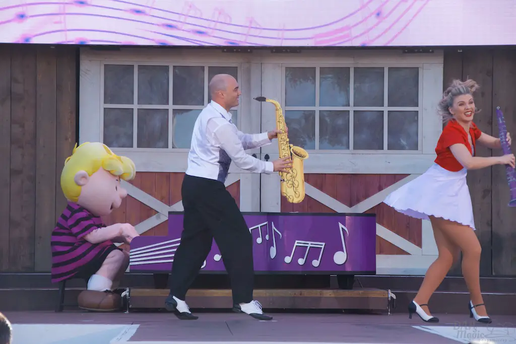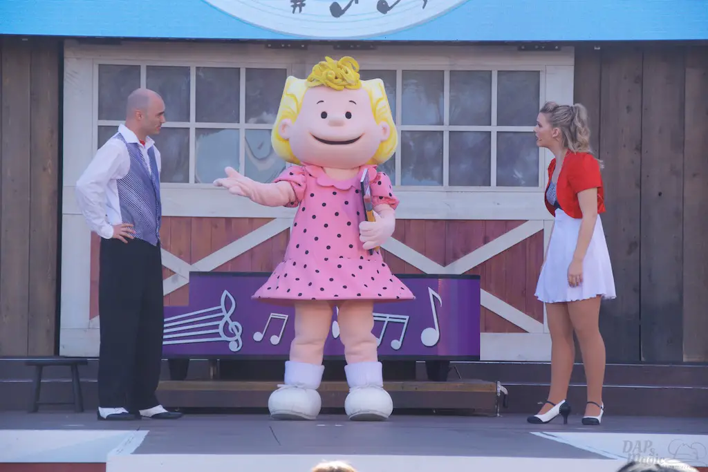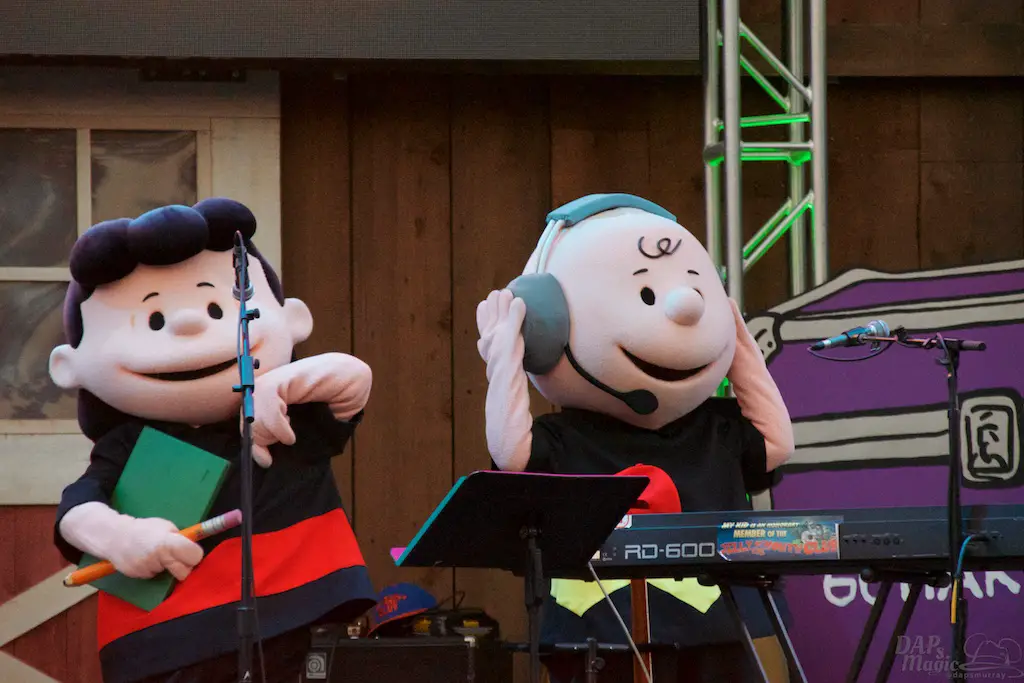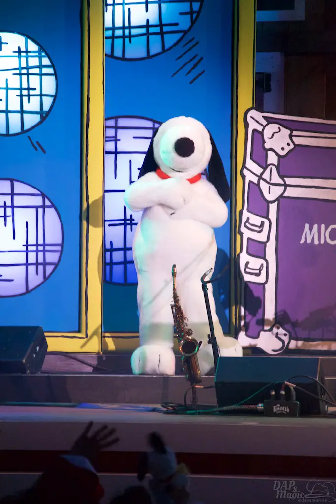 At night, Woodstock’s Music Festival has The Jelly of the Month Club perform a live concert with some kid-friendly songs. Charlie Brown, Lucy, Linus, and Snoopy are all road crew for the band and periodically come on stage for some songs. My favorite was the song about Dolphins that had some great jokes between a puppet dolphin and Snoopy. It’s definitely a show not to be missed and something to stick around for.
