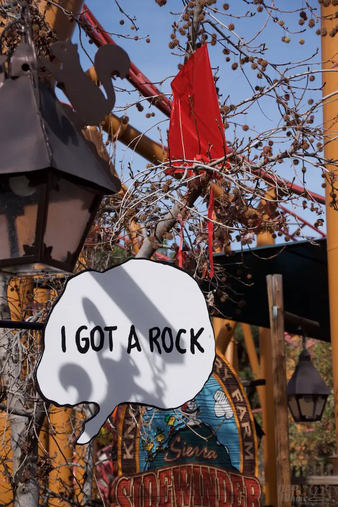 Camp Snoopy always has a great Peanuts theme to it, but throughout the park there are decorations that pay homage to Charlie Brown and the gang. Right as you enter through the gates there are a few special backdrops for photos. They look like they leaped off the comic strip page! Then there are some subtle things like many kites stuck in the trees, which pay tribute to Charlie Brown’s endless attempts at flying them. Bunting, banners, and special signs are scattered throughout each area of the park, from Ghost Town to Boardwalk.