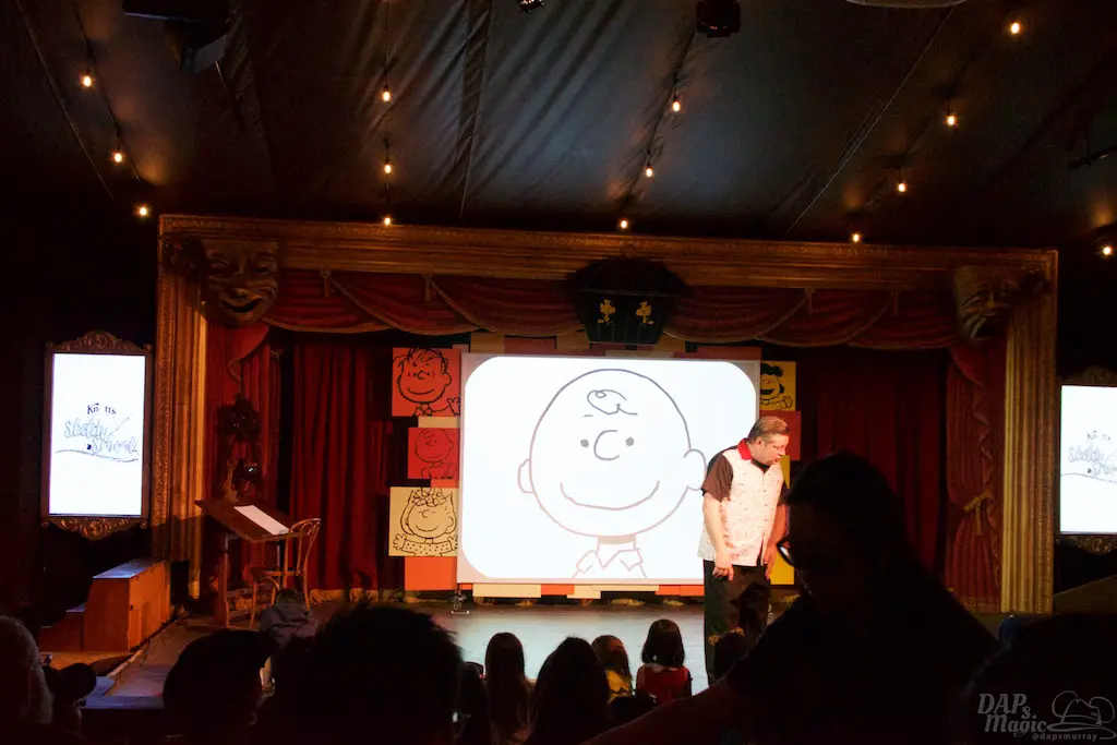 At the Bird Cage Theater, there is a Sketch School with a real artist. He goes through how to draw some of the Peanuts characters, like Charlie Brown and Linus. After is a showing of a classic Peanuts cartoon. It’s a wonderful presentation that lets kids get up front to learn drawing. And, I appreciate the showing of a classic Snoopy toon.