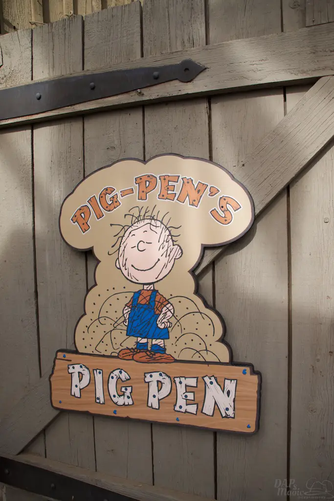 Ghost Town has a special stable themed to Pig Pen. It’s also his debut in the park itself! He’s there from time to time for photos next to a great backdrop. Across from that is a pen full of piglets. It was definitely the hit of the stable and even the day!