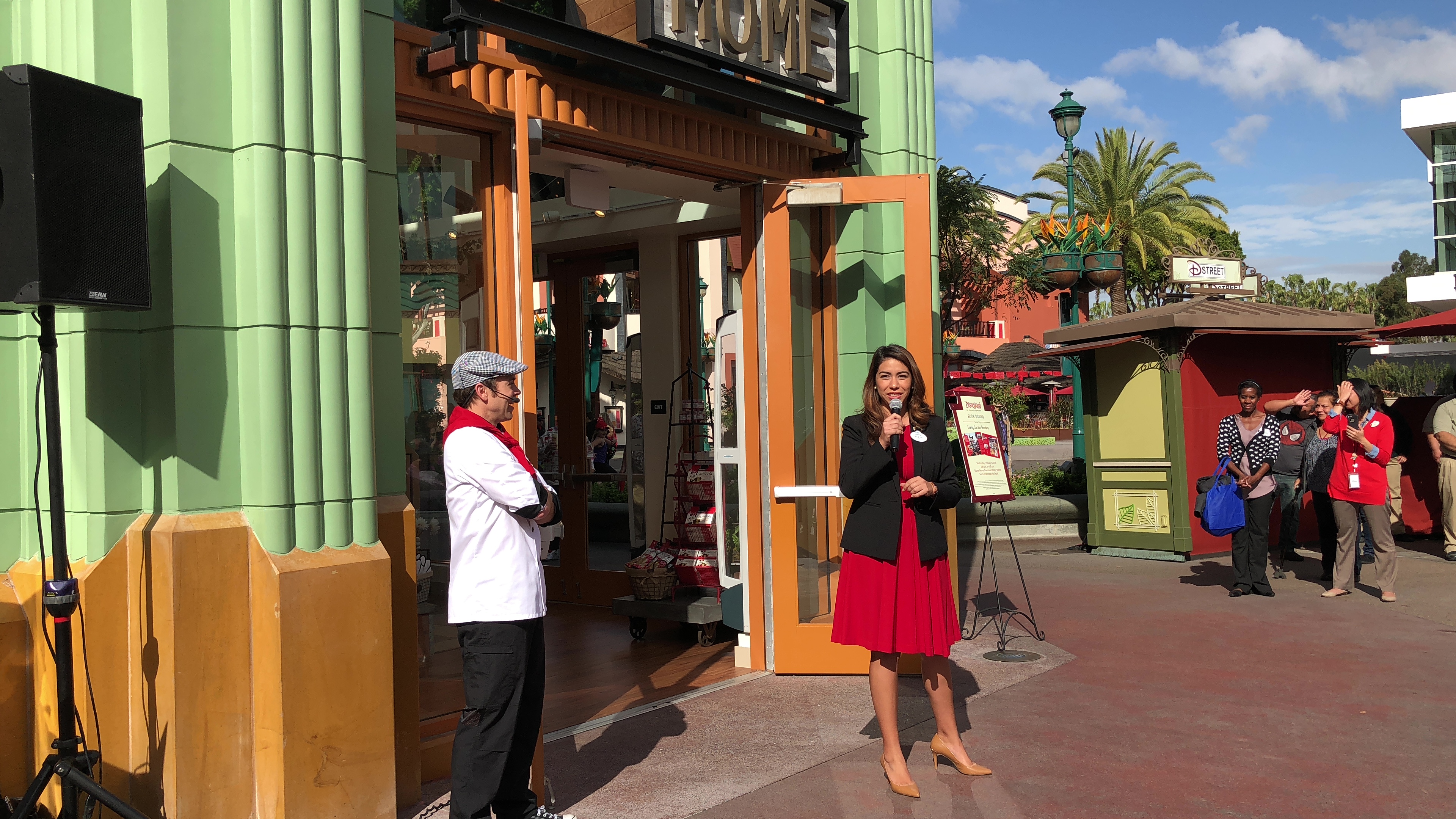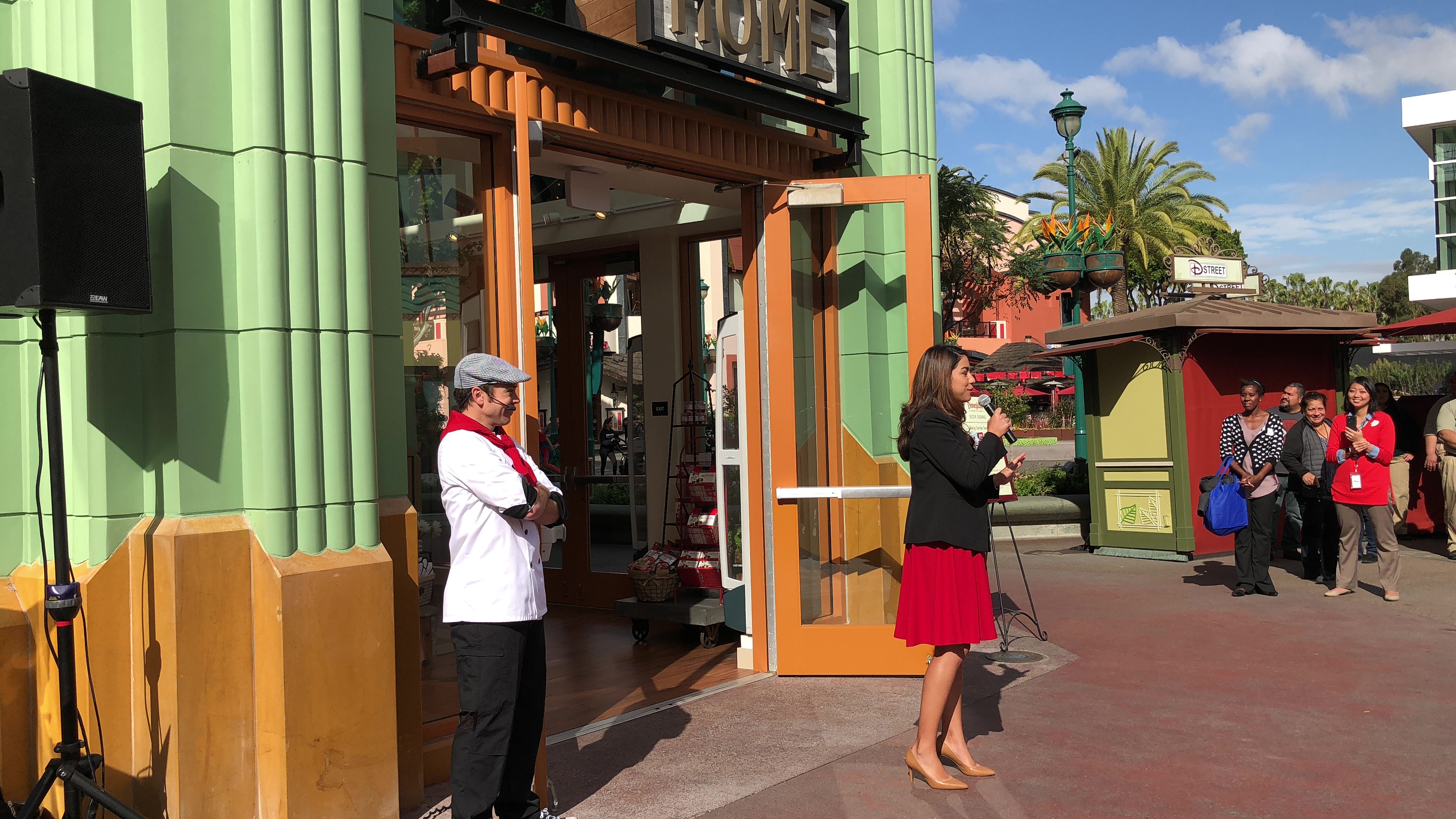 Downtown Disney had a grand opening ceremony for the Disney Home store today. A ribbon cutting ceremony opened the store with the Downtown Disney General Manager. Before he came out to cut the ribbon, Disneyland Amabassador Alexa Garcia was also present to help with the ceremony.