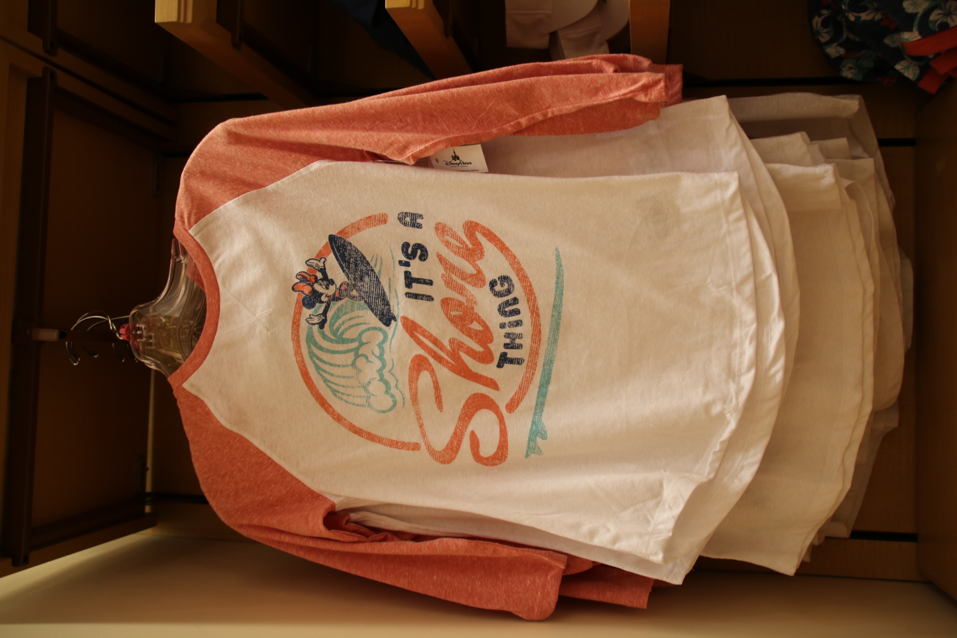 I feel like I say this often, but Disney is really branching out on their merchandise designs. I wanted to highlight a few new items that center around a Hawaiian theme. Some items center around surf, while others feature hibiscus flower designs. It may be a small number of items, but a fun, colorful collection nonetheless. It’s a great line if you’re looking for some Disney Aloha, or, for an upcoming trip to Aulani.