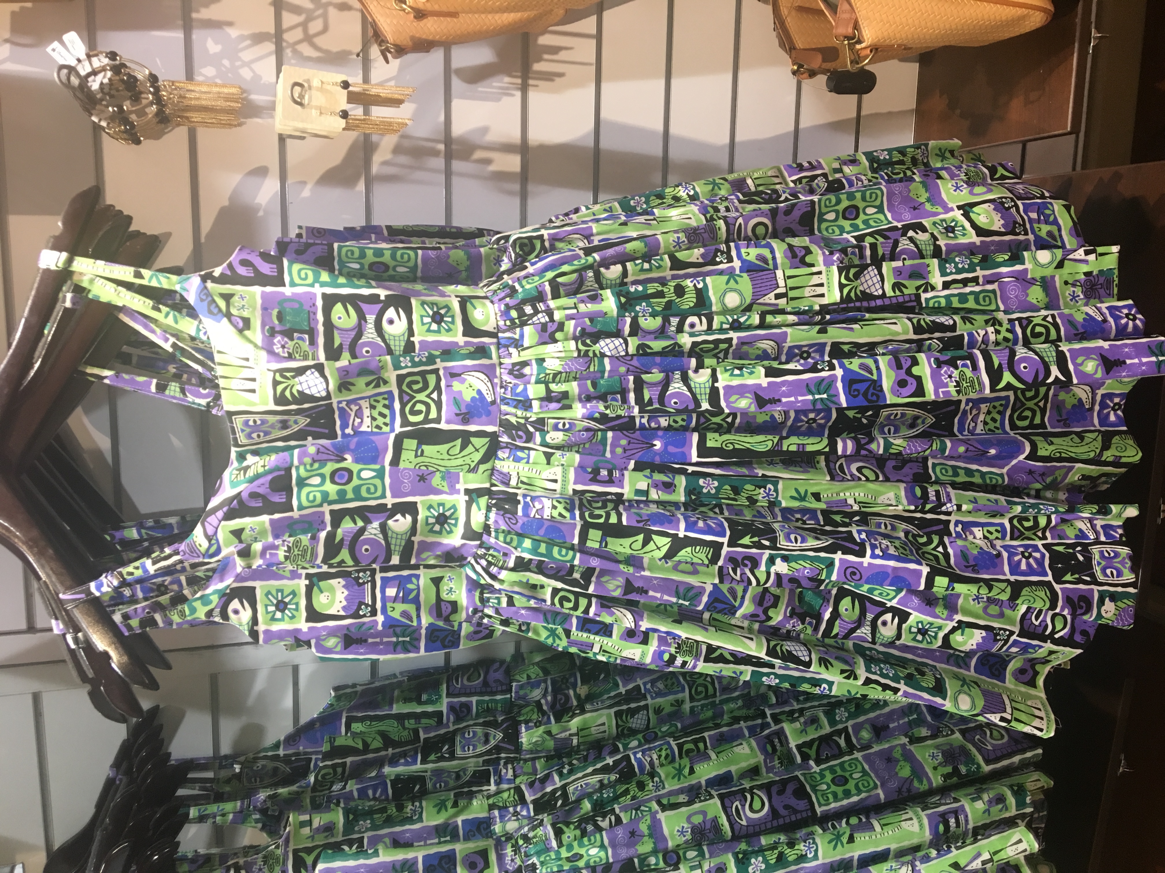 A Tiki Room inspired dress by a different brand has also been found in the store as well. It is a little more expensive than The Dress Shop dresses, and has a different color scheme (I thought it was Haunted Mansion based off the colors), but cute nonetheless. Some Mary Blair pieces from the Pin Up Girl Clothing line have also been spotted in the shop.